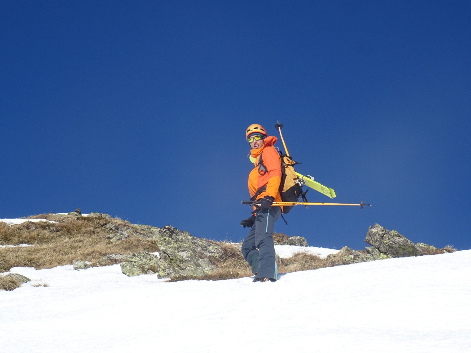 Altitude de chaussage/déchaussage : vers 1500m, avec ensuite des zones malaisées à skis (franchissements, neige béton-lustrée,...) jusque vers 1600m