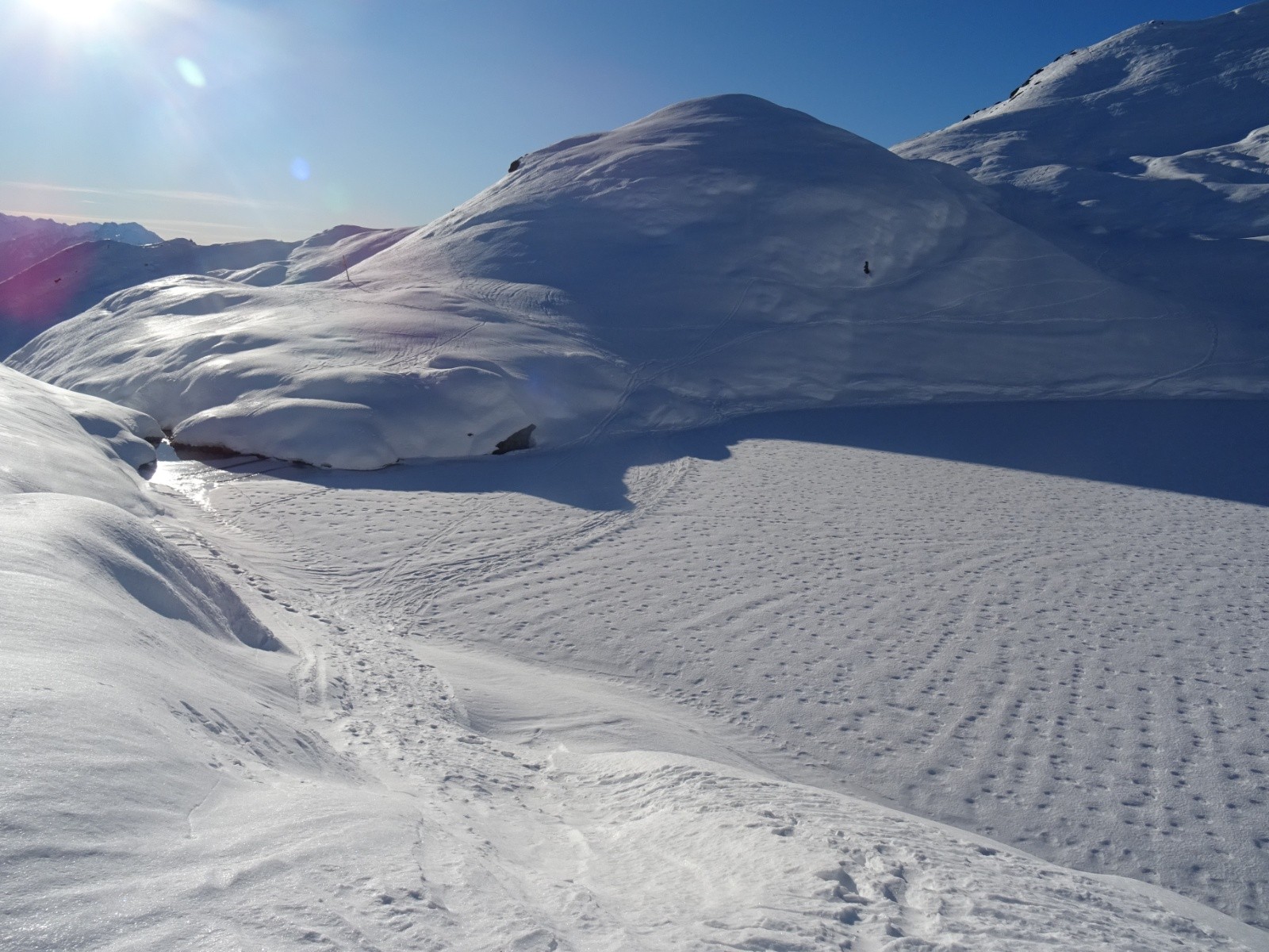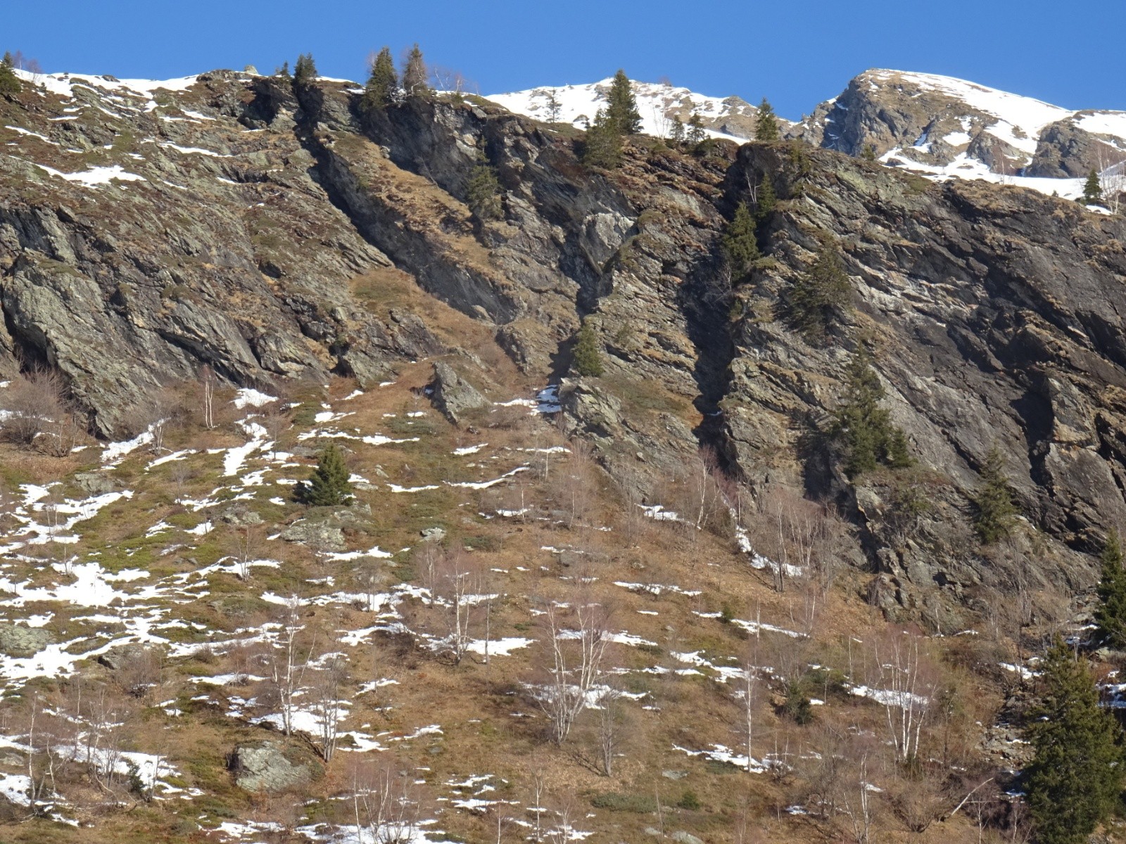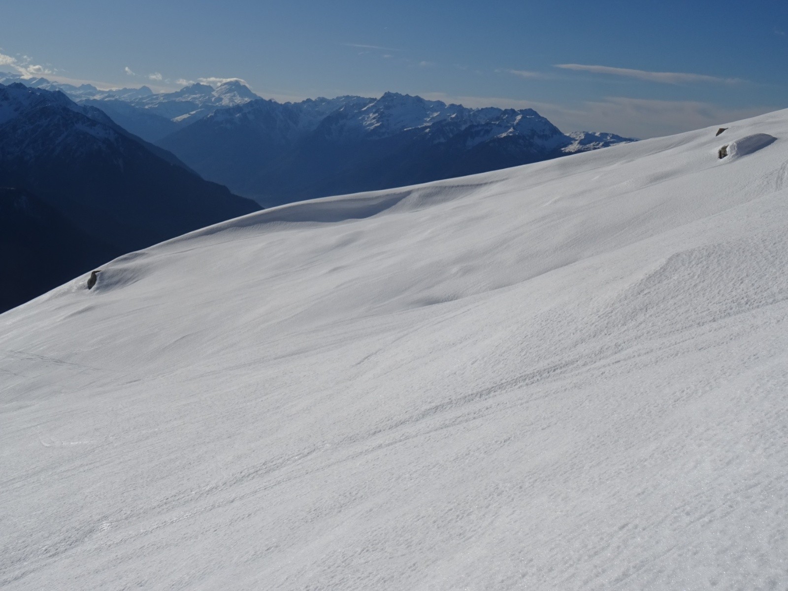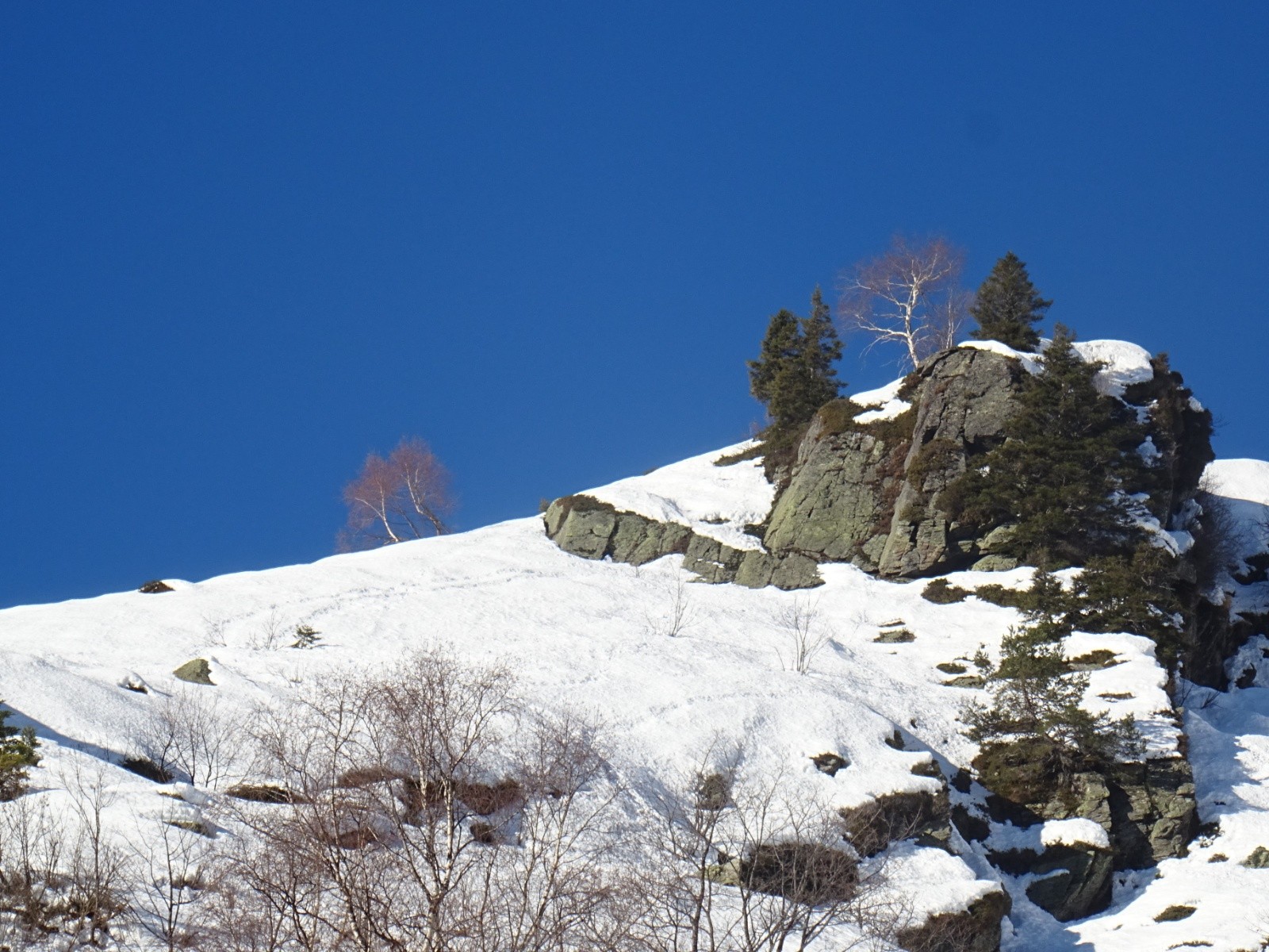 Conditions nivo et activité avalancheuse : RAS ce jour, ça semble vraiment bien stabilisé/durci, anciennes coulées ici ou là en pentes chaudes