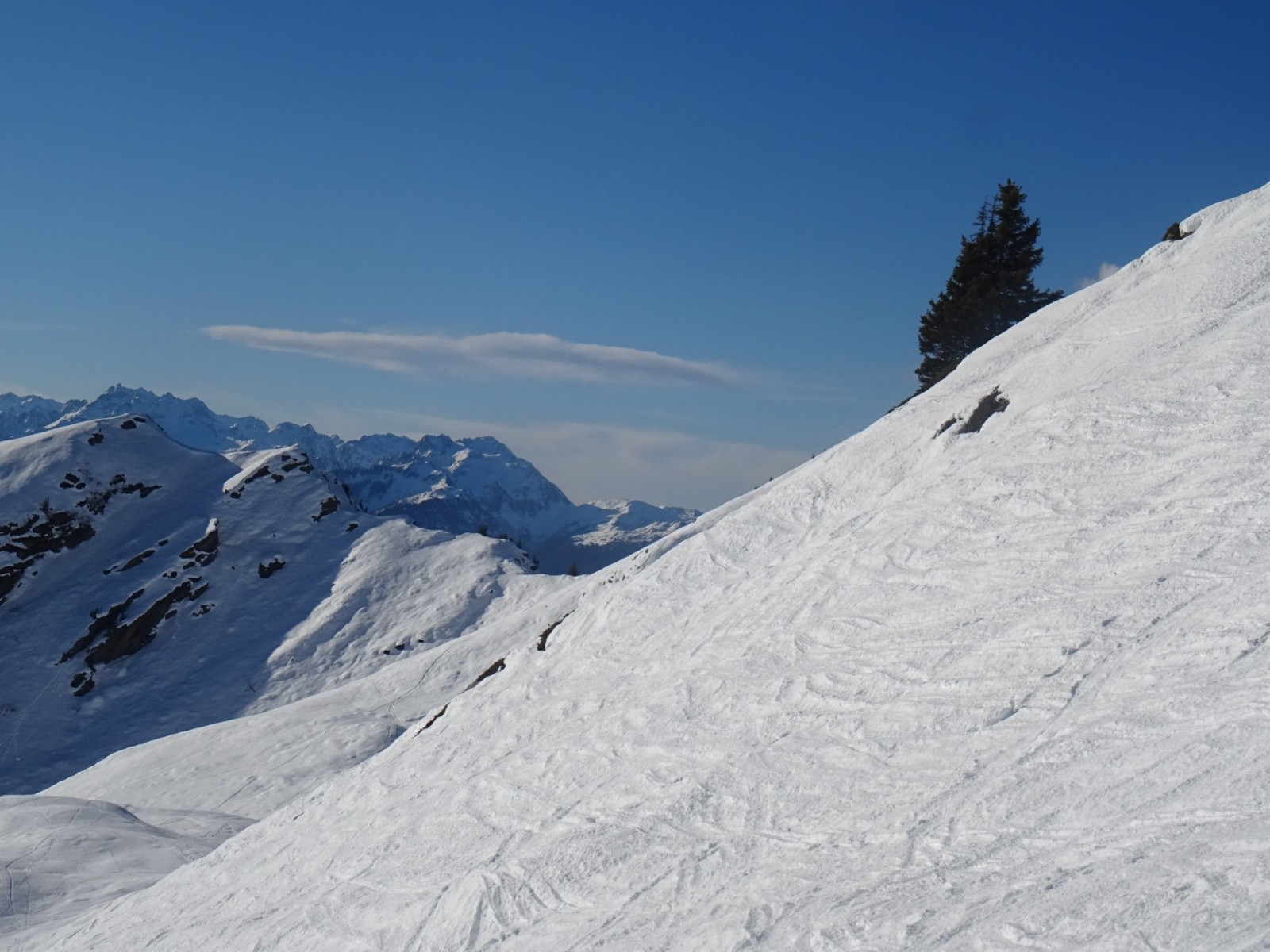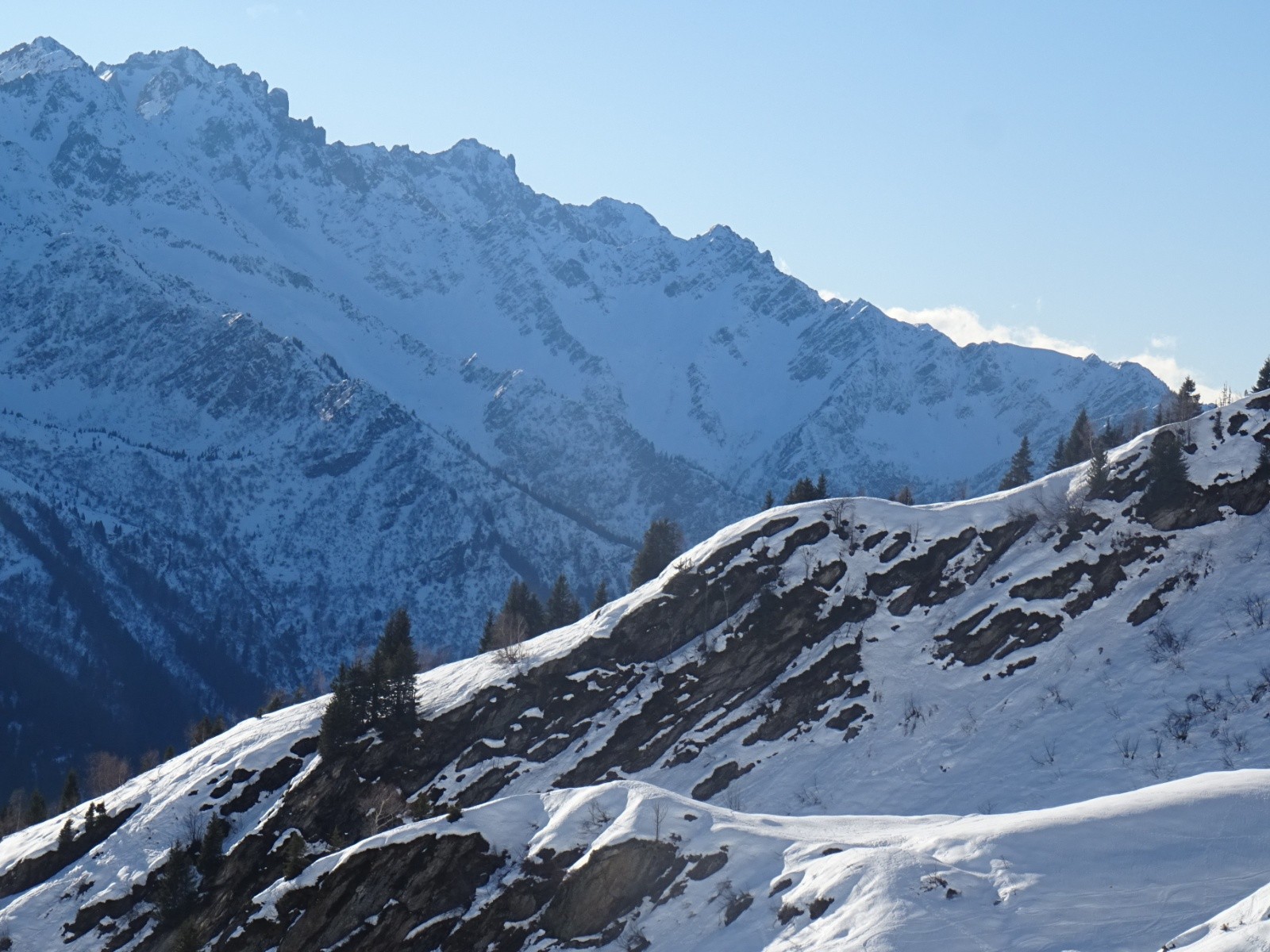 * neige transformée agréable sous le Grand Arc entre 2200m environ et 1900m environ (en choisissant les micro-orientations, les pentes soutenues,...)