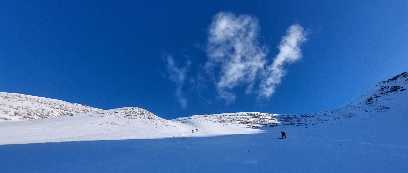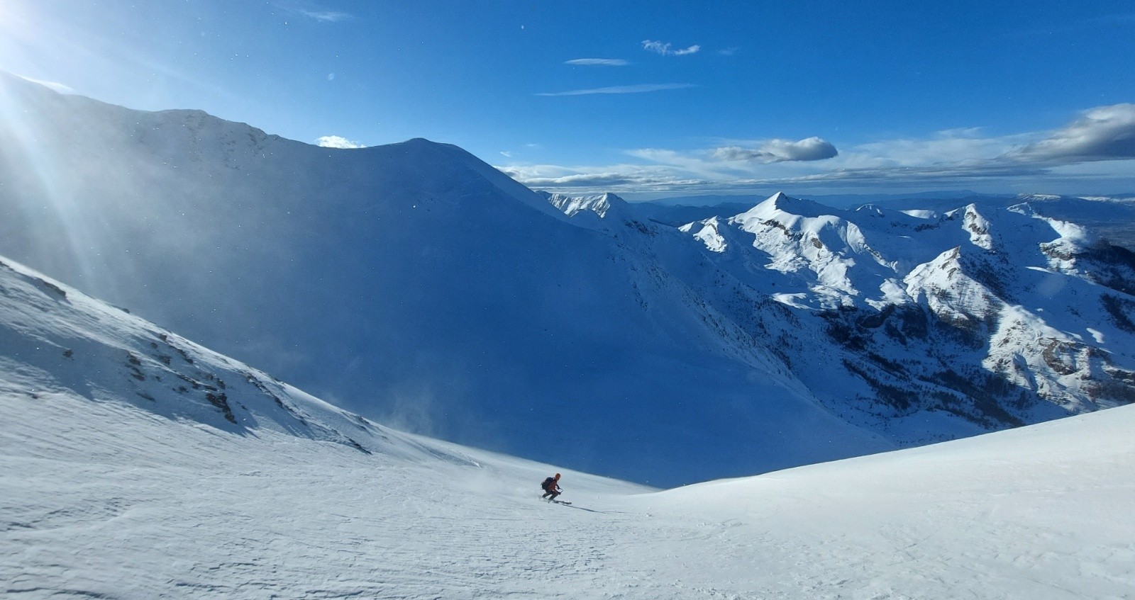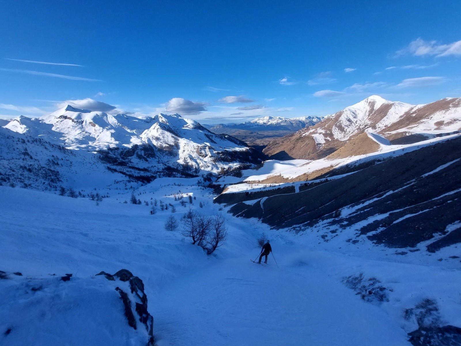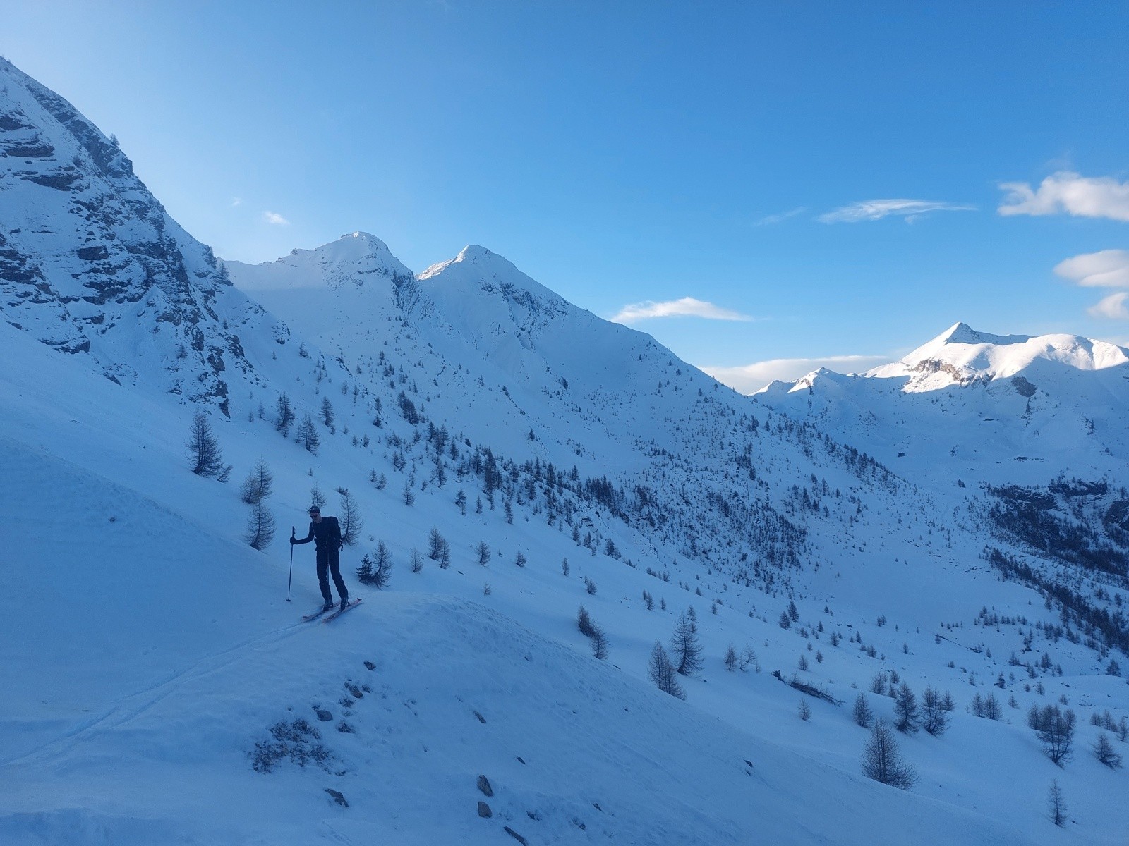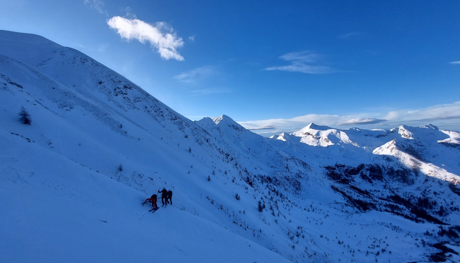 Itinéraire suivi :Rouanne haute, torrent du Lautaret, rive gauche puis droite du torrent de la grande Lauze, crêtes de la coupa O arret au point 2524m (trop de vent) retour par le couloir formé par le torrent de la grande Lauze puis rive gauche.