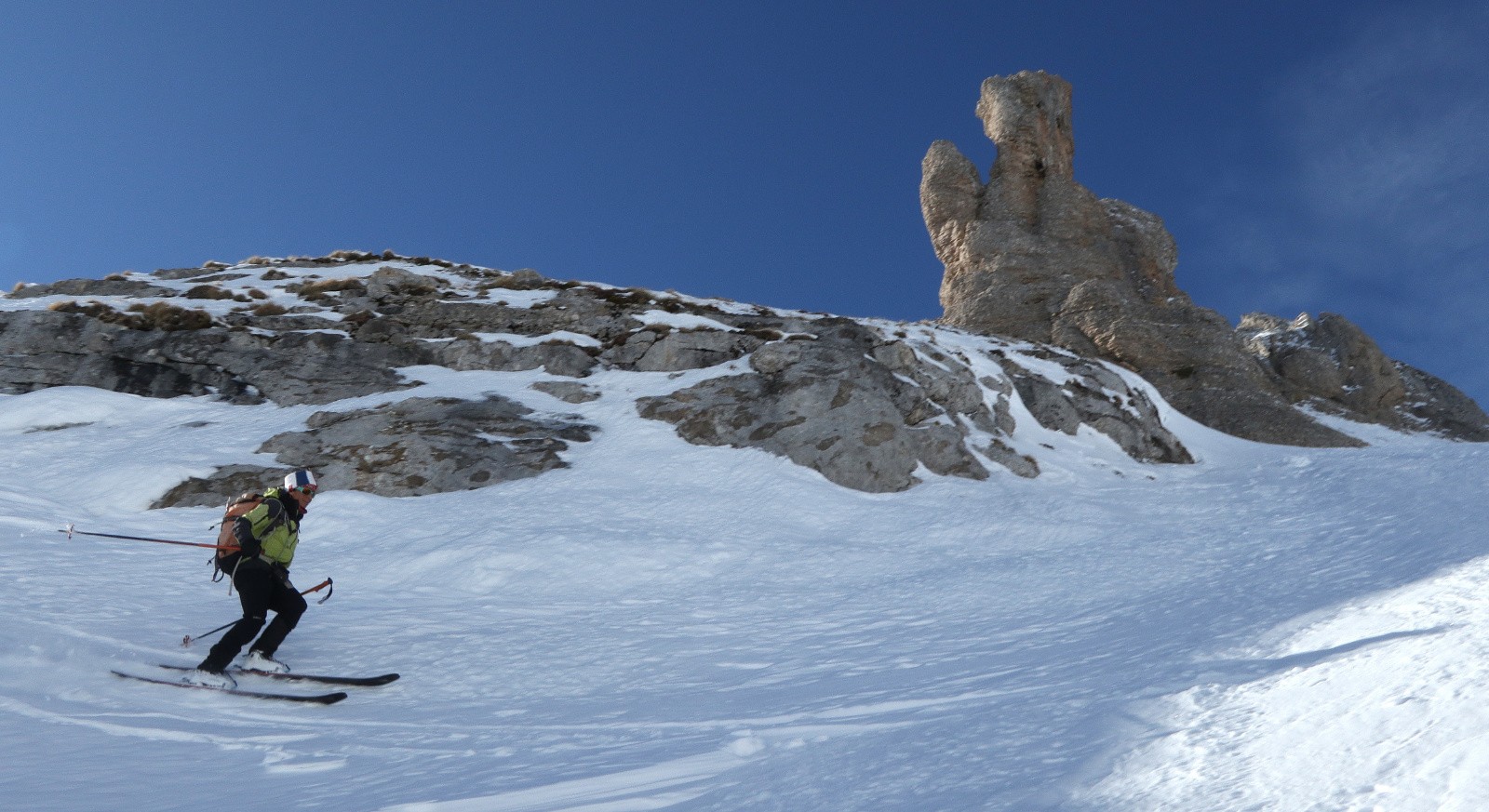 Quelques cm de poudre dans les zones peu ou pas impactées par le vent.