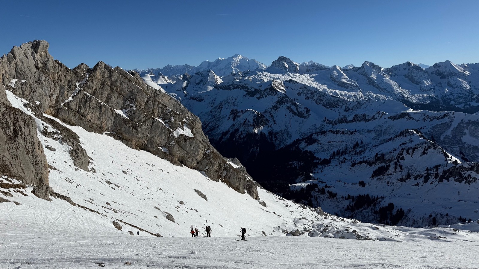 Je n’ai jamais vu le raidillon vers 1800 aussi peu enneigé. Disons que ce n’est pas si mal en sud. Les autres orientations ont l’air moins sympathiques.