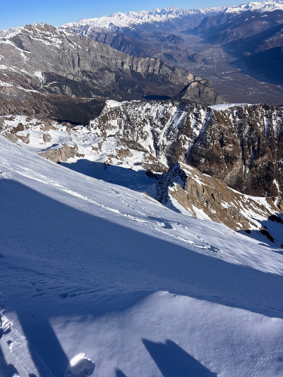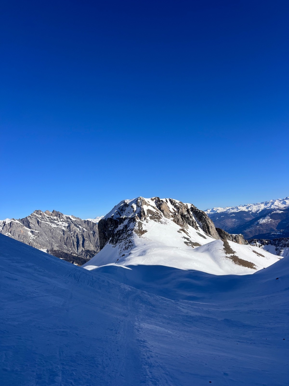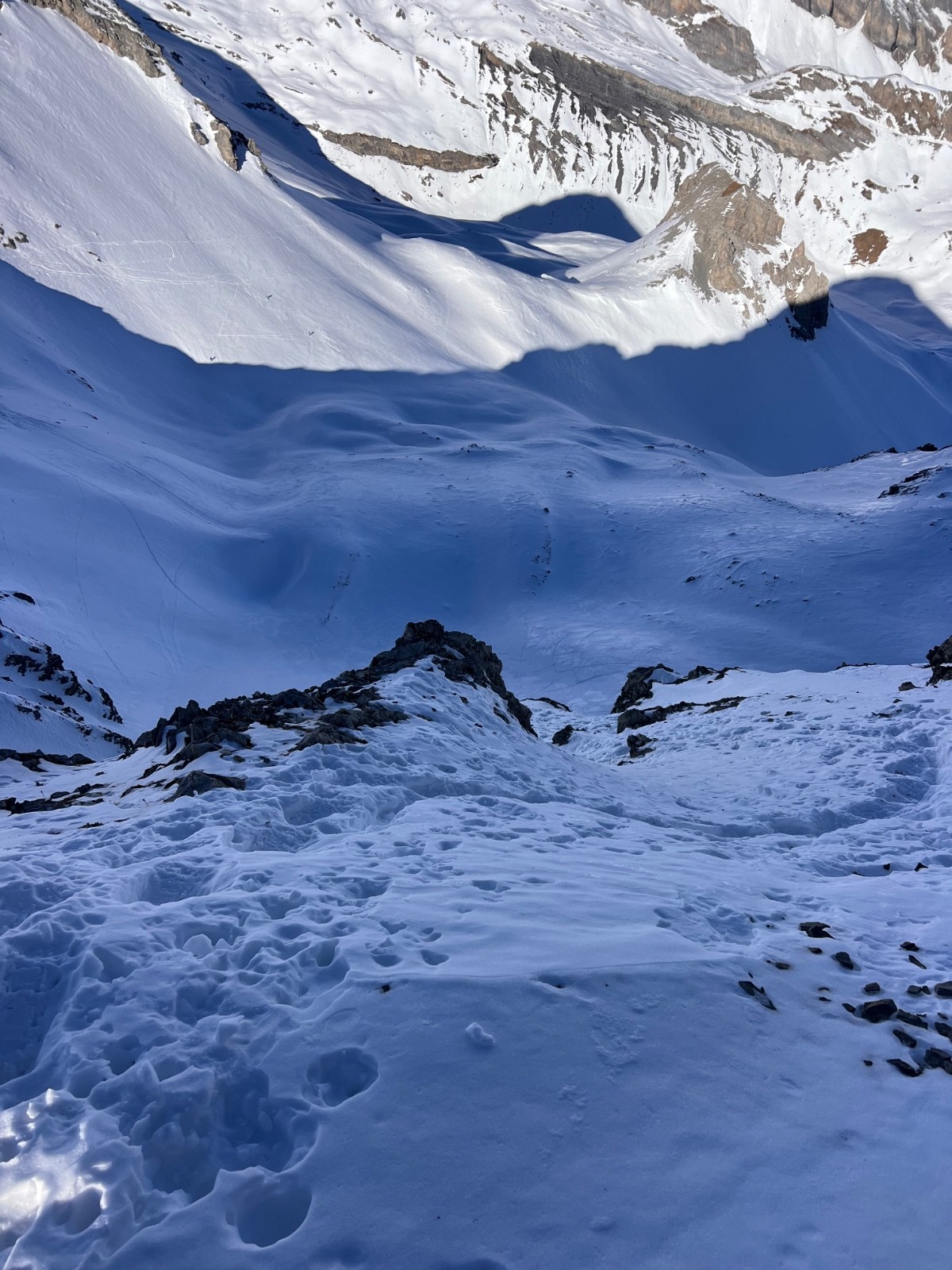 Itinéraire suivi : comme le topo pour la montée. Descente par le début de la face est du grand Chavalard puis par le grand château. La neige dans la face est très dure mais skiable