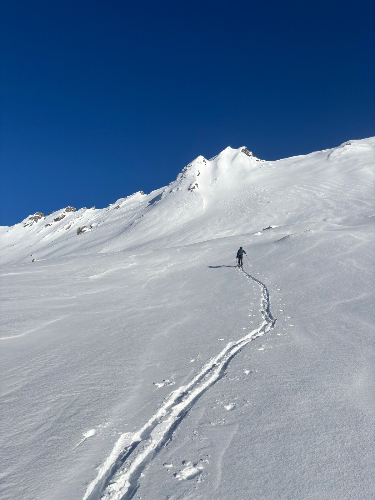 Enfin un début de saison qui vaut un peu le coup dans les Alpes. La neige est abondante on s’est régalé. On a tout tracé et on a croisé personne.