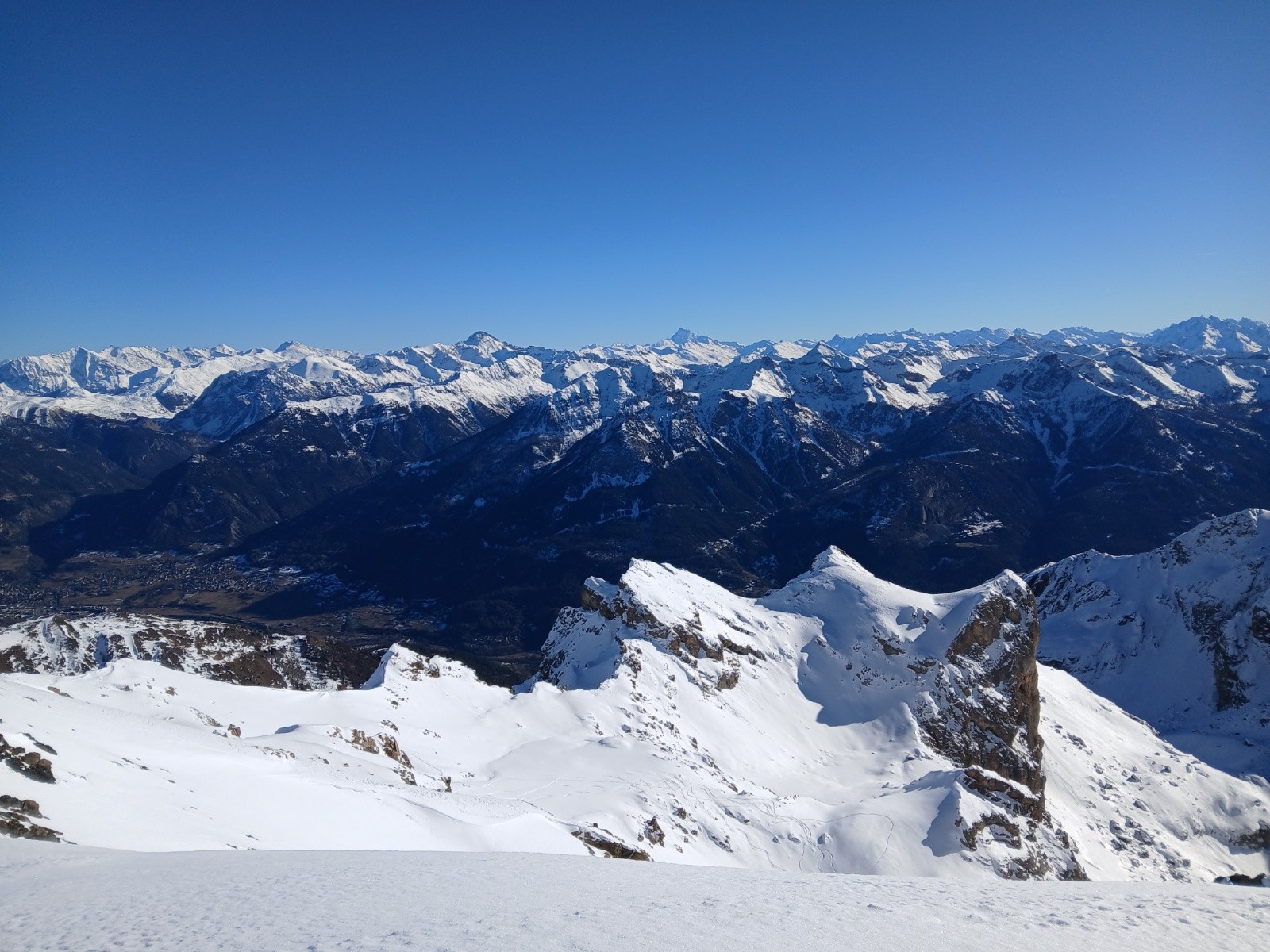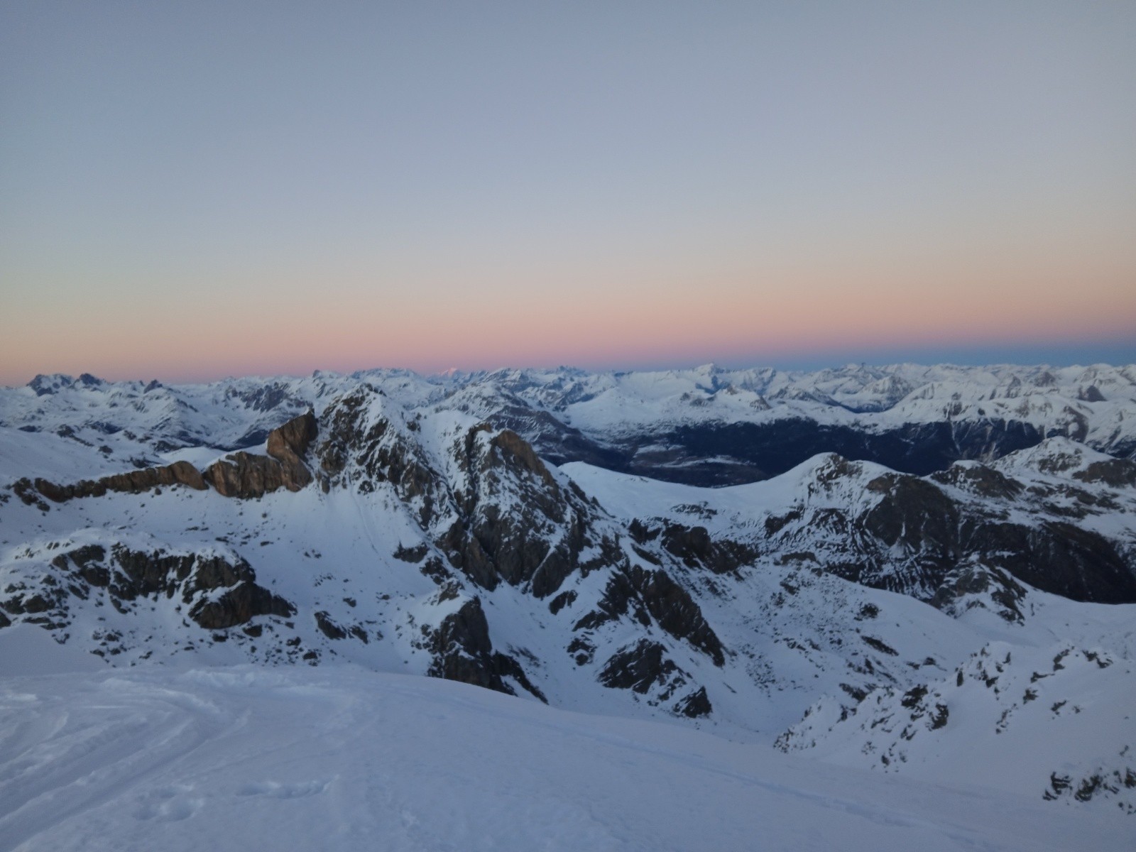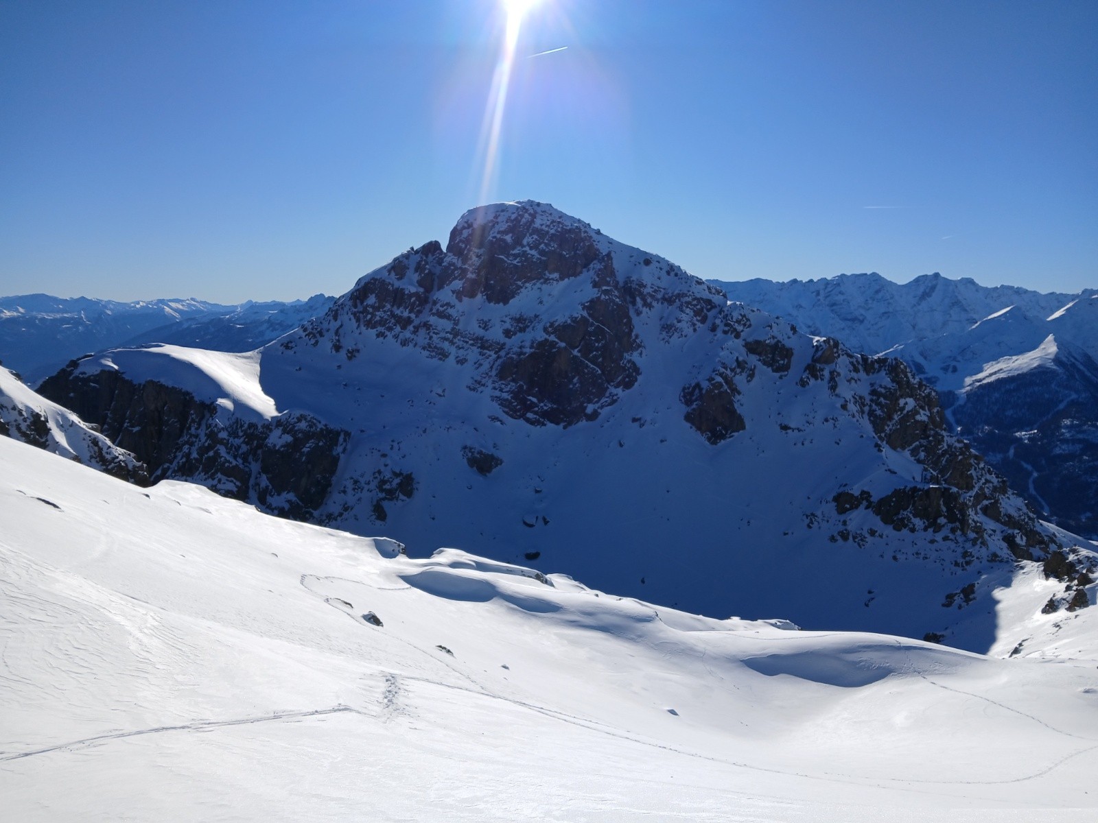 Conditions pour le ski : excellente, face NW en poudre froide (on a tracé dedans en montée c'était long), secteurs ventés, poudre tassée, couloir super condi. En face S poudreuse décaillée et regel dès l'ombre.