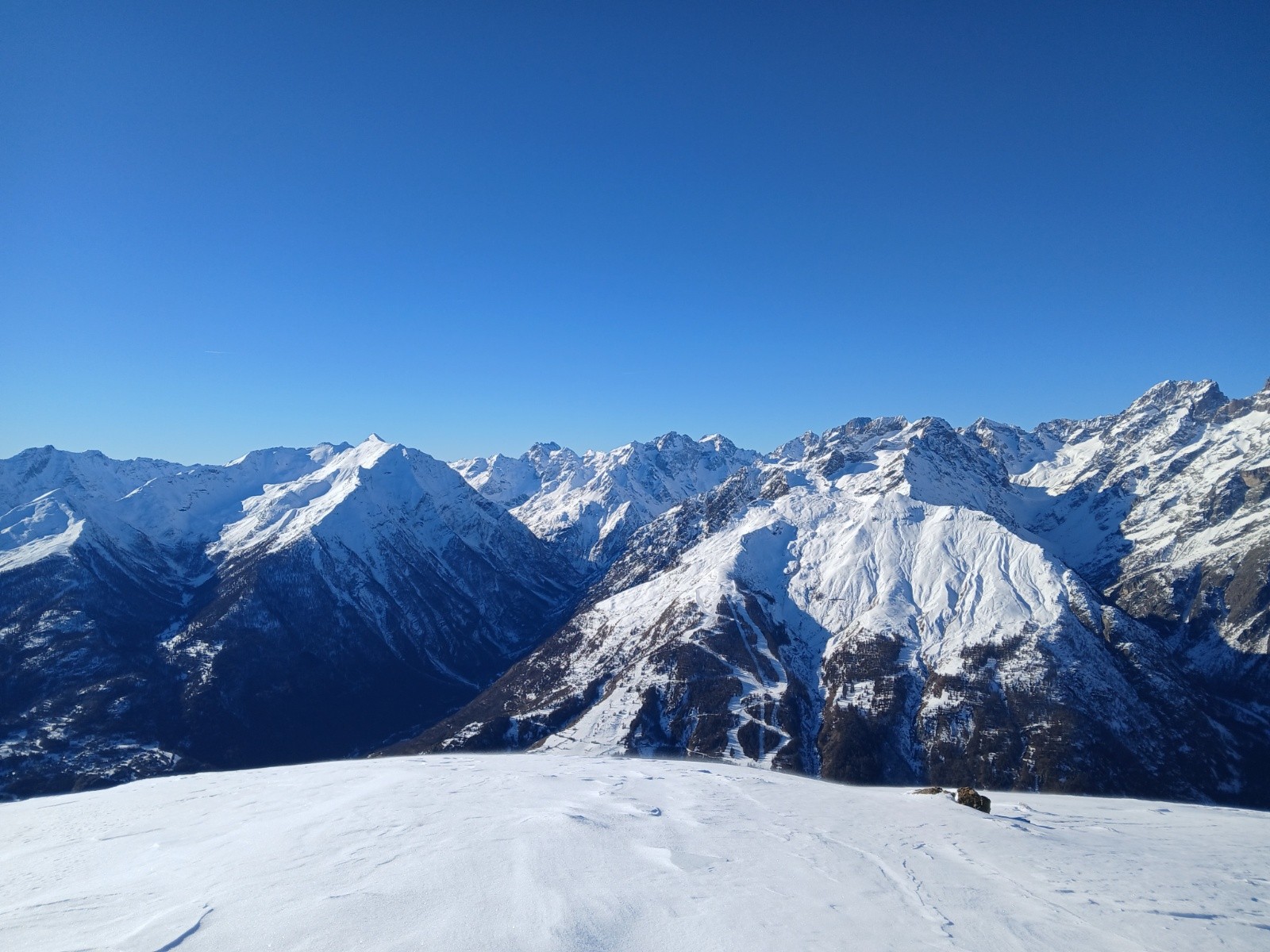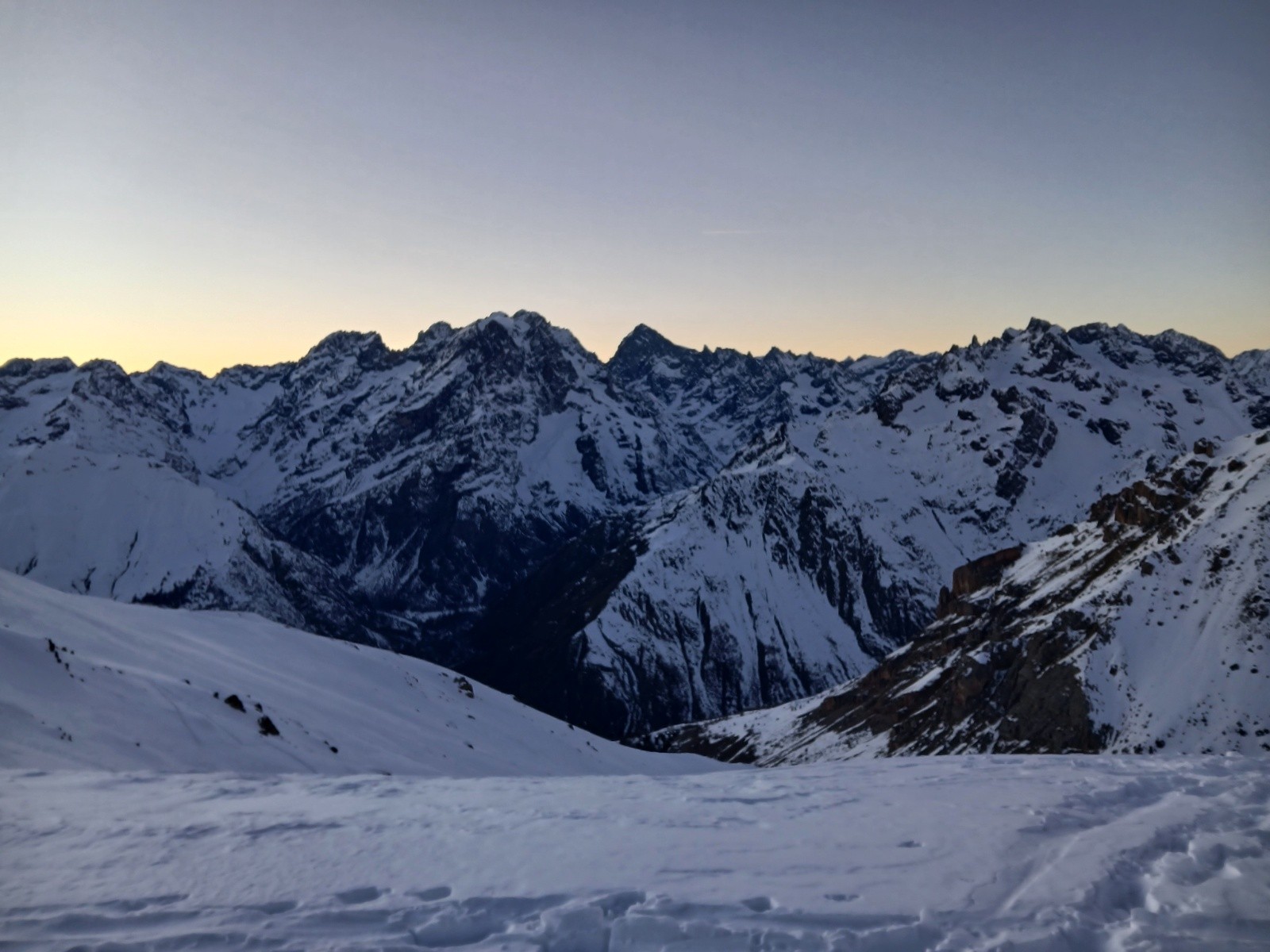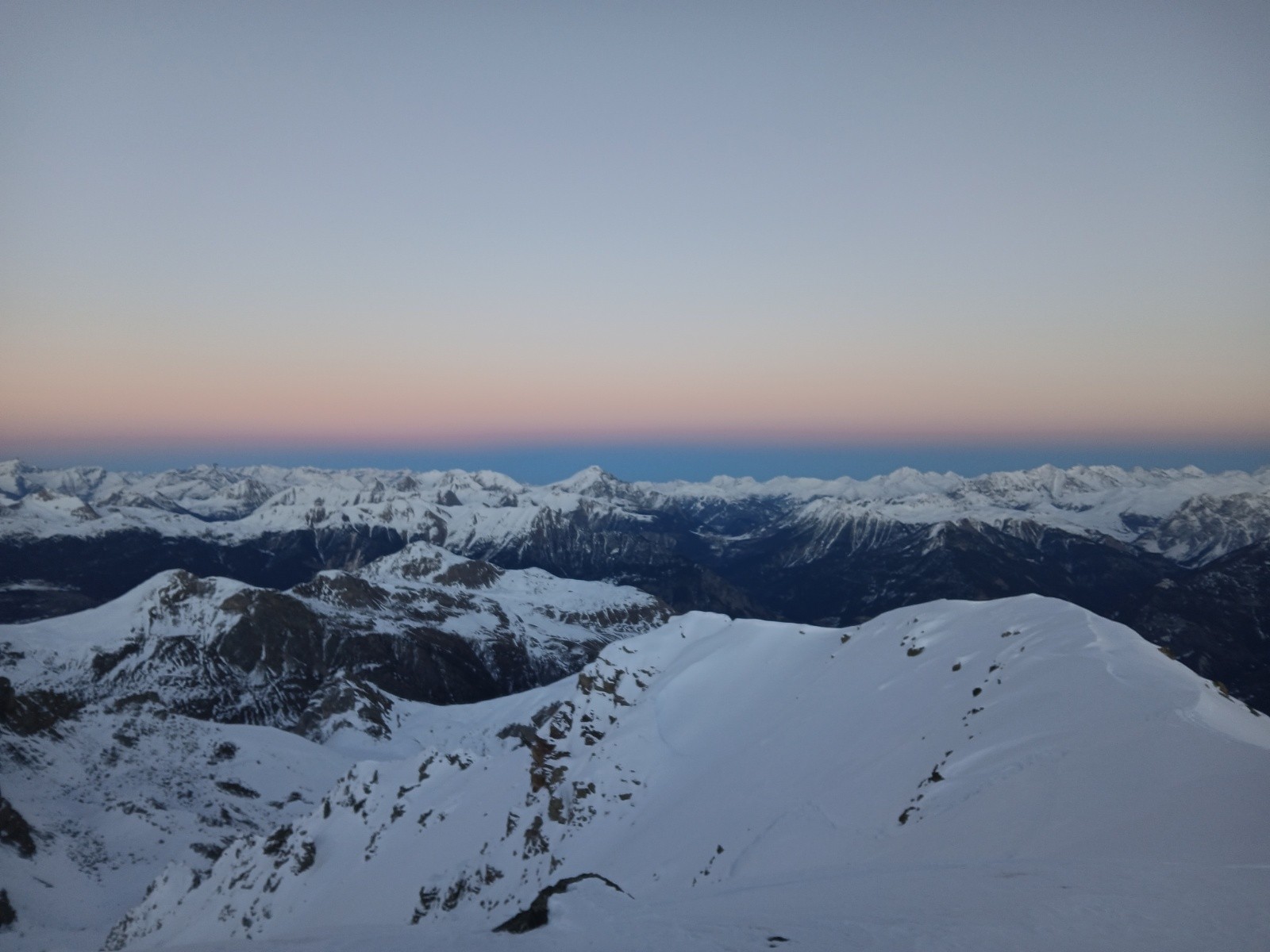 Conditions pour le ski : excellente, face NW en poudre froide (on a tracé dedans en montée c'était long), secteurs ventés, poudre tassée, couloir super condi. En face S poudreuse décaillée et regel dès l'ombre.