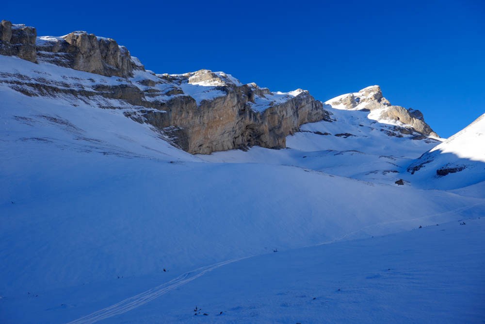 Qu'à cela ne tienne, j'ai vu un petit couloir qui avait l'air sympa et bien orienté sud entre la crête des Crépons et l'Aupet.