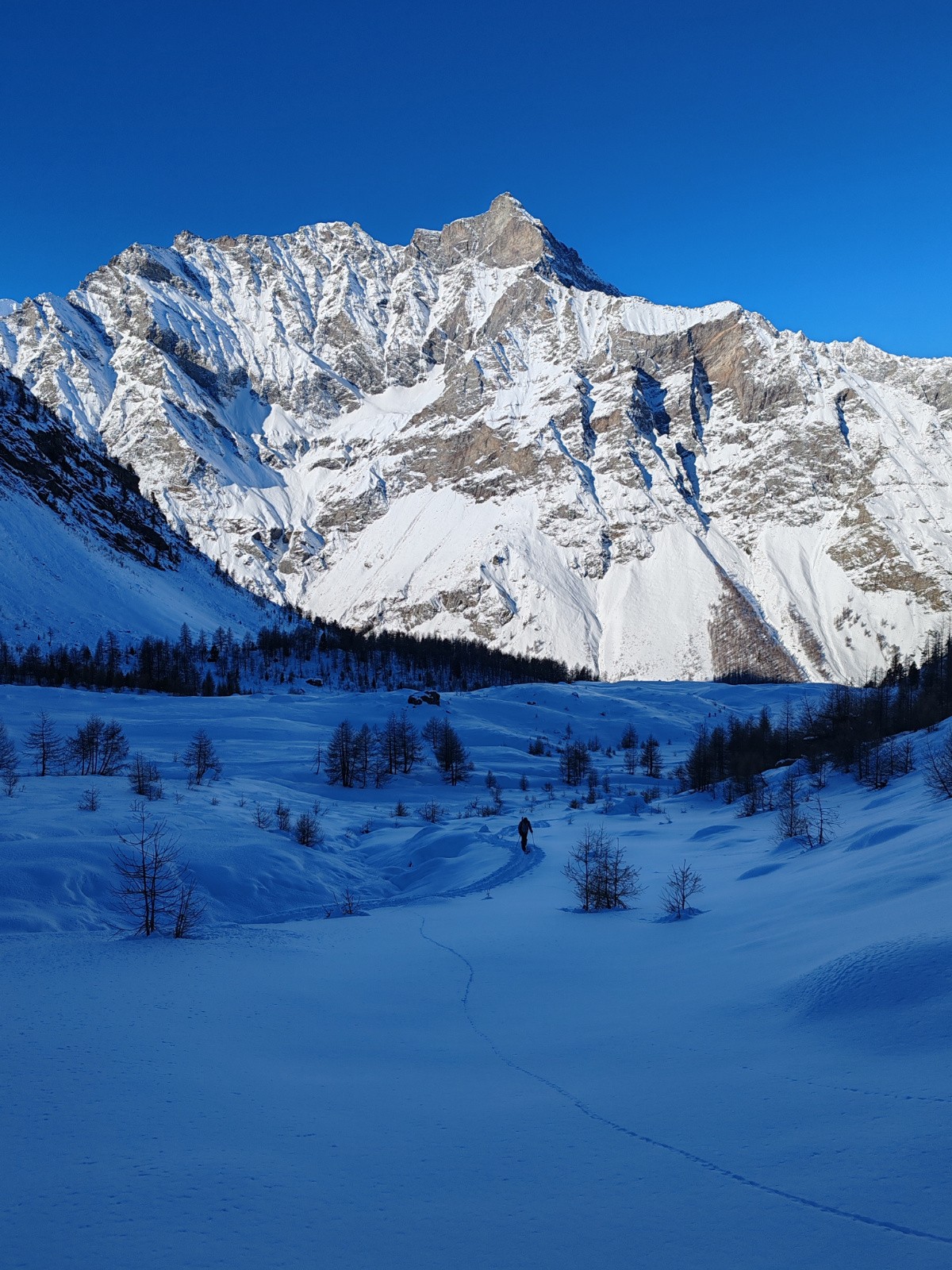 Ici en Val de Rhèmes la neige est présente , 40 cm en bas, 130 cm en haut vers 3000m, le tout sans la moindre sous-couche du haut en bas..! C'est profondément déroutant d'enfoncer les bâtons jusqu'au plancher de vaches à chaque virage.. déroutant et dangereux.!!