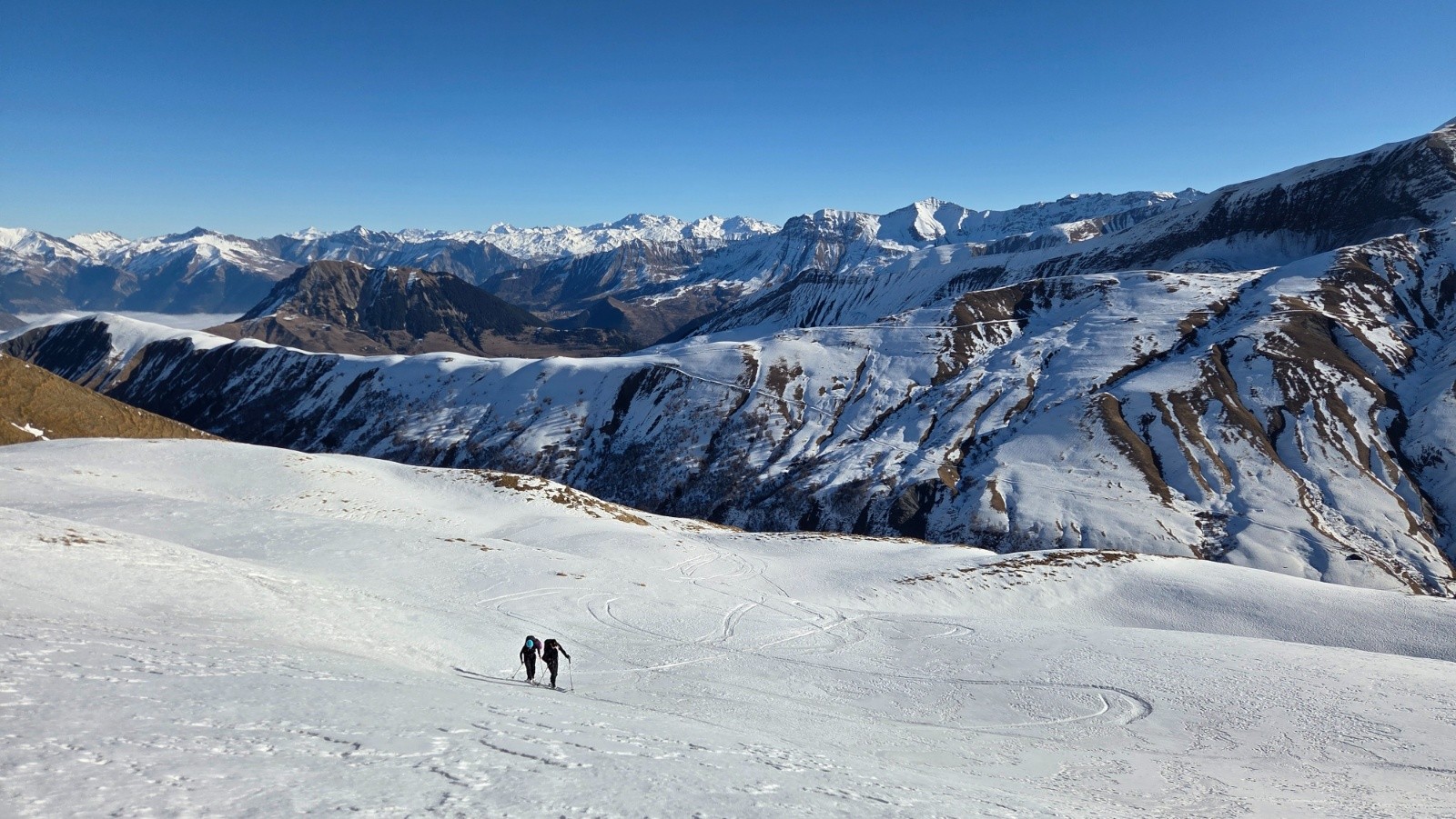 Horaires : 9h00 - 16h00 avec un bon repas Gewurztraminer et pâté de lapin maison. La montée est sauvage, très belle et nous étions seuls (JC, Françoise, Jeff et François); mais ça n'en finit pas. Trace jusqu'à 2500m , puis nous sommes montés un peu trop haut (passer 100 m plus bas). Vu magnifique sur l'Étendard. 2 chamois vu à la descente. Jolie boucle dont on se rappellera. Bonne fin d'année à tous.