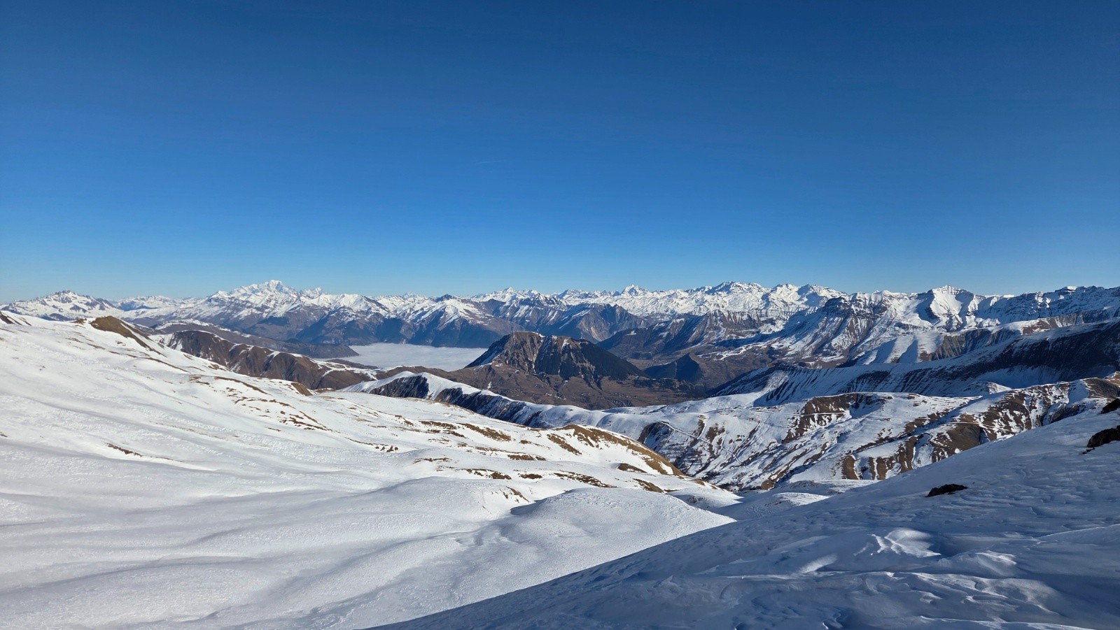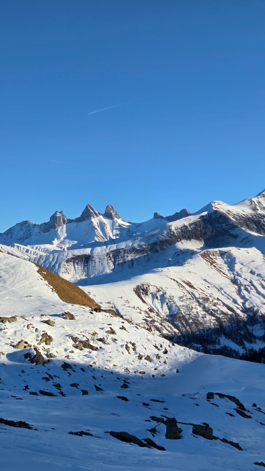 Météo/températures : -6°c à la voiture à 8h30 et -3°c à 16h00. Bon au soleil à la montée, puis petit vent à partir de 2600 m et bien frais. Descente fraiche en N. Sinon ciel bleu parfait!