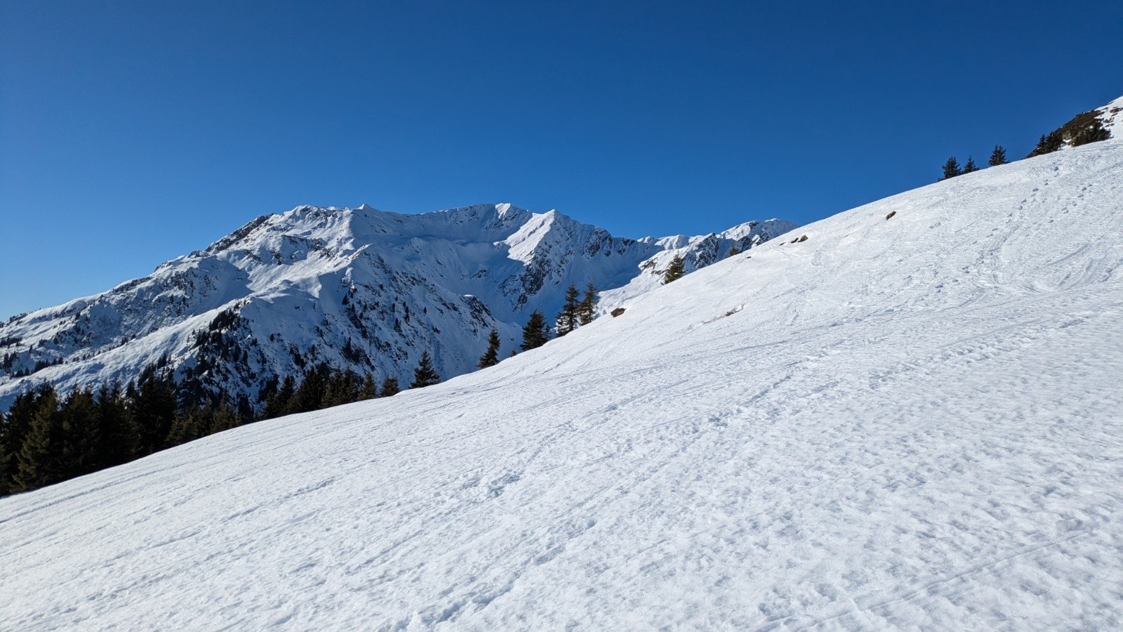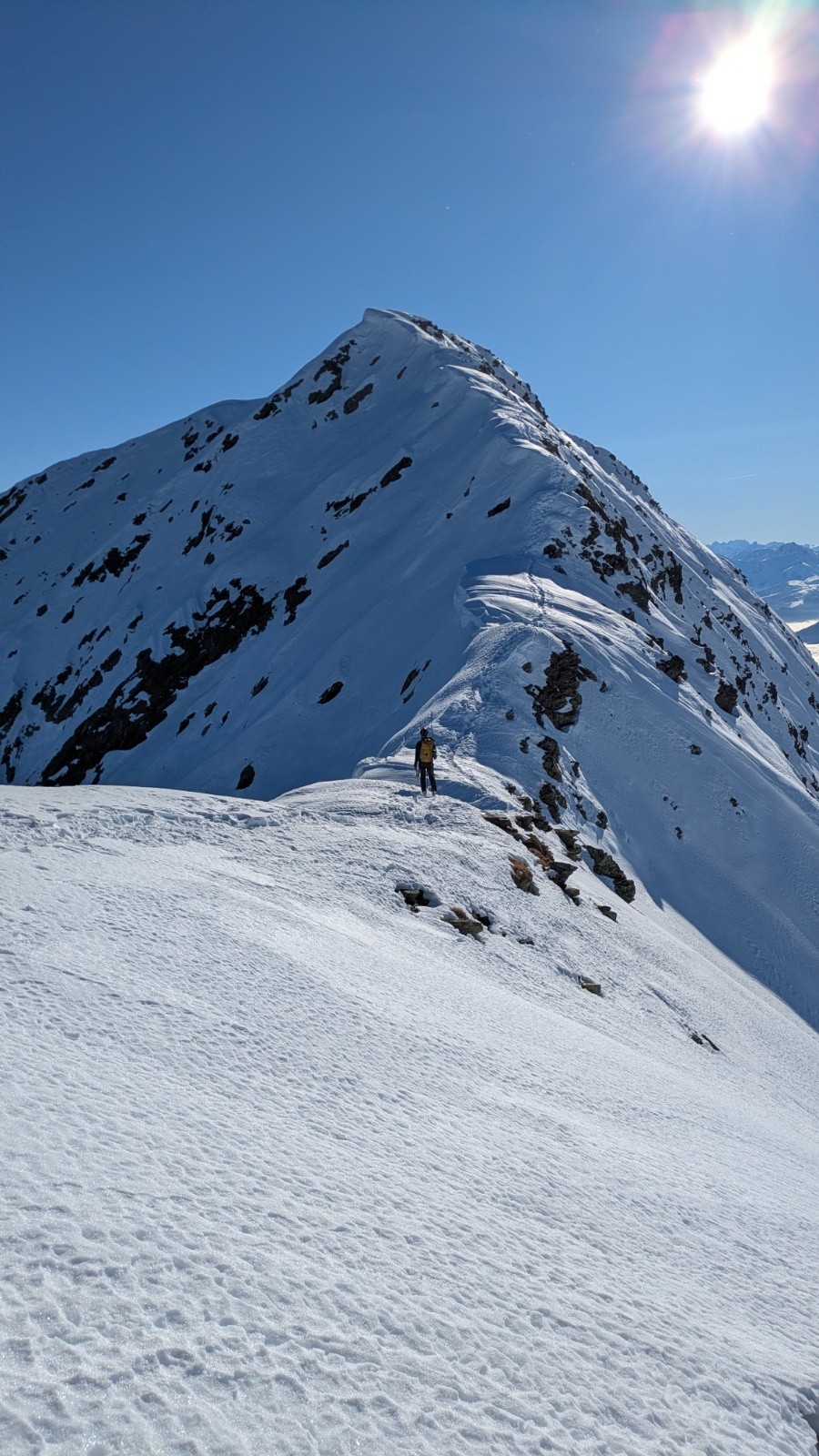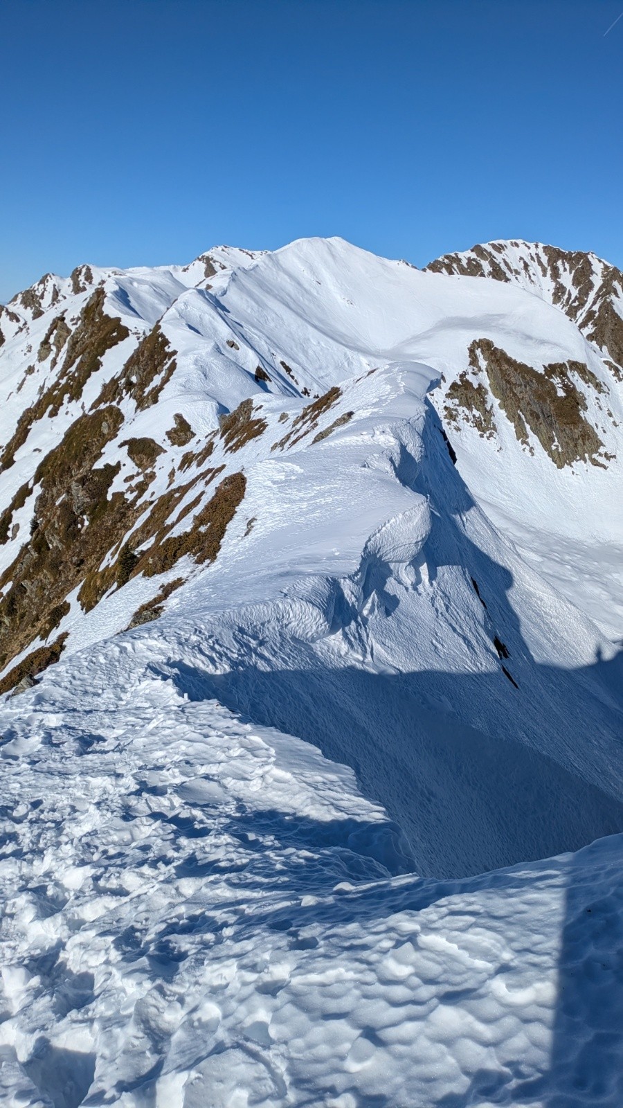 Conditions pour le ski : excellentes pour la montée et sur l'arête, moyennes pour la descente :couloir sud de la grande journée bien décaillé à 13h 👌; le reste plutôt béton globalement
