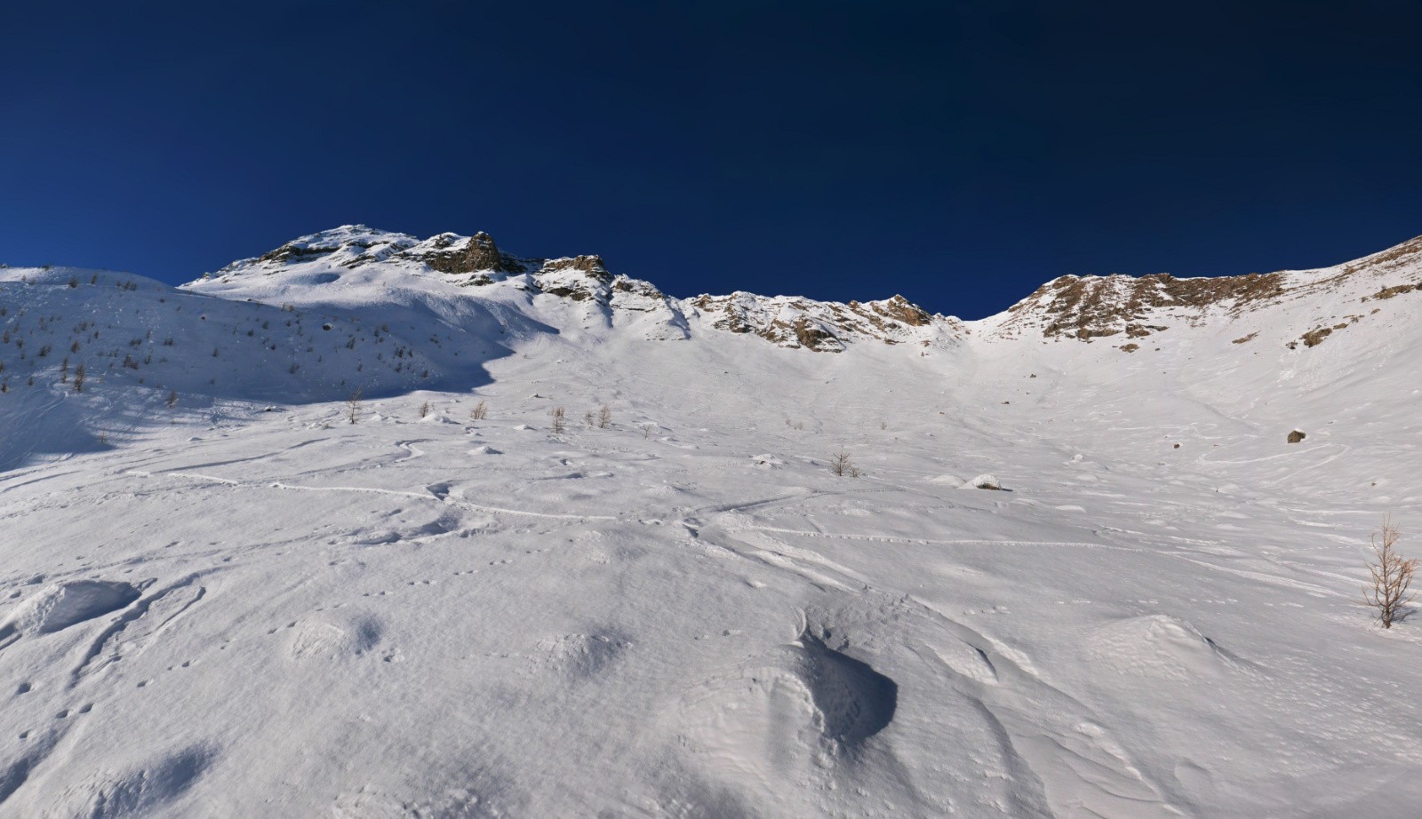 Horaires : 07h45/13hContent d'enfin découvrir ce joli vallon que je n'avais vu que depuis l'arête est de la Recula, mais enneigement limite, enfin ça a permis de faire au moins une sortie sauvage pendant ce court séjour