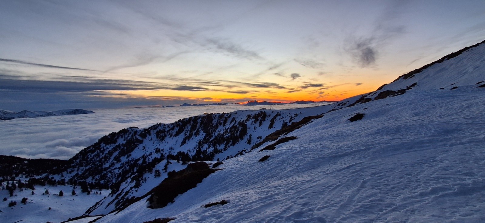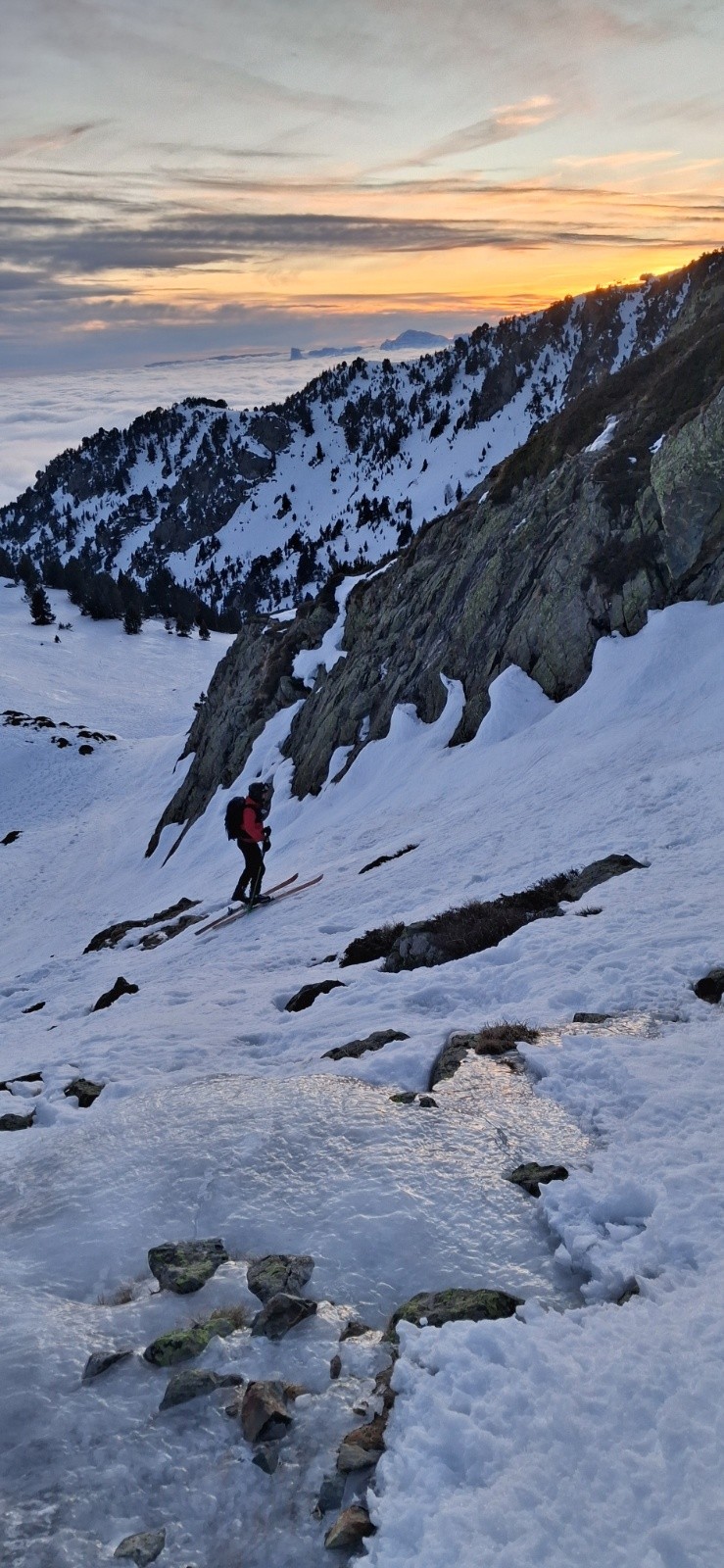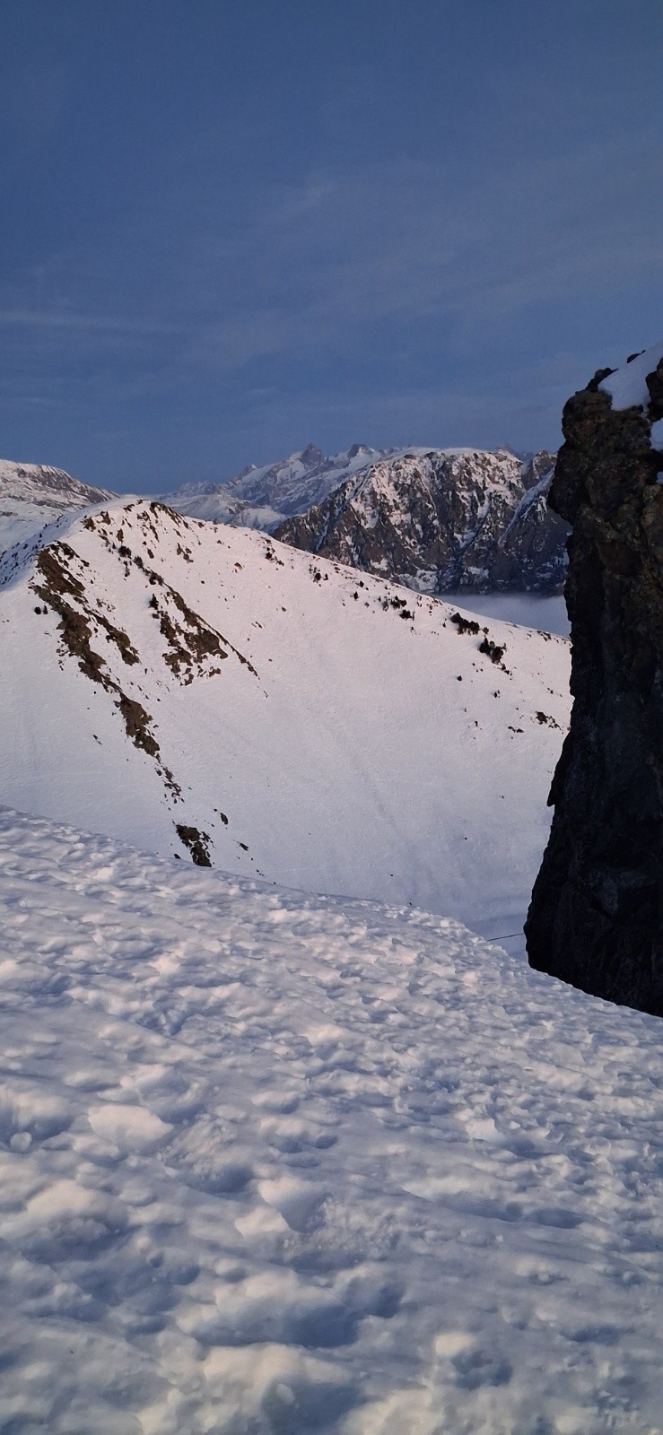 Conditions pour le ski : Pas de décaillage, neige dure sur tous les versants.