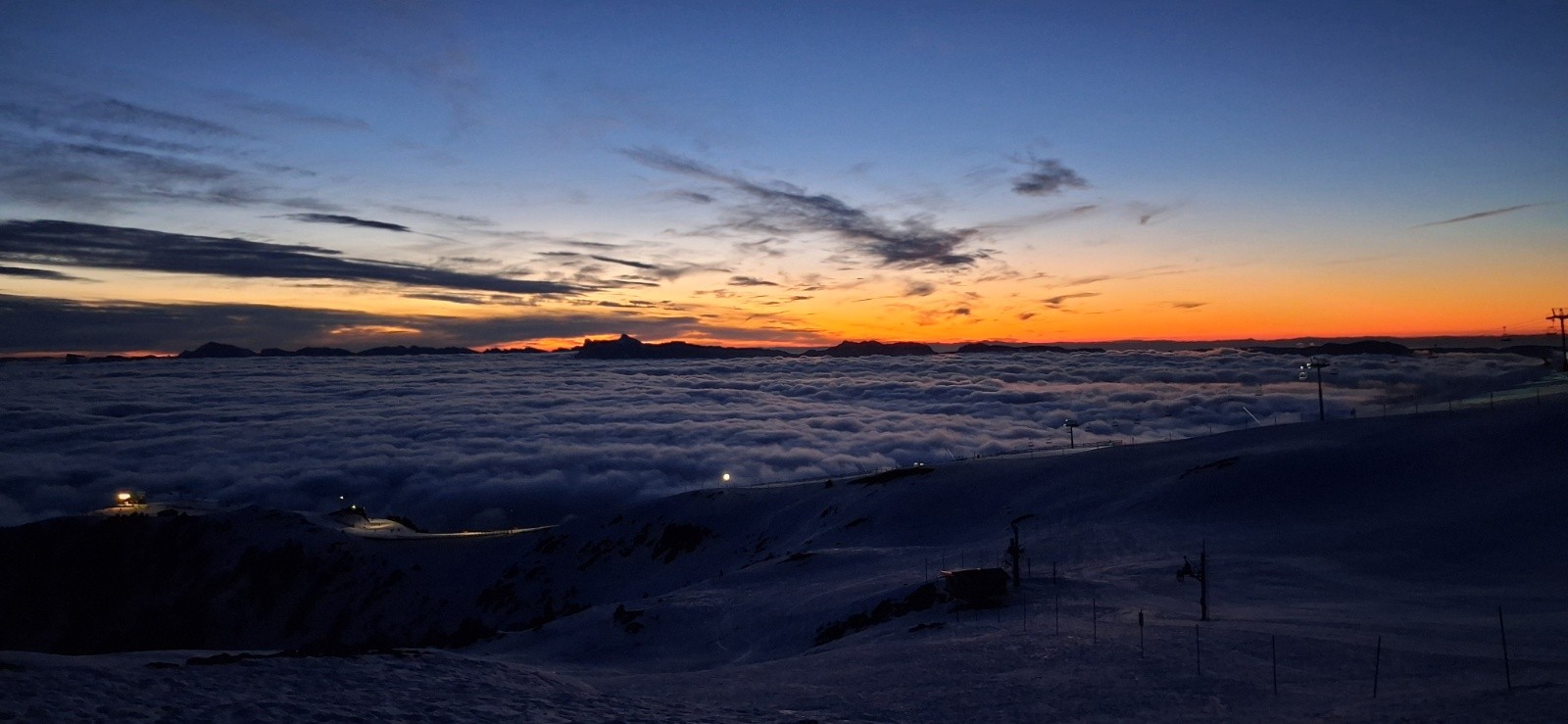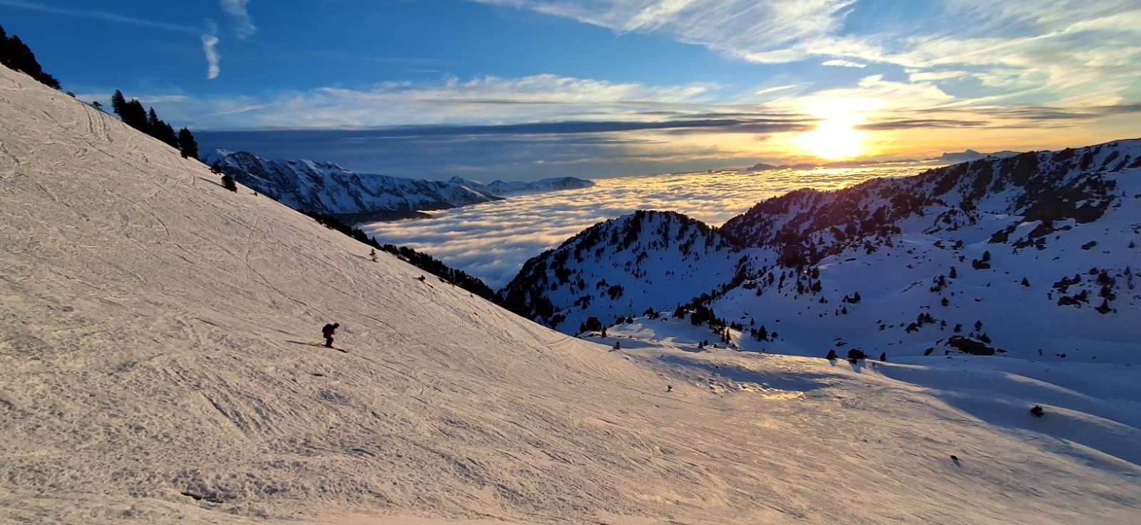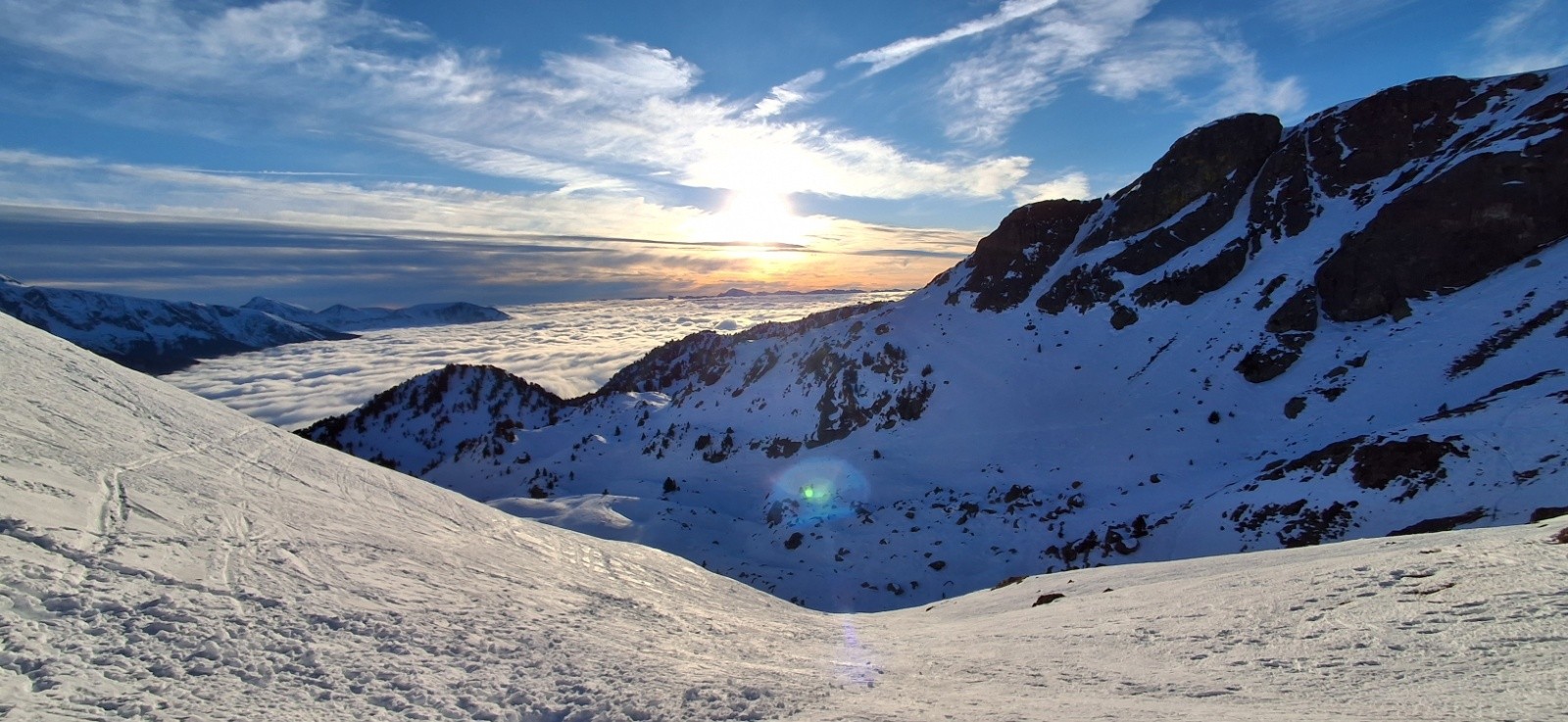 Conditions pour le ski : Pas de décaillage, neige dure sur tous les versants.
