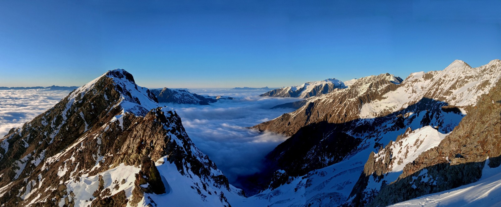 Météo/températures : mer de nuages à 1900 m, beau temps et très froid, -12 °C à la voiture.