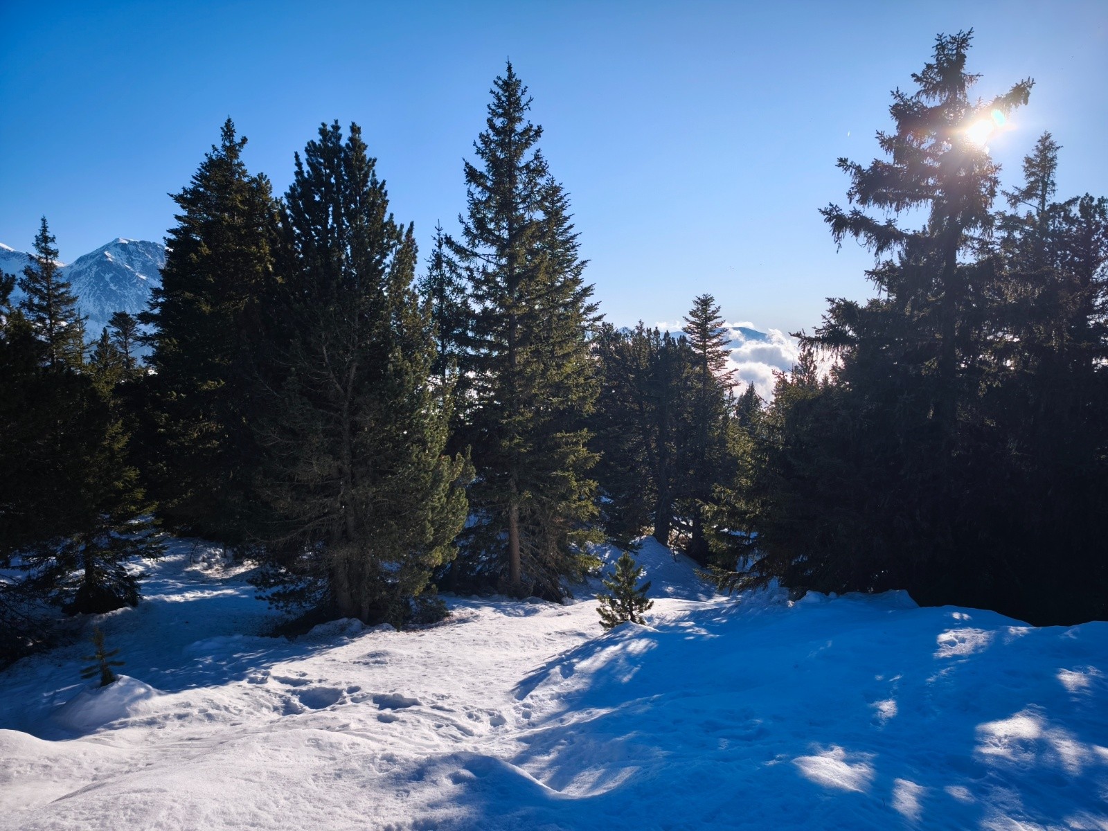 Météo/températures : Température ressentie bien basse, -10° en partant, 3 degrés de plus que la dernière sortie, pourtant la grosse veste était bien nécessaire même dans la montée.