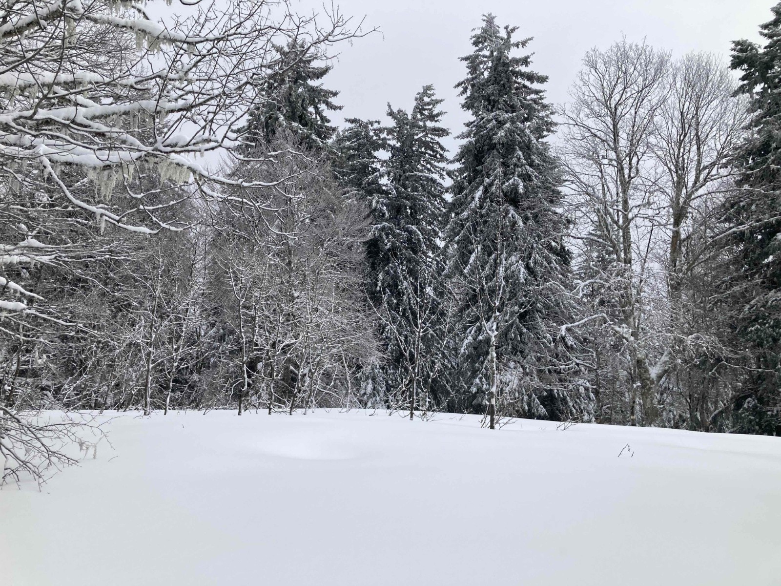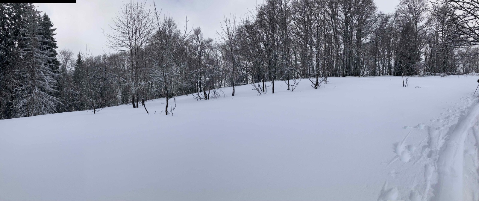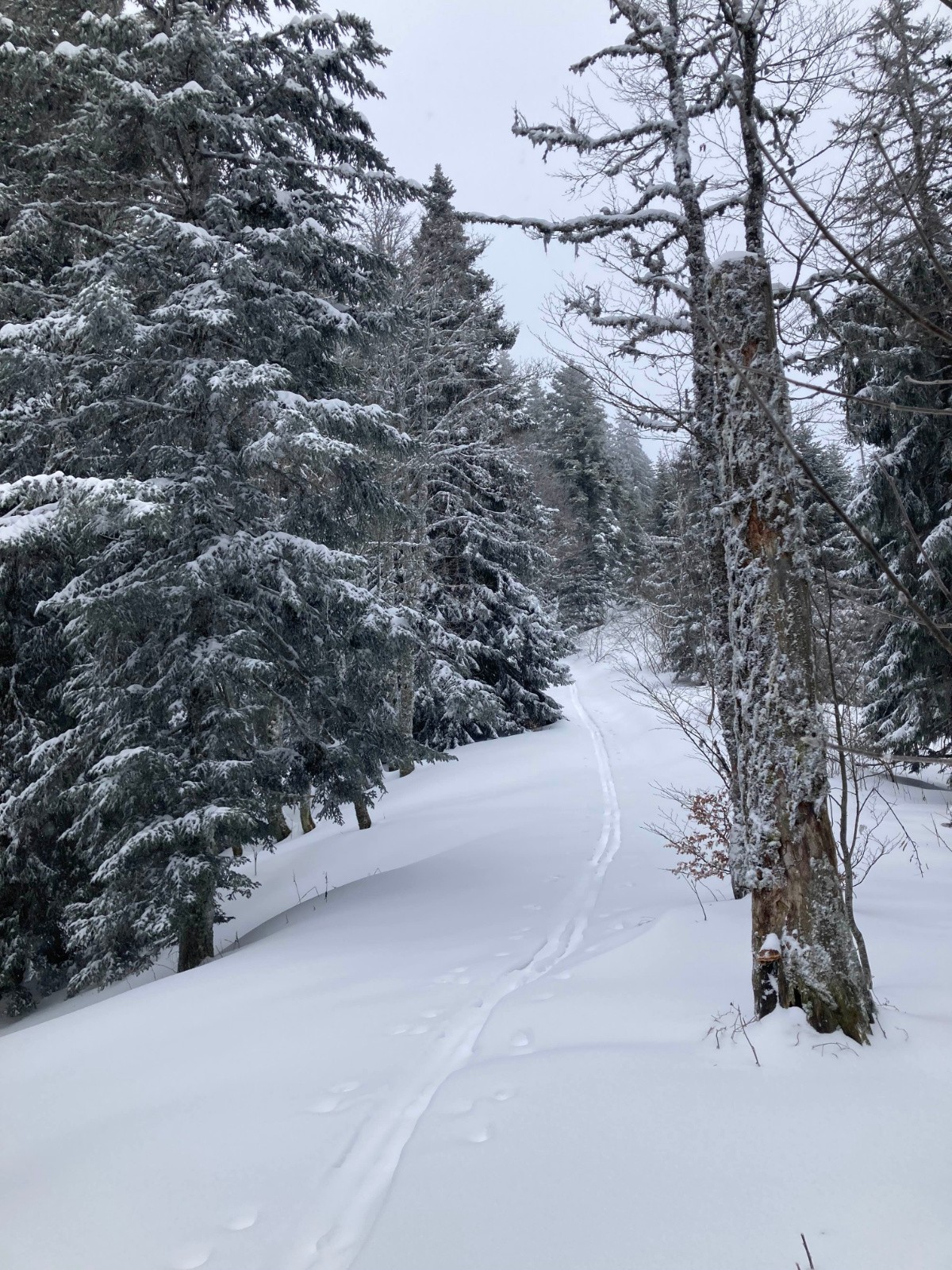 Conditions pour le ski : Très bonnes. Bonne visibilité malgré la neige, pas de vent en forêt. Ambiance Chartreuse hivernale qui fait du bien. Descente de la piste de l'ancien télésiège excellente : neige fraiche poudreuse. La forêt se skie bien aussi.