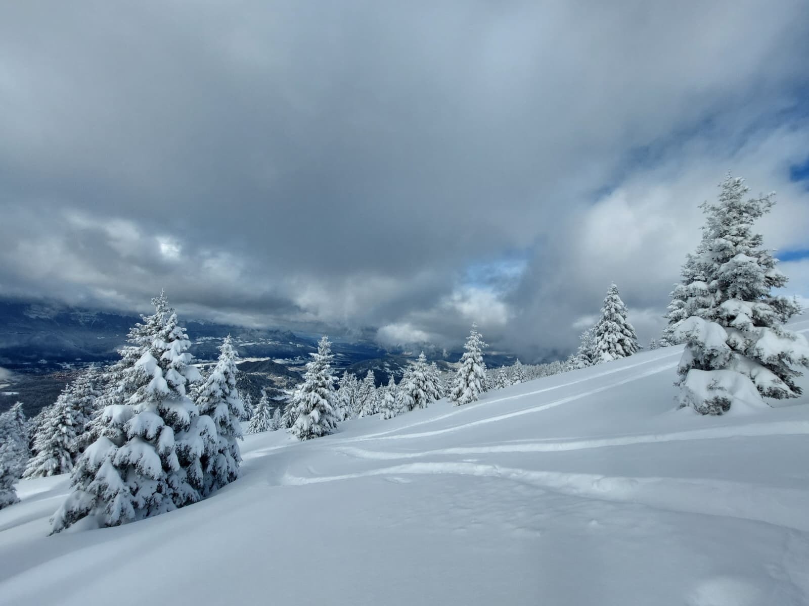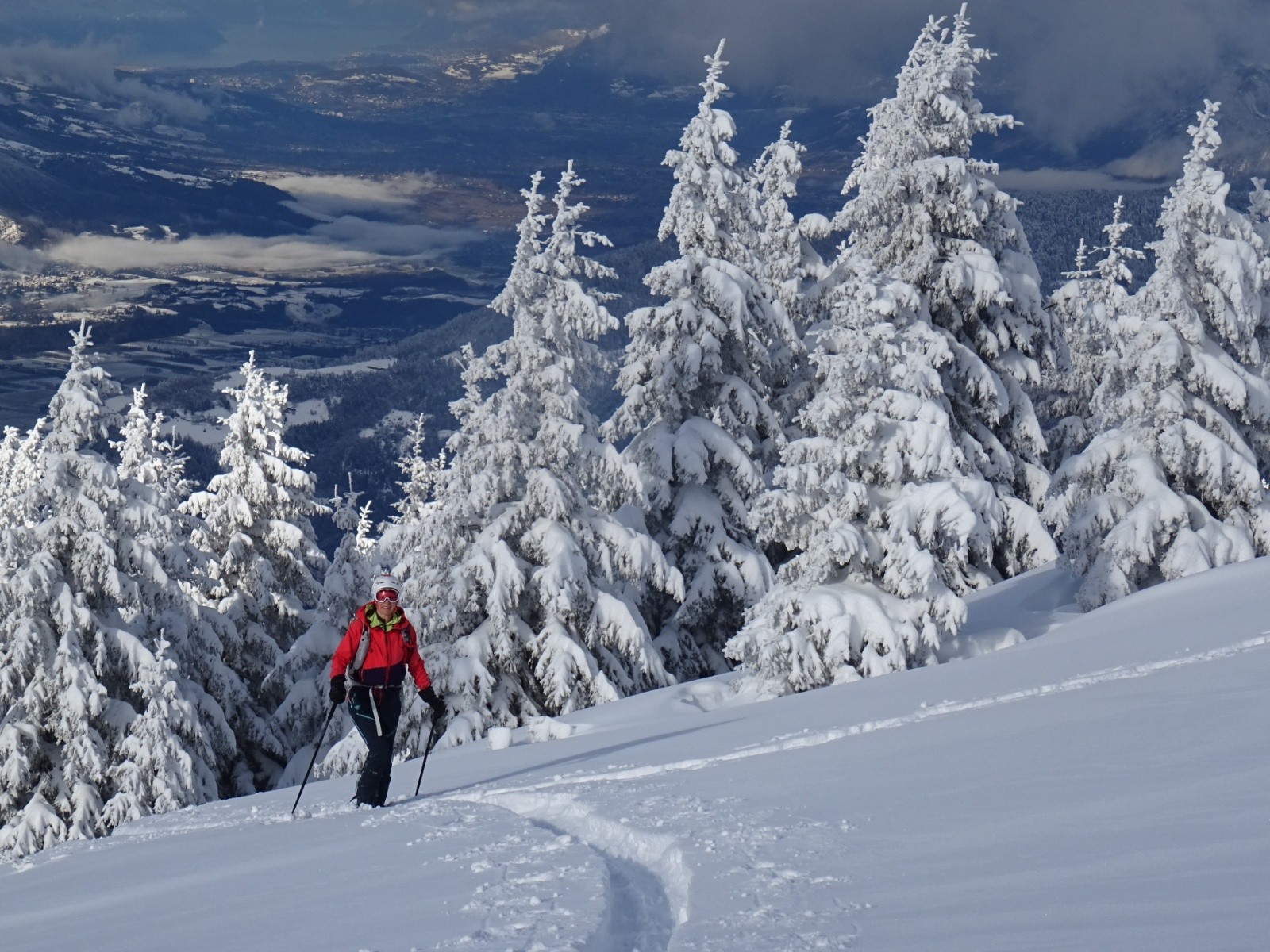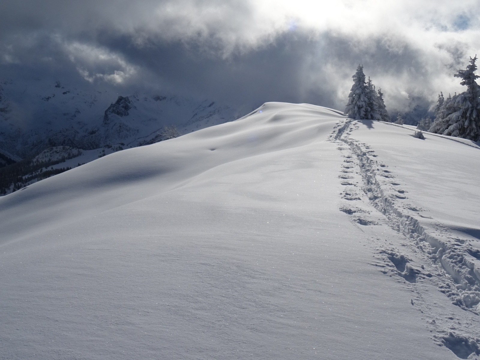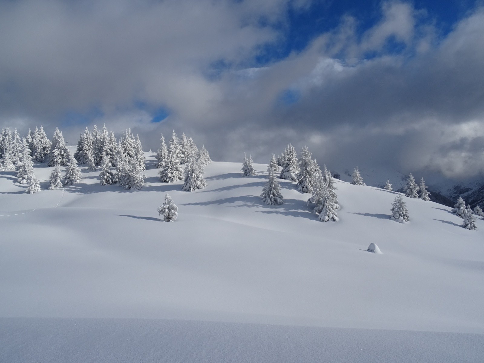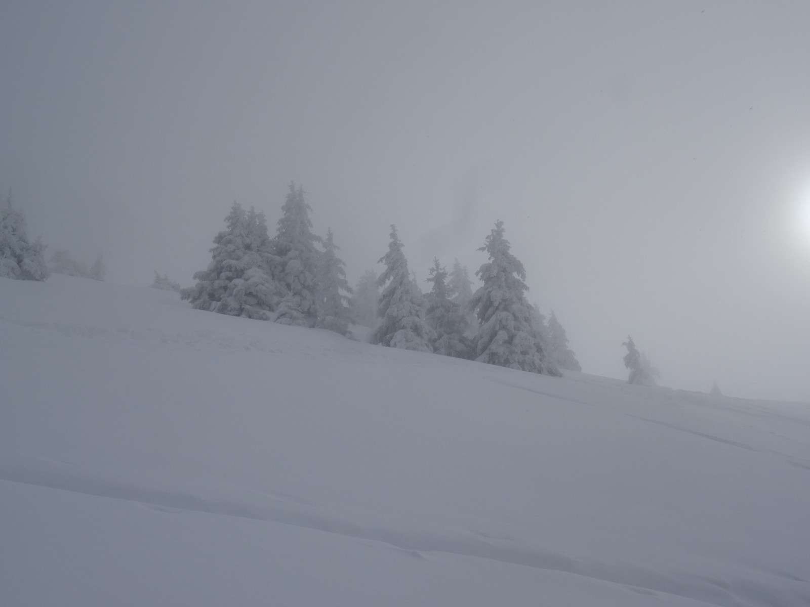 Météo/températures : frisquet mais pas trop, petites chutes de neige, nuages se dissipant doucement puis revenant en fin de journée, bonne visibilité, belles éclaircies un peu inespérées