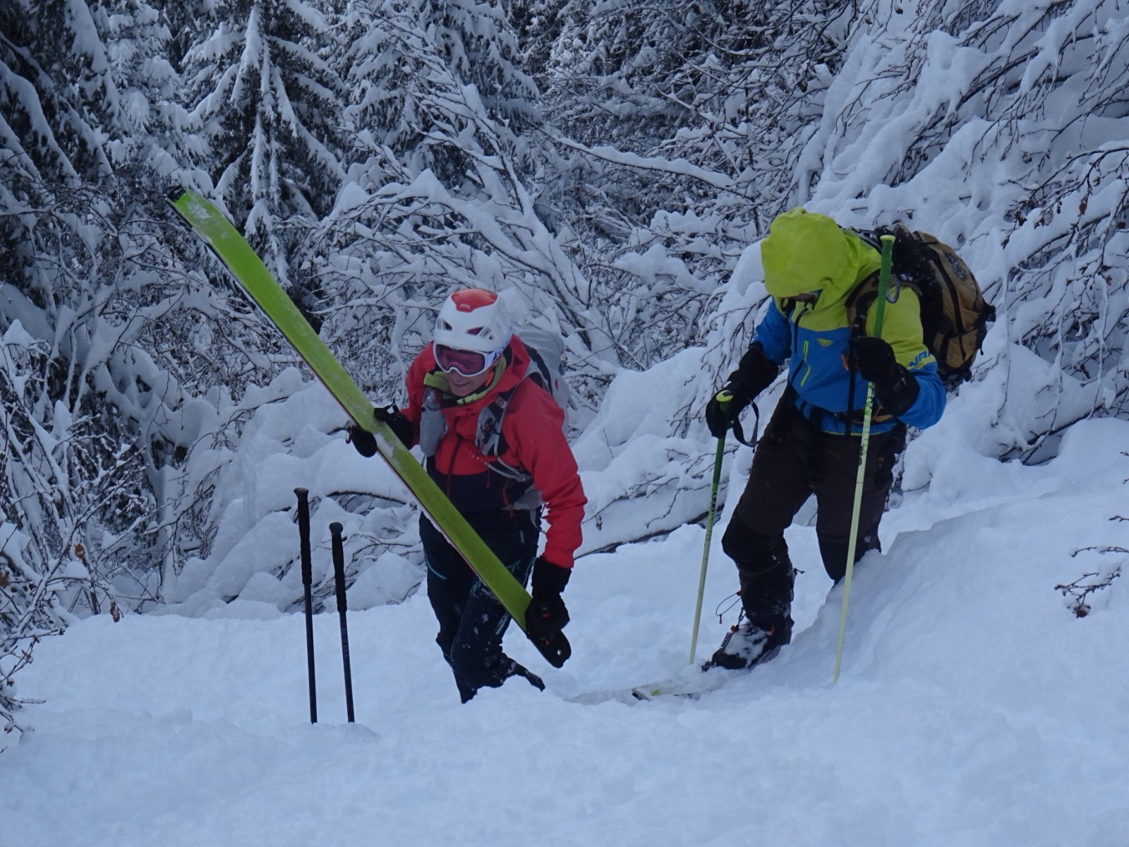 Quelques soucis de collage de peaux, à tour de rôle, mais on s'en est sortis : une 2ème paire (collective au besoin) aurait pu se justifier avec 4 repeautages, en solution de secours.