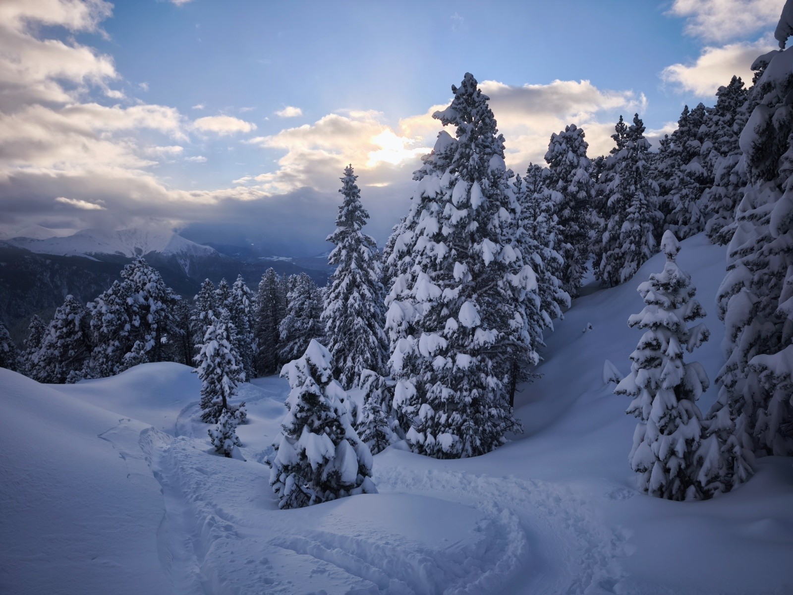 Conditions d'accès/altitude du parking : Route blanche, mais passé par Casserousse, car surement moins de monde et bonne pioche, çà roulait bien avec 4 pneus neiges, dont les arrières quasi neufs, juste 2 voitures. Retour derrière un camion plateau qui faisait un peu de drift par Luitel, mais çà descendait bien quand même grosso modo, ayant double essieu et chargé d'une familiale citadine, il ratissait bien devant moi. Par contre en station, c'est Bagdad avec tout les nids de poule fait par la neige, ça secoue bien.