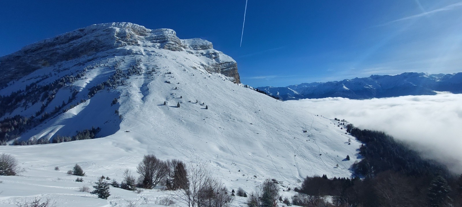 Itinéraire suivi : départ de chez Raphaël 10h15. Remontée par ch forestier bien chargé. Au parking a 1250m c est blindé. Montée tranquille. Du monde .. pas mal de monde .. a croire que la station du col du coq a réouvert côté col des ayes ?