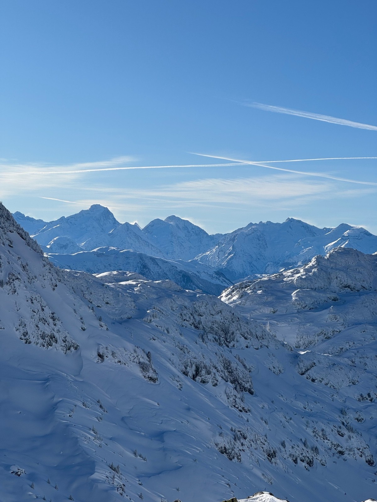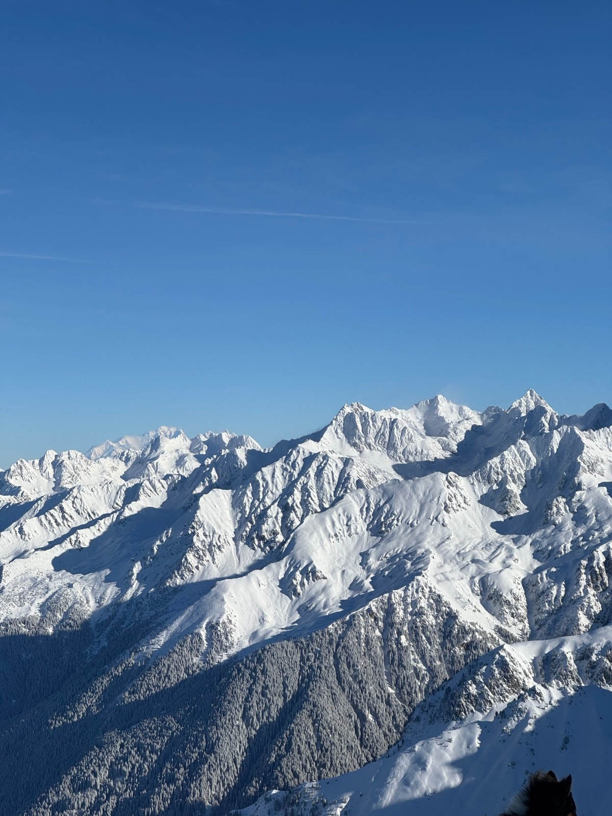 Ultra classique Grenobloise, donc je décide de partir tôt. C'est LE jour de la semaine pour sortir, donc du monde dans le boardercross, ensuite ça s'ouvre et le panorama est incroyable ! Belledonne est plâtré !