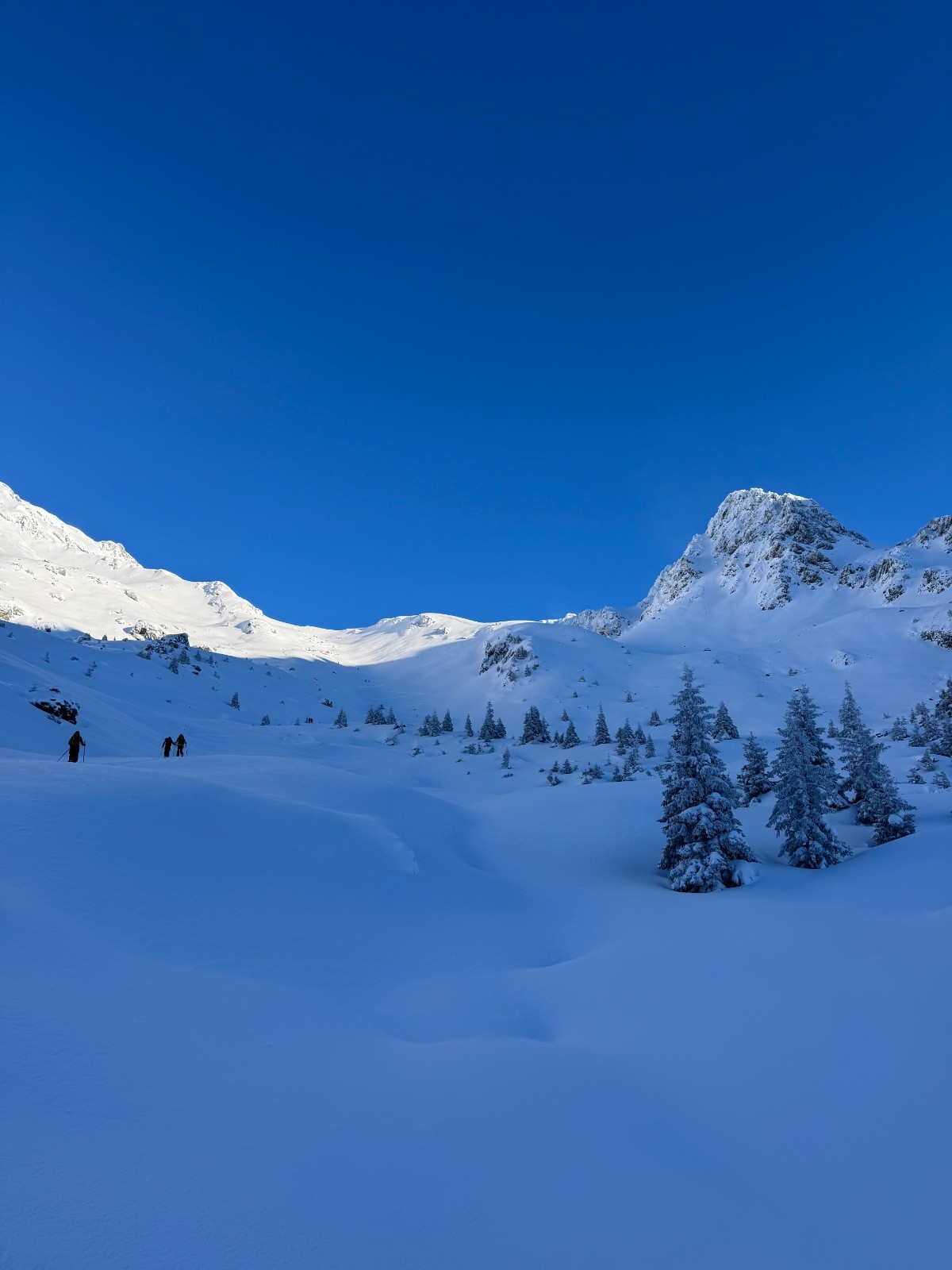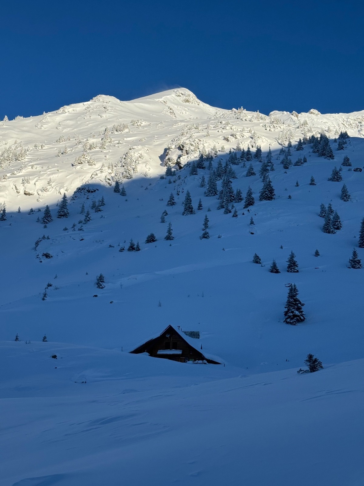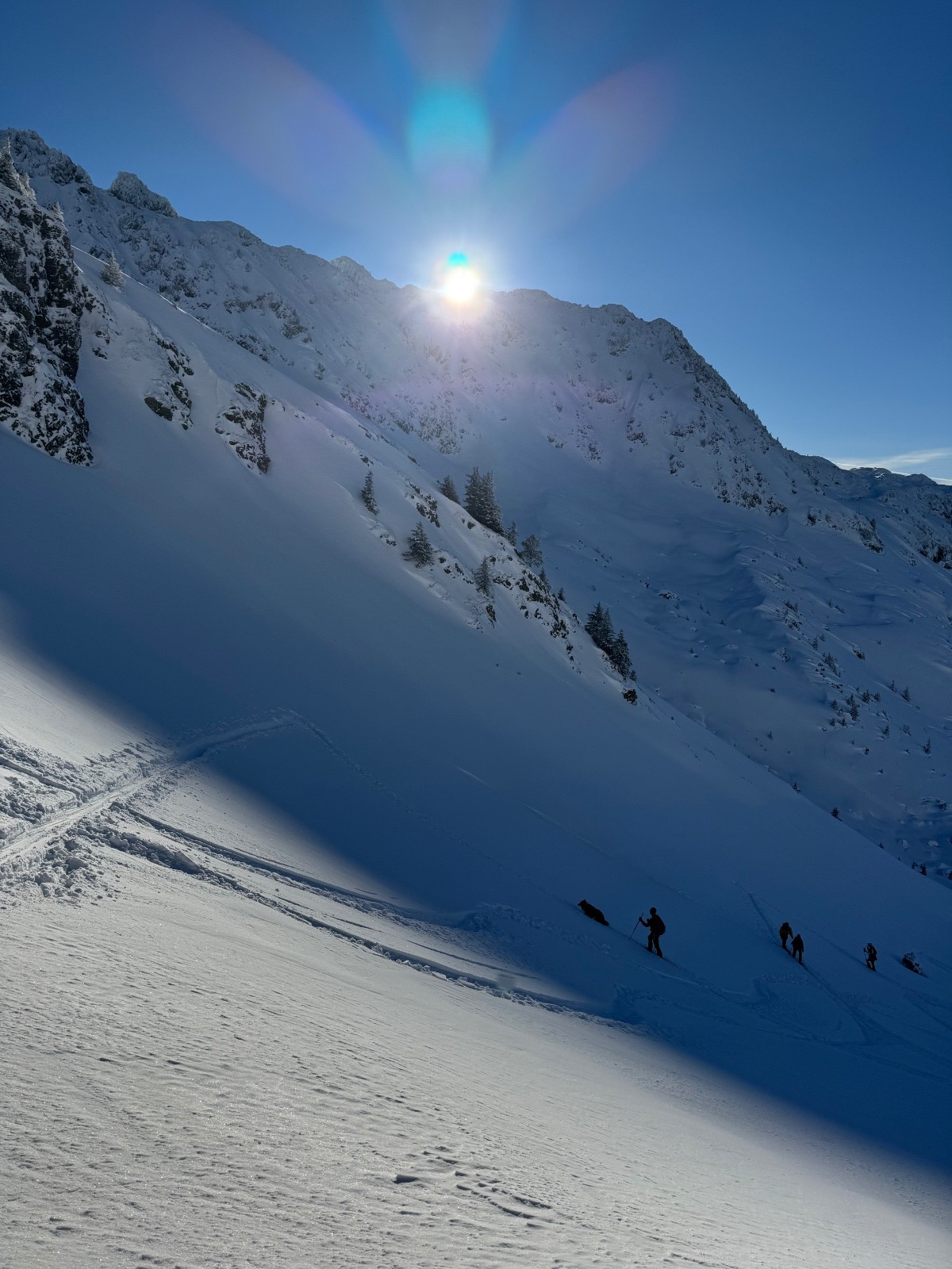 Descente 5 étoiles, dans une neige hyper légère, ça remonte jusqu'au ventre dans les portions raides !