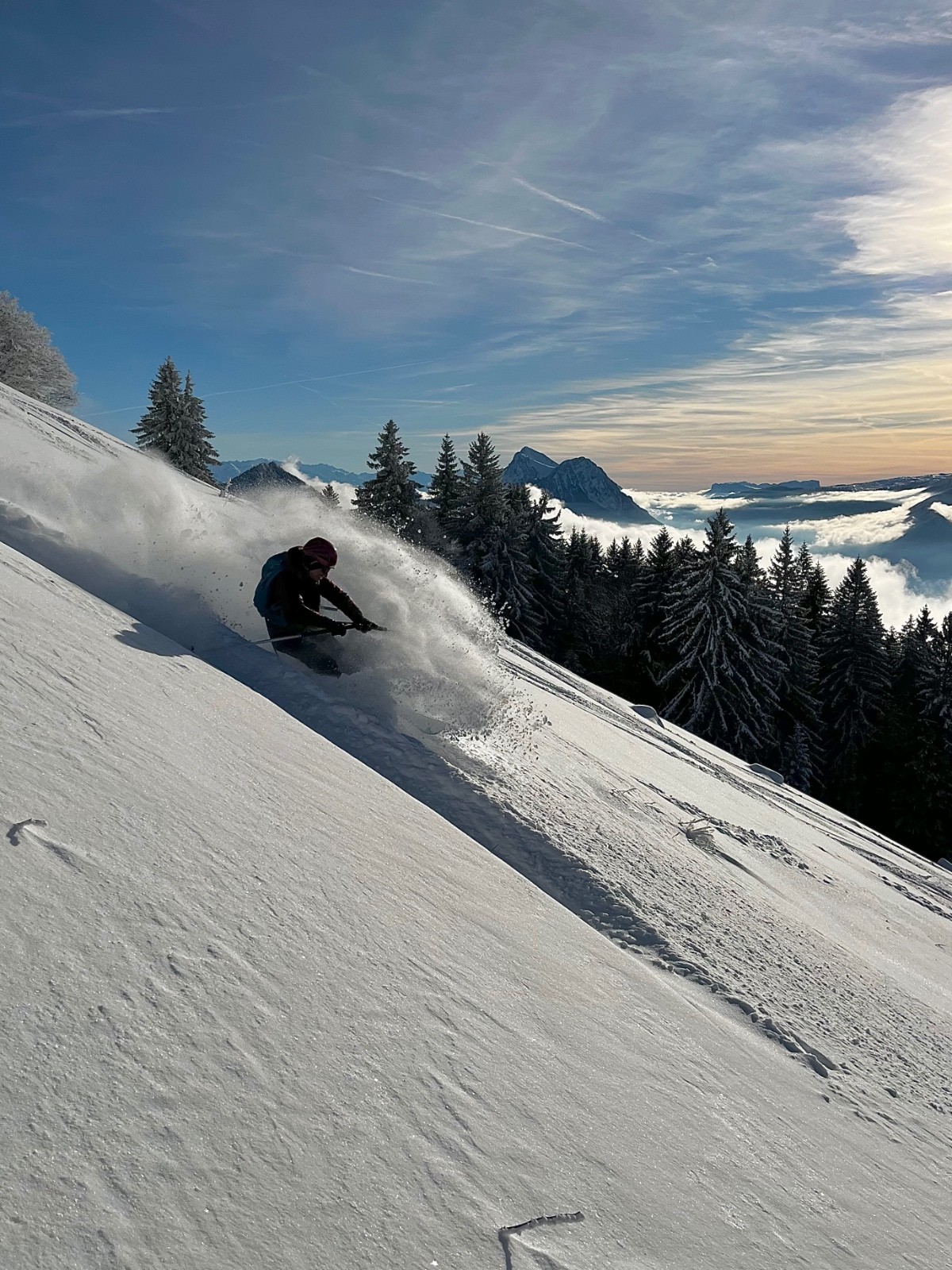 Conditions nivo et activité avalancheuse : RAS. Bon enneigement sur le chemin, première prairie un peu light mais super poudre en haut.