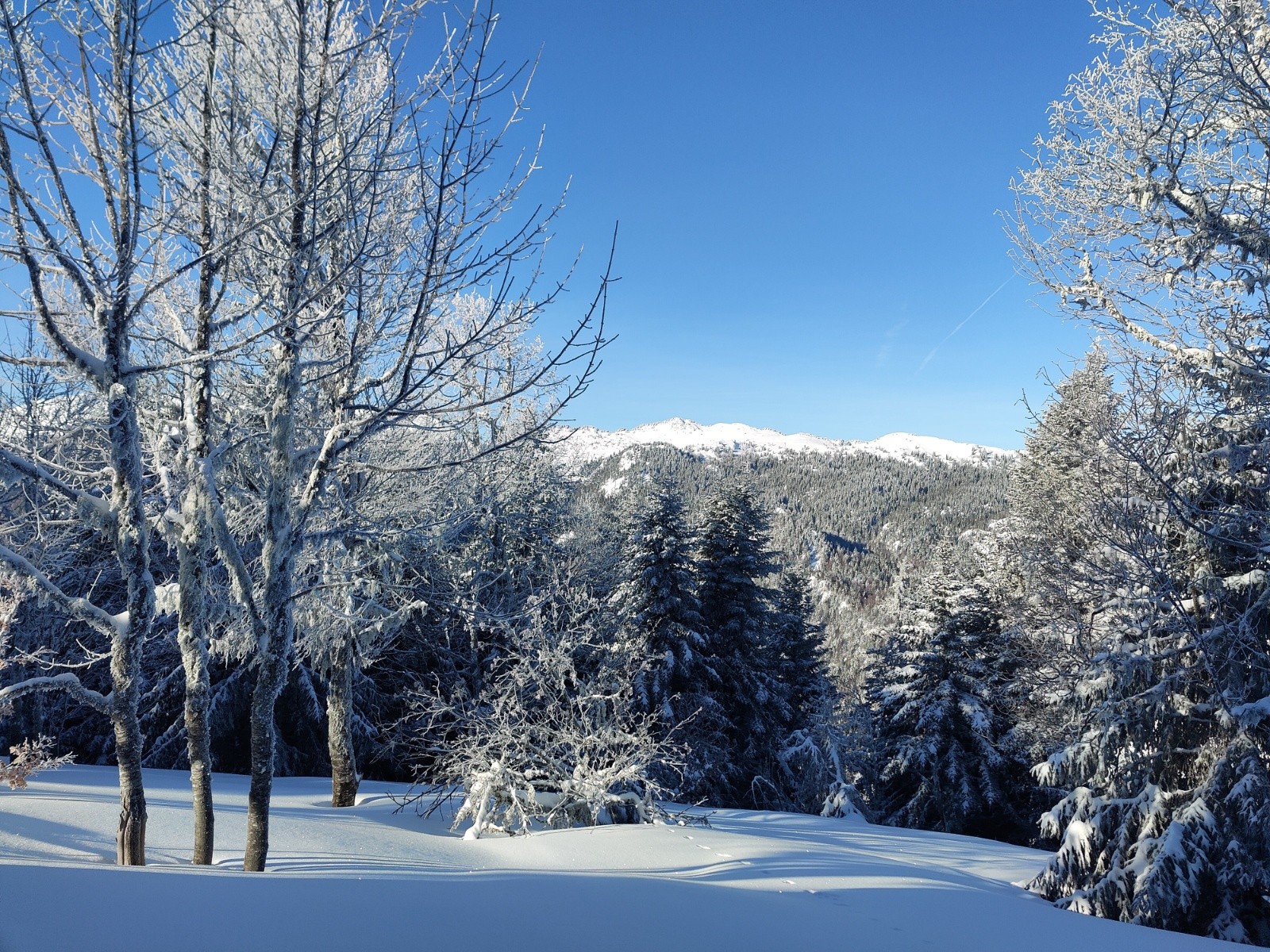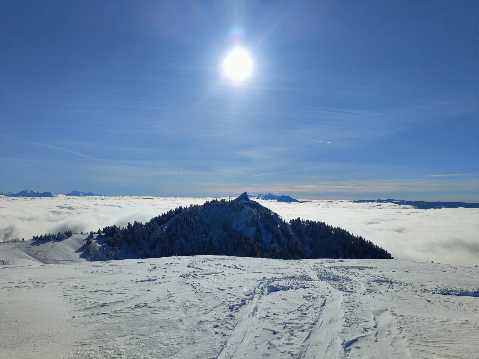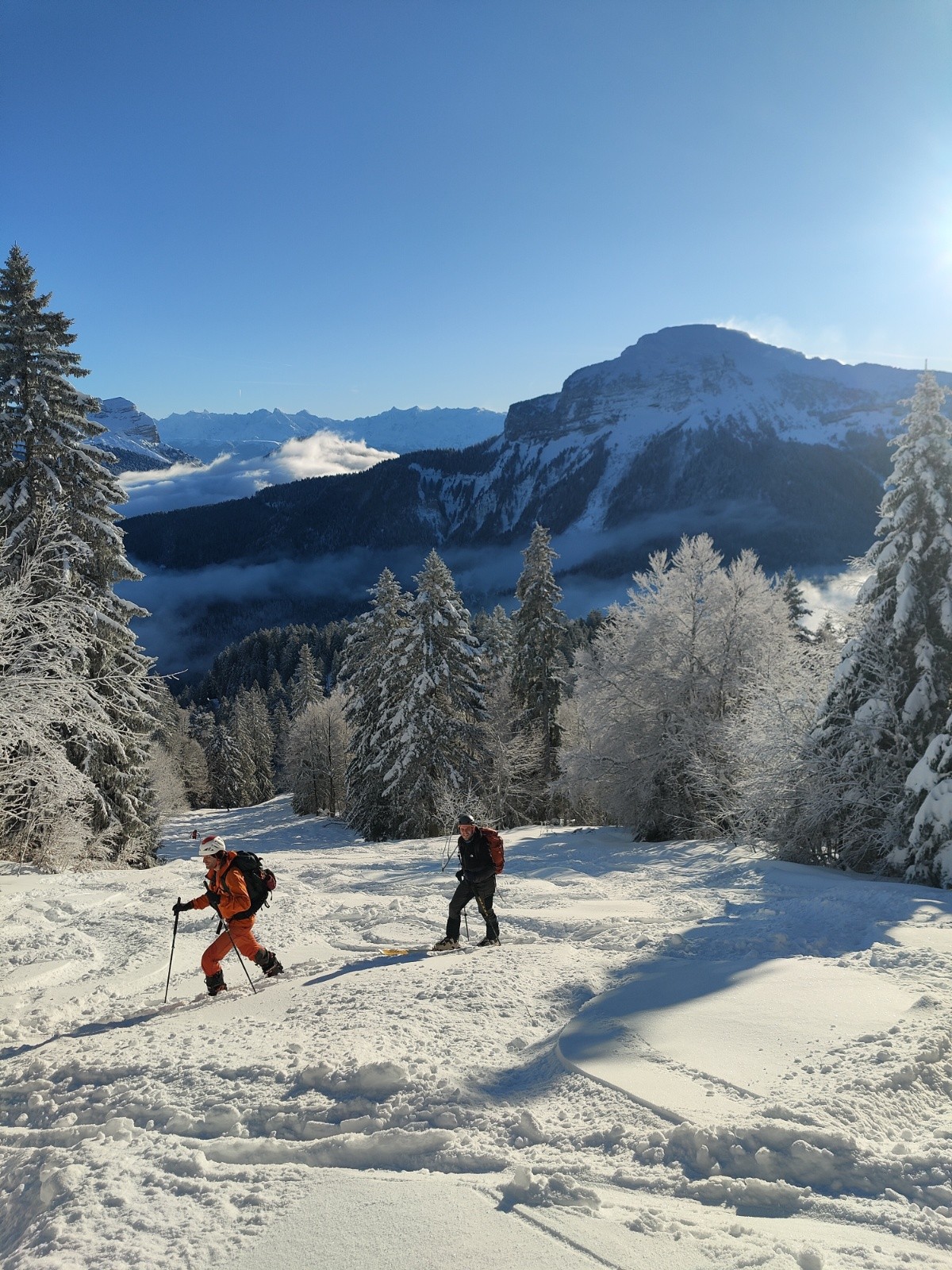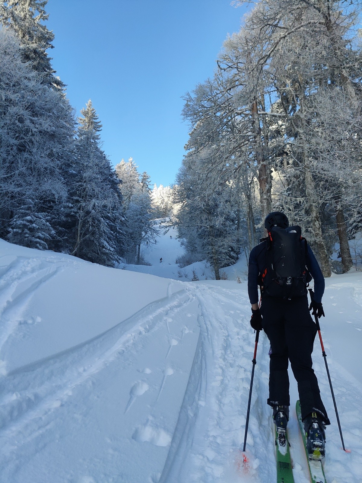 Départ a 8h30 du parking des cottaves. Neige abondante dès le parking ! La montée jusqu'en haut de l'ancienne piste est déjà bien tracée, ça monte vite ! Aucun passage dans la descente de la balme de l'air, et au moins 30cm de fraîche ultra légère sur fond dur. Top ! On descend jusqu'un peu haut dessus de la fontaine claire. Là, moins de neige et pas de sous couche, ça touche par endroits. On remonte par la piste jusqu'au dernier sommet au nord des crêtes du mont fromage avant de descendre vers 11h15 sur clos Colomb de nouveau dans une super neige et seulement 2 traces. Remontée vers le fournel pour trouver la descente allant vers la fontaine de l'oursiere et rester dans les orientations du matin où la neige est excellente et seulement 6 traces. C'est un frigo dans le coin, pas de soleil même a 13h. Toujours une belle quantité de neige et aucune touchette. Nickel. Petite remontée sur la bosse au sud de la bergerie et redescente sous l'oratoire. Sur le côté ouest, la neige est un peu dense. Dans la combe et à l'abri des arbres, la neige est de nouveau top ! Remontée sous le soleil vers le haut de canapé avant de redescendre par là jusqu'à la voiture. L'ancienne piste est damée par tous les passages. Sur le côté, on trouve encore quelques passages en poudre dans la forêt a 14h30. Sympa. Aucune touchette jusqu'à la voiture, ça passe bien