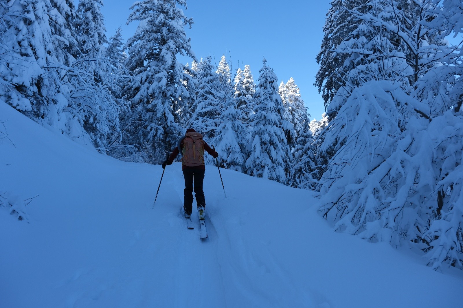 Sous 1610 m orientation nord:: poudre légère mais section forestière.