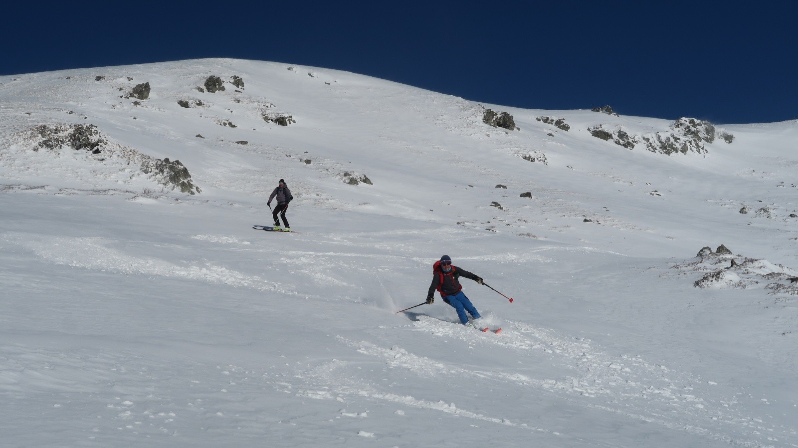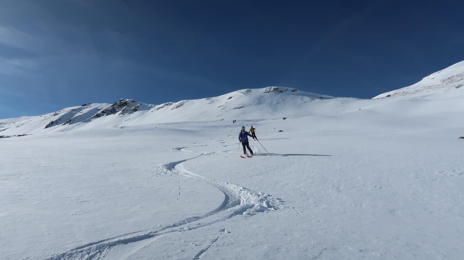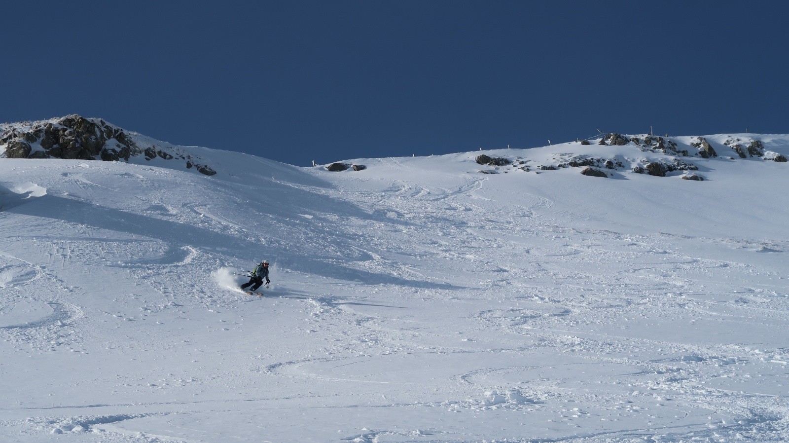 Conditions nivo et activité avalancheuse : Neige plaquée, poudreuse tassée, très bon grip en montée. Rien vu bouger sous nos nombreux skis.