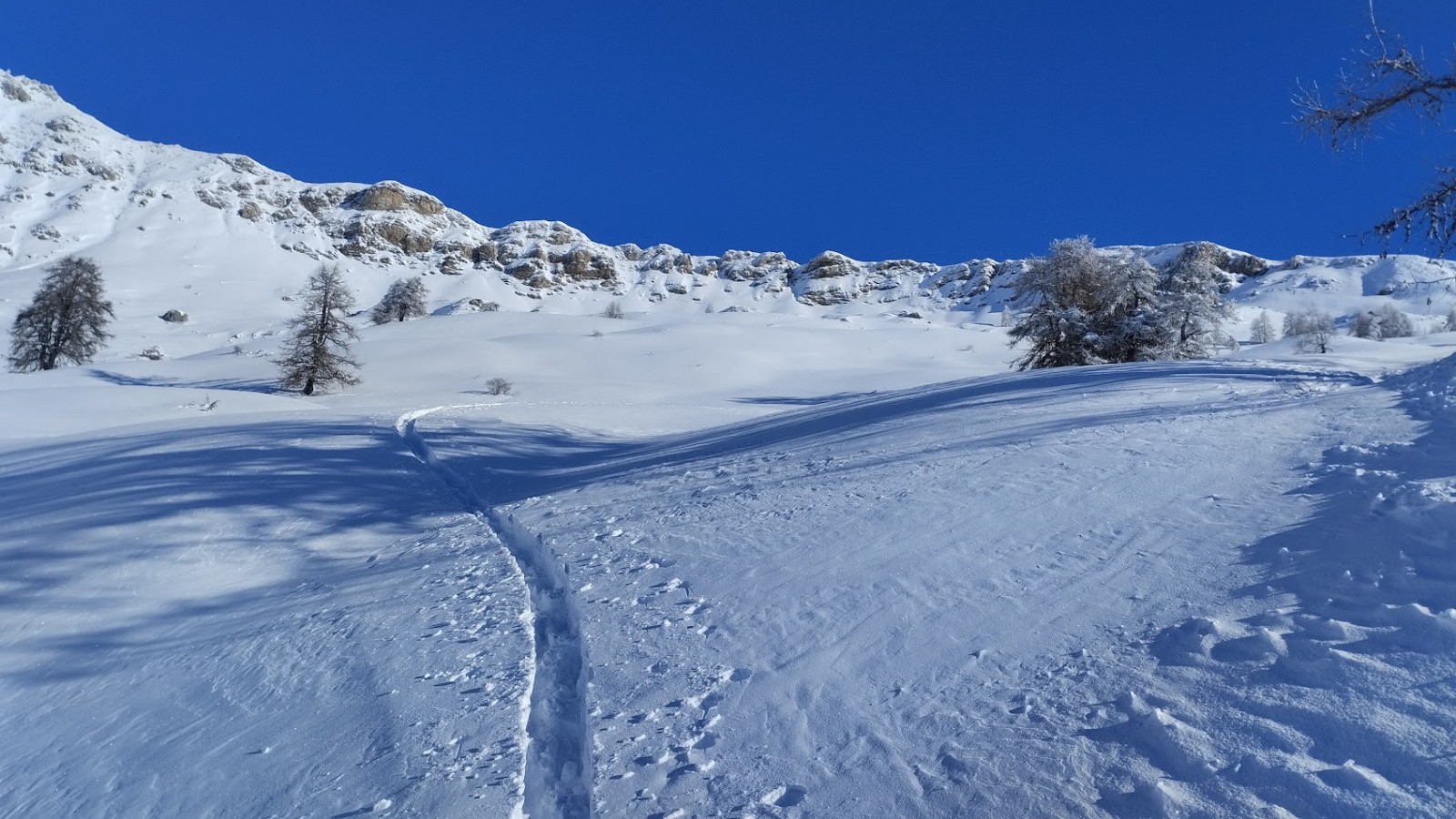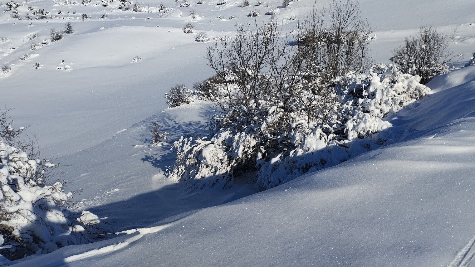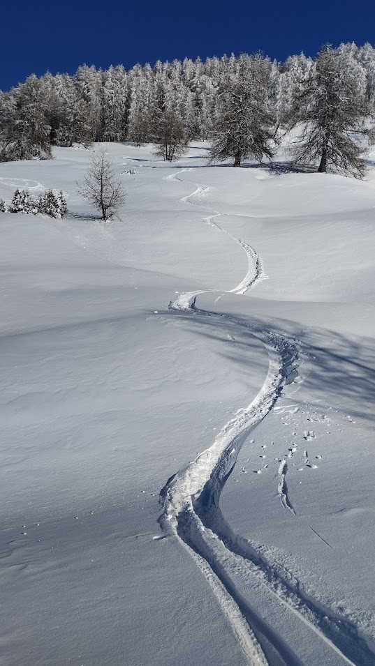 Conditions pour le ski : bonnes ! Peu d'effet du vent, uniquement 50 à 100m sous et autour du col de la Gardette