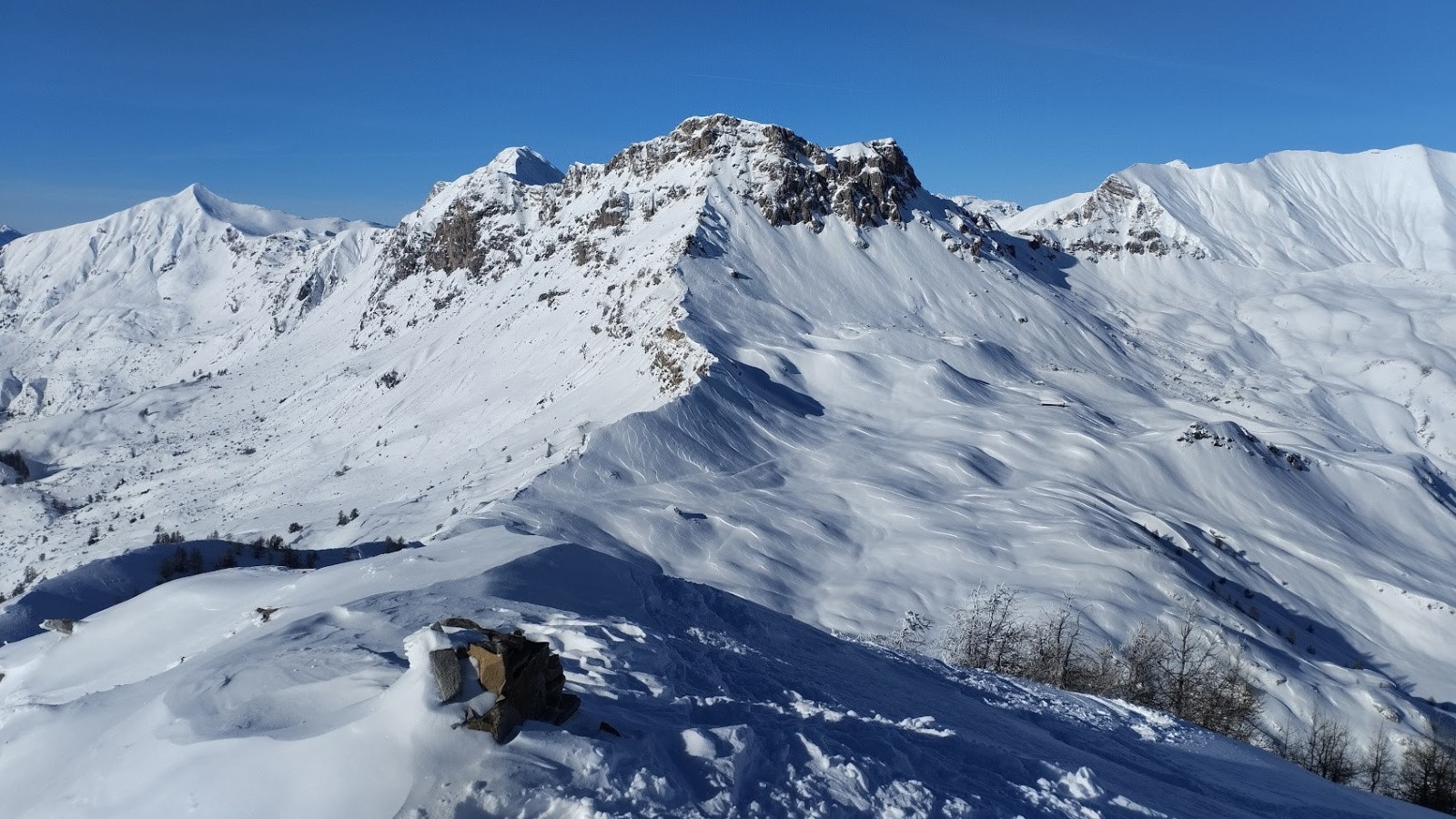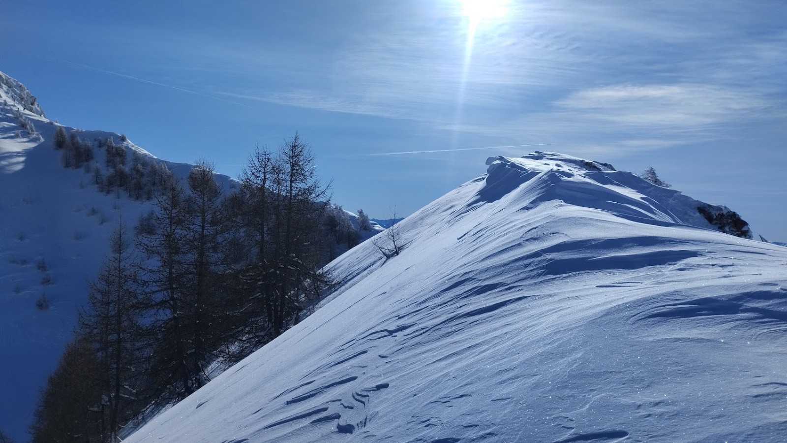 Conditions nivo et activité avalancheuse : aucune observation de coulée, cependant on voit le travail du vent, et par endroit on sent que la couche supérieure est compactée et repose sur du bien mou