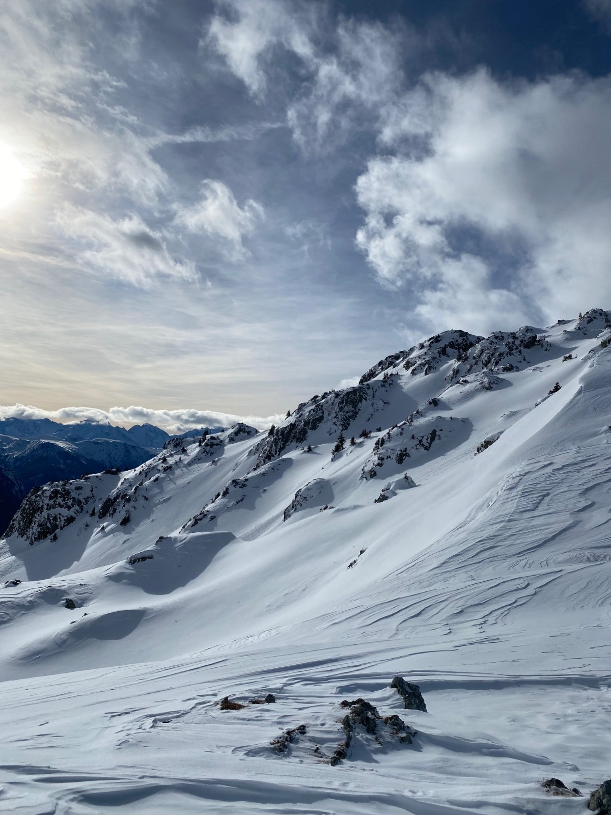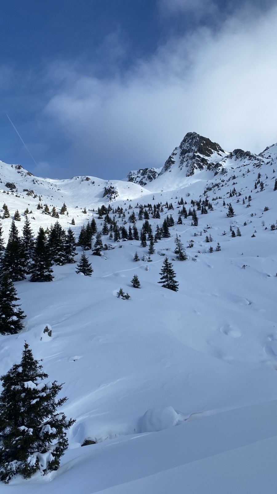 Bon choix: la neige à l’ombre est encore poudreuse, plus lourde que ce weekend bien entendu mais bonne.