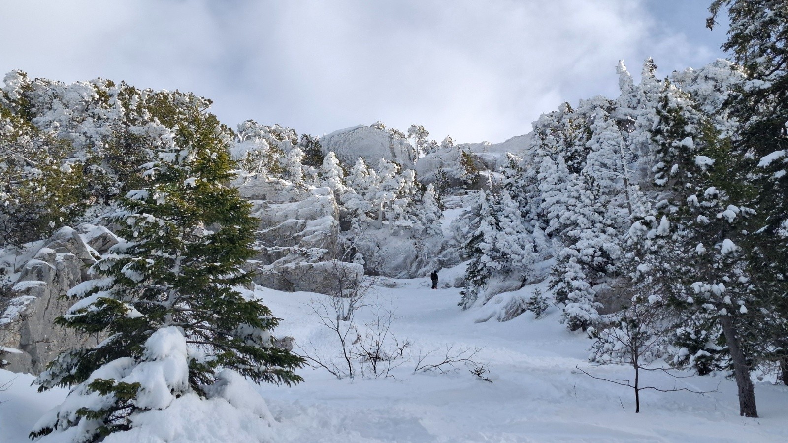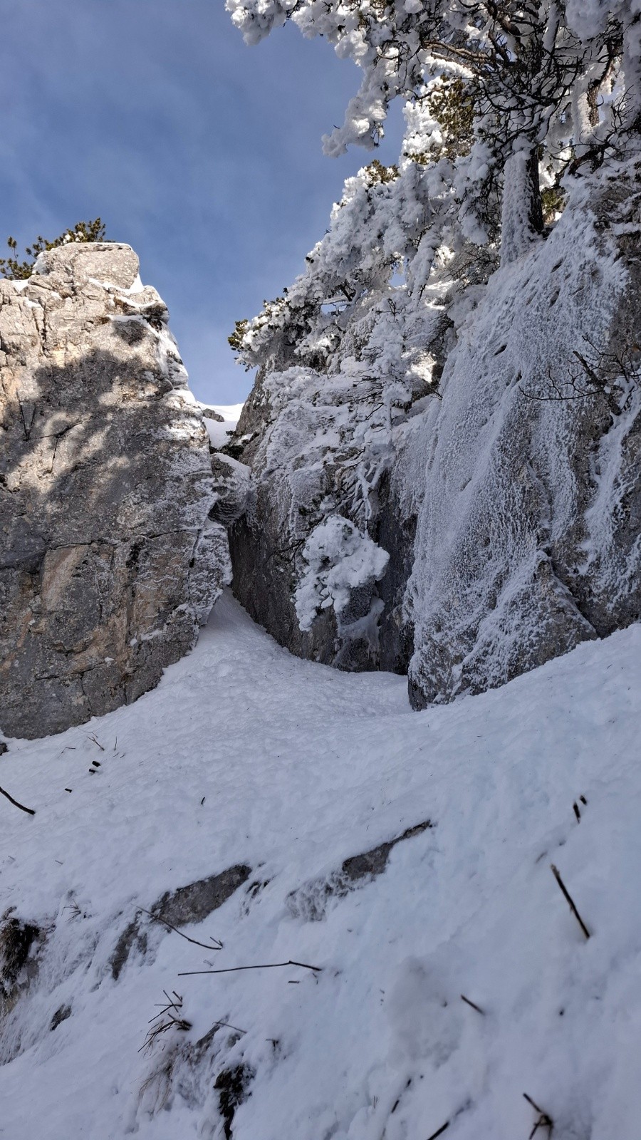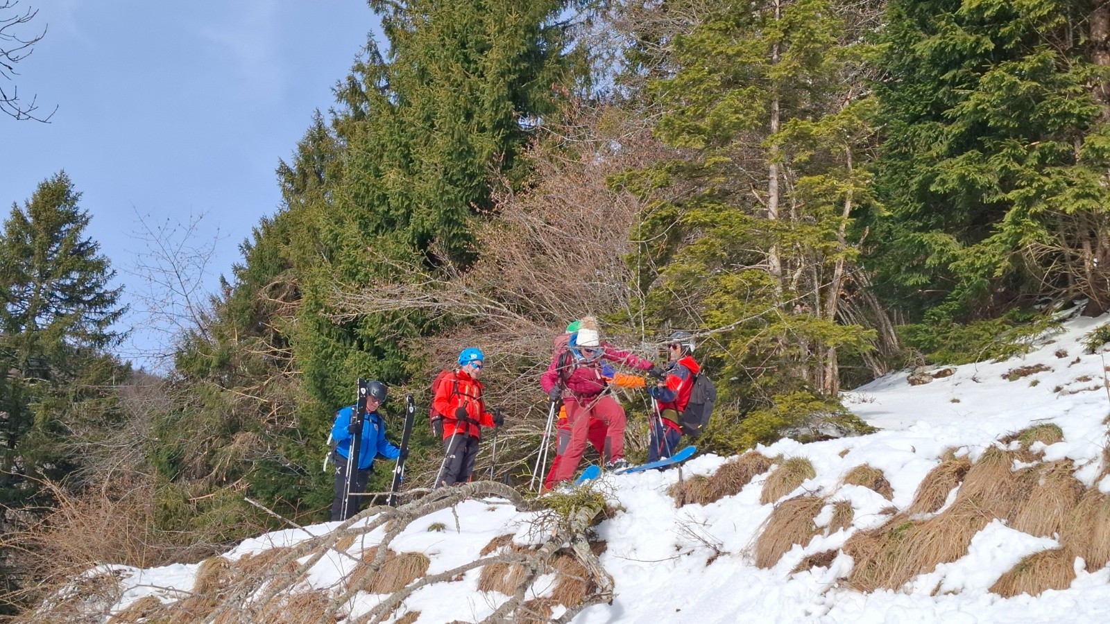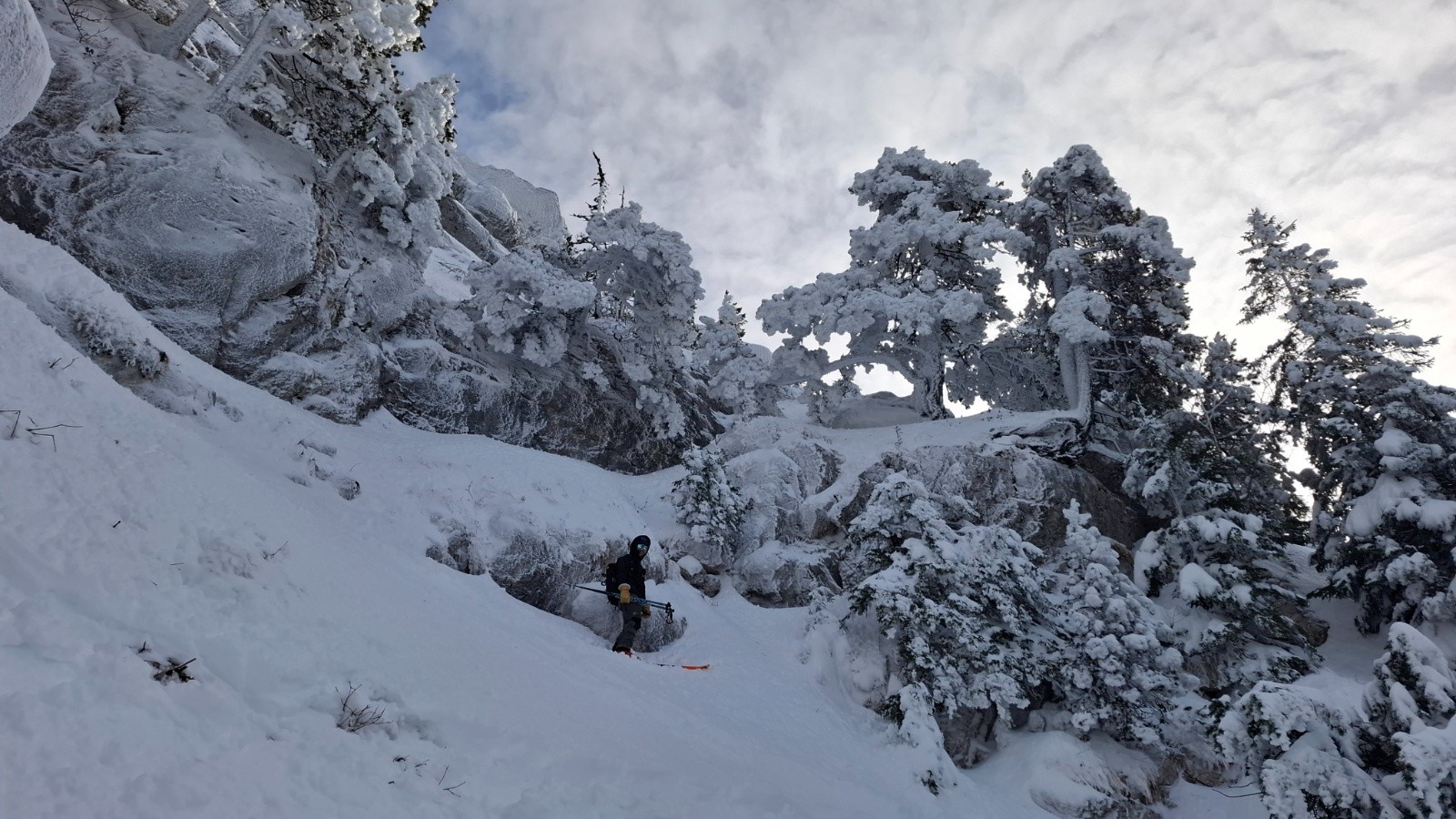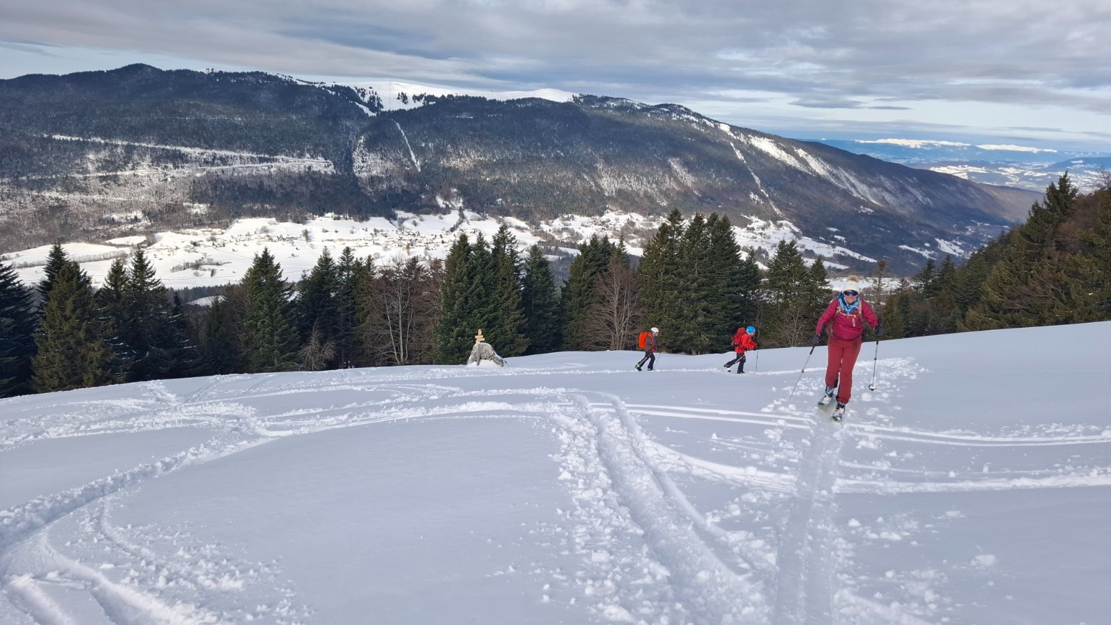 Conditions pour le ski : encore très correct malgré le redoux en cours de matinée, première descente bonne poudre, s’alourdissant sous 1400, deuxième descente poudre trafolée sous le sommet, devenant lourde sous 1600 en toutes orientations, ça colle un peu où il n'y a pas d'anciennes traces, contre-pentes SE passe bien grandes courbes, chemin nickel, dernier champ pas dégueu, qq requins par-ci par-là.