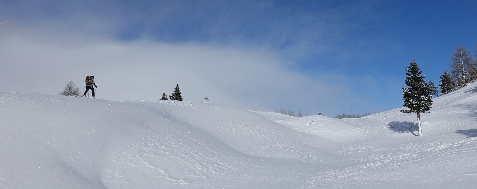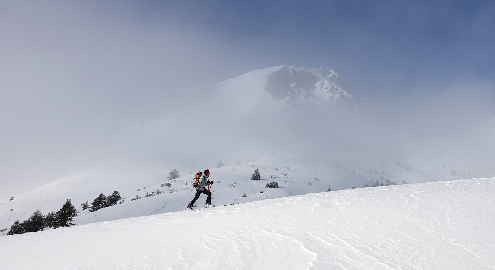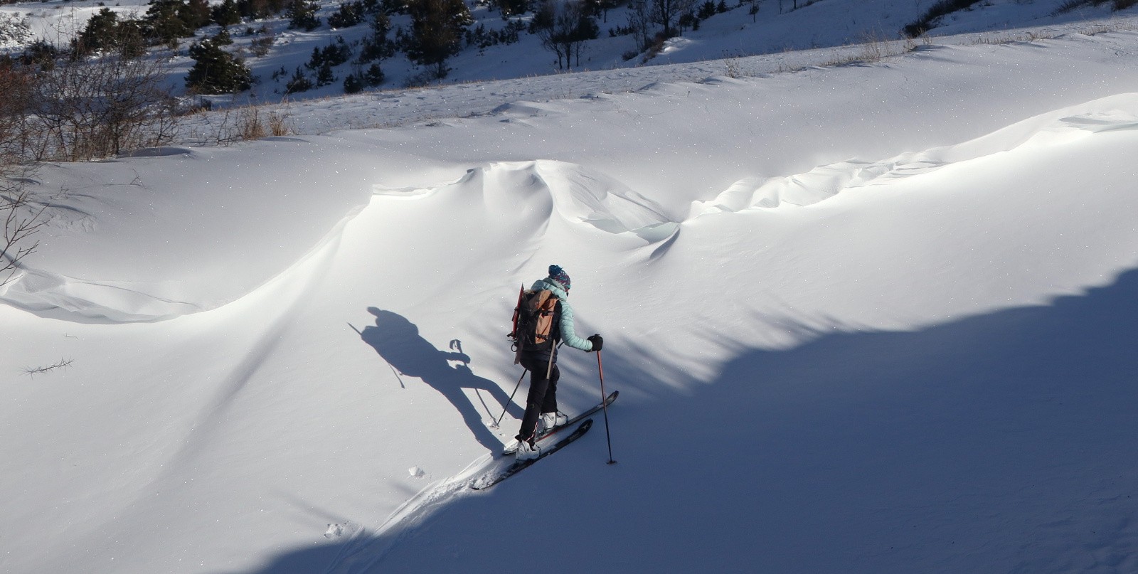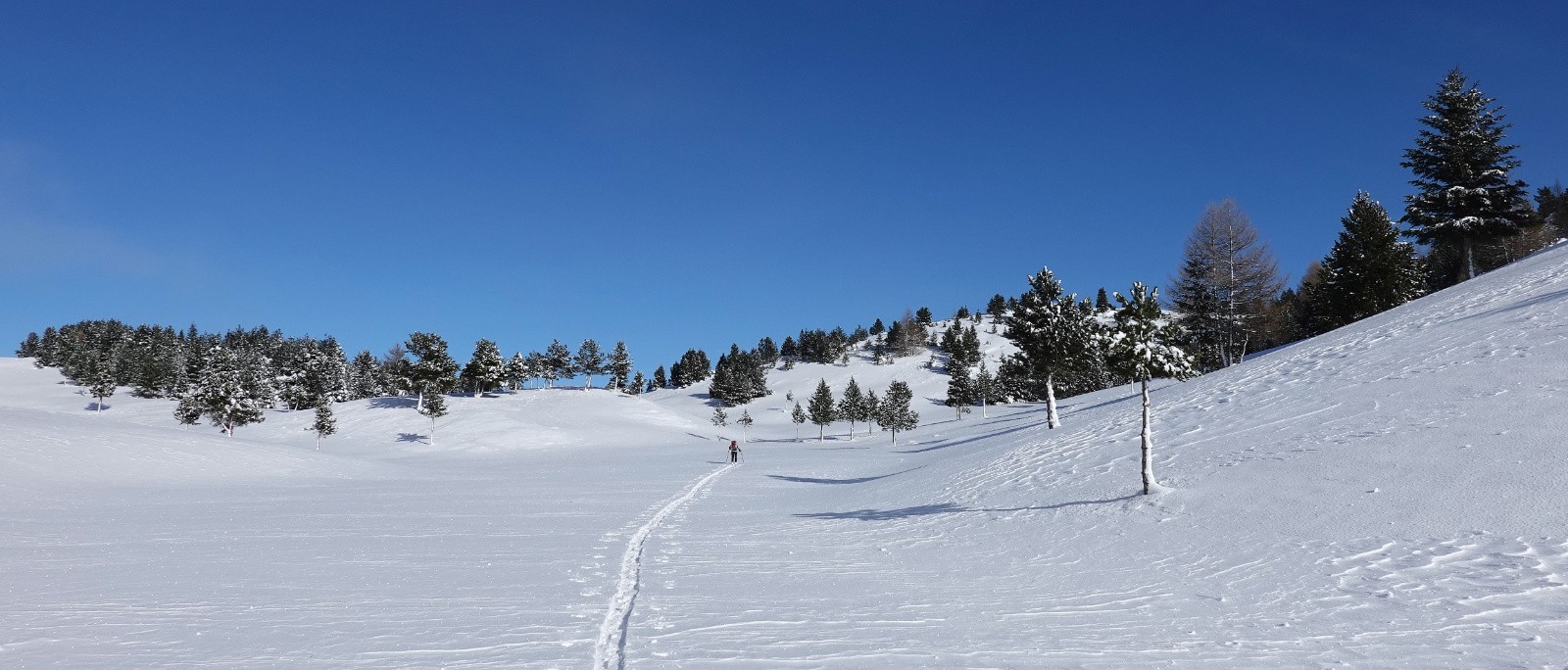 Beaucoup de pentes en toutes orientations totalement décapées par le vent.
