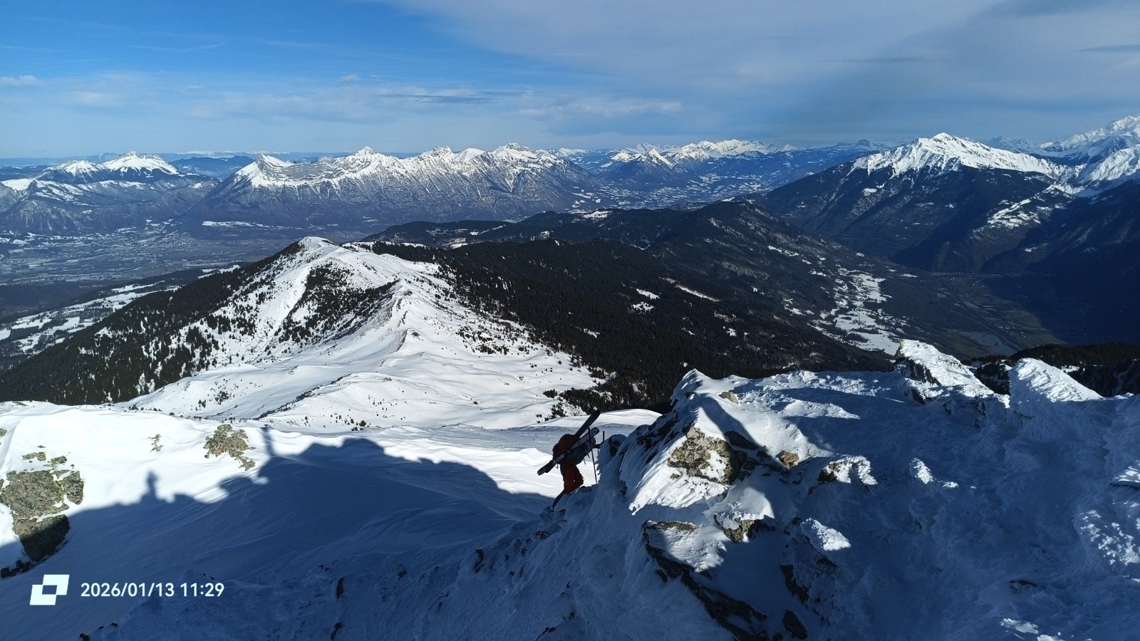 - La crête est pelée sur une dizaine de mètres avec un peu de glace qui ressort !
