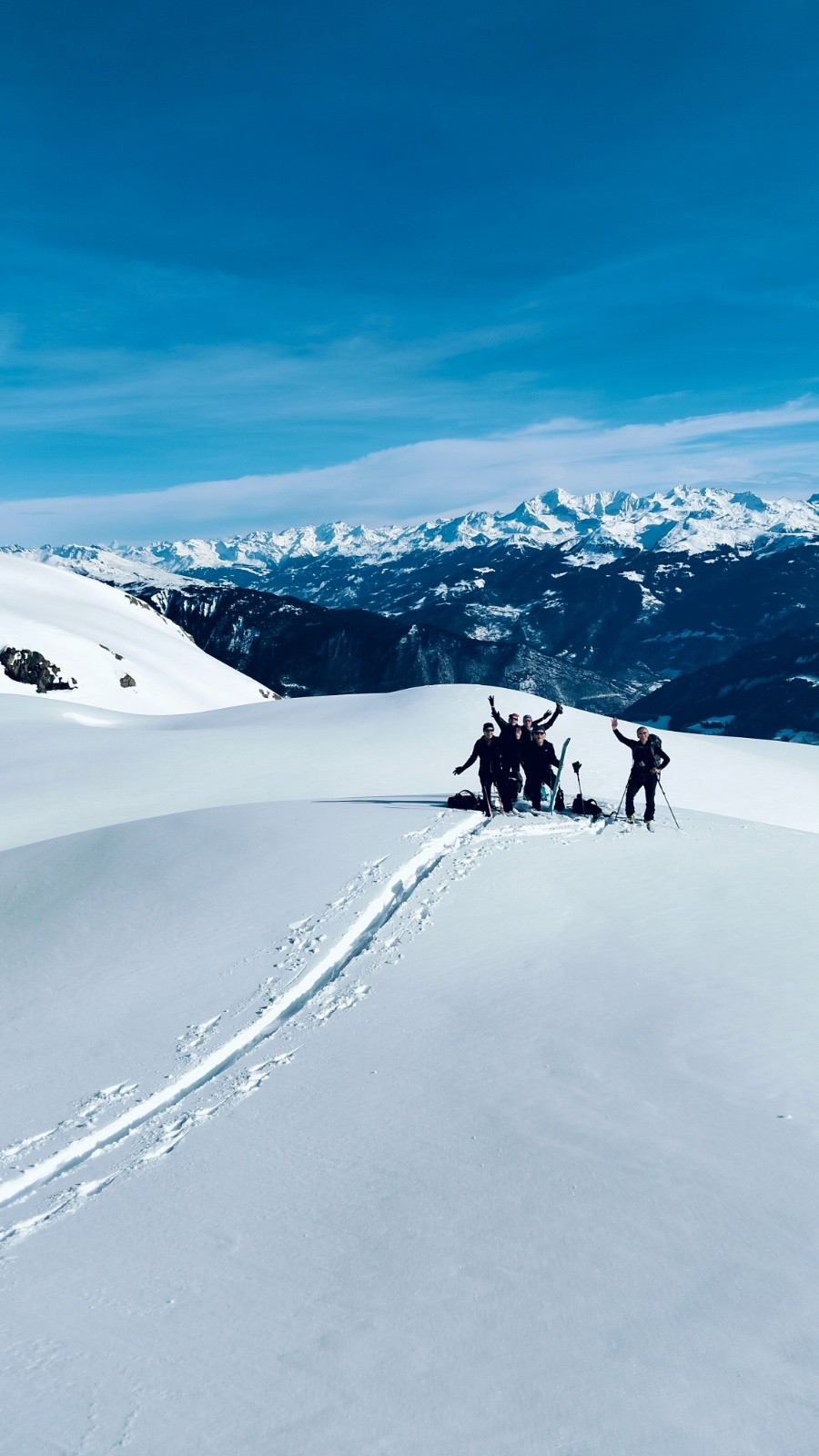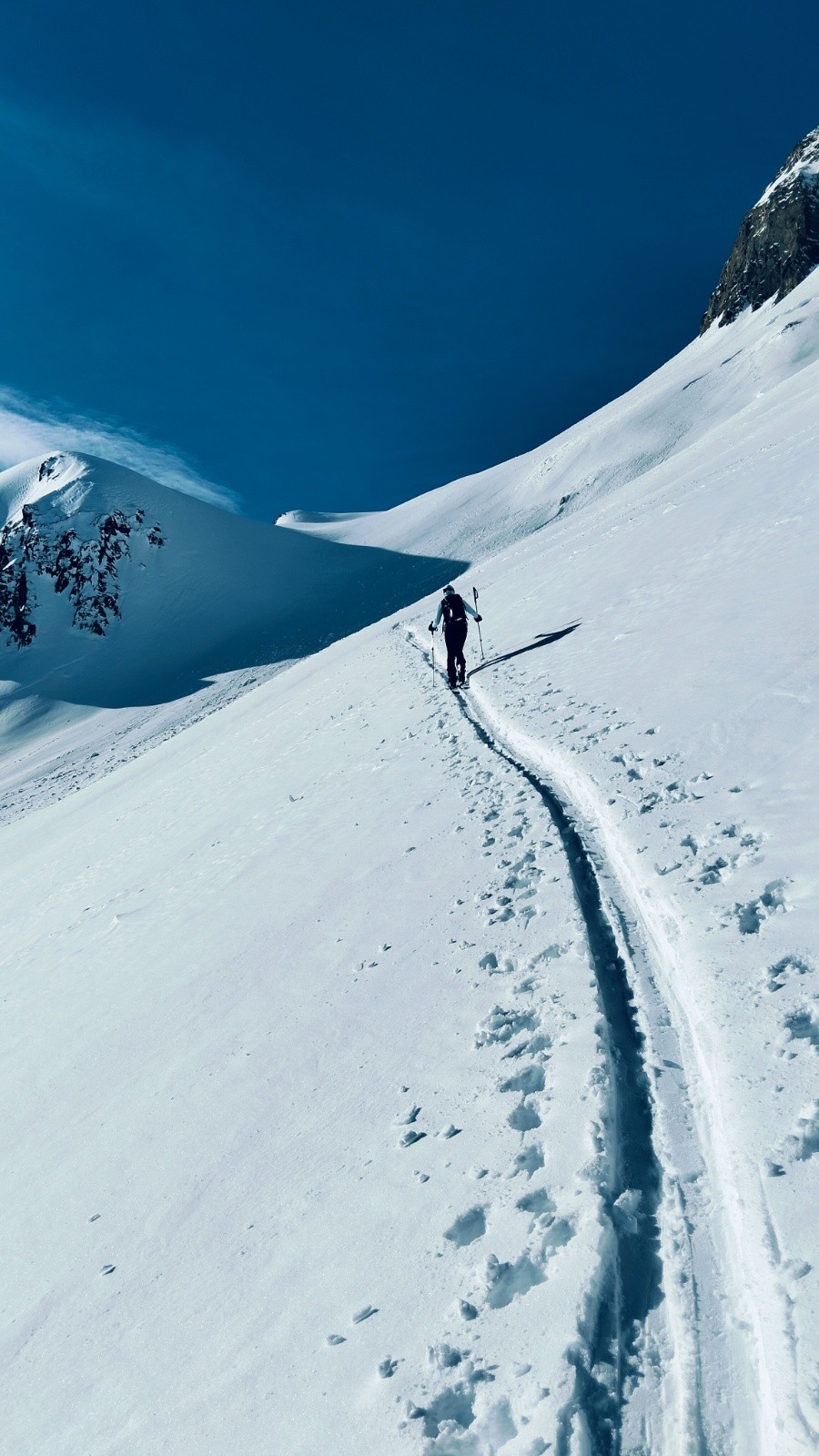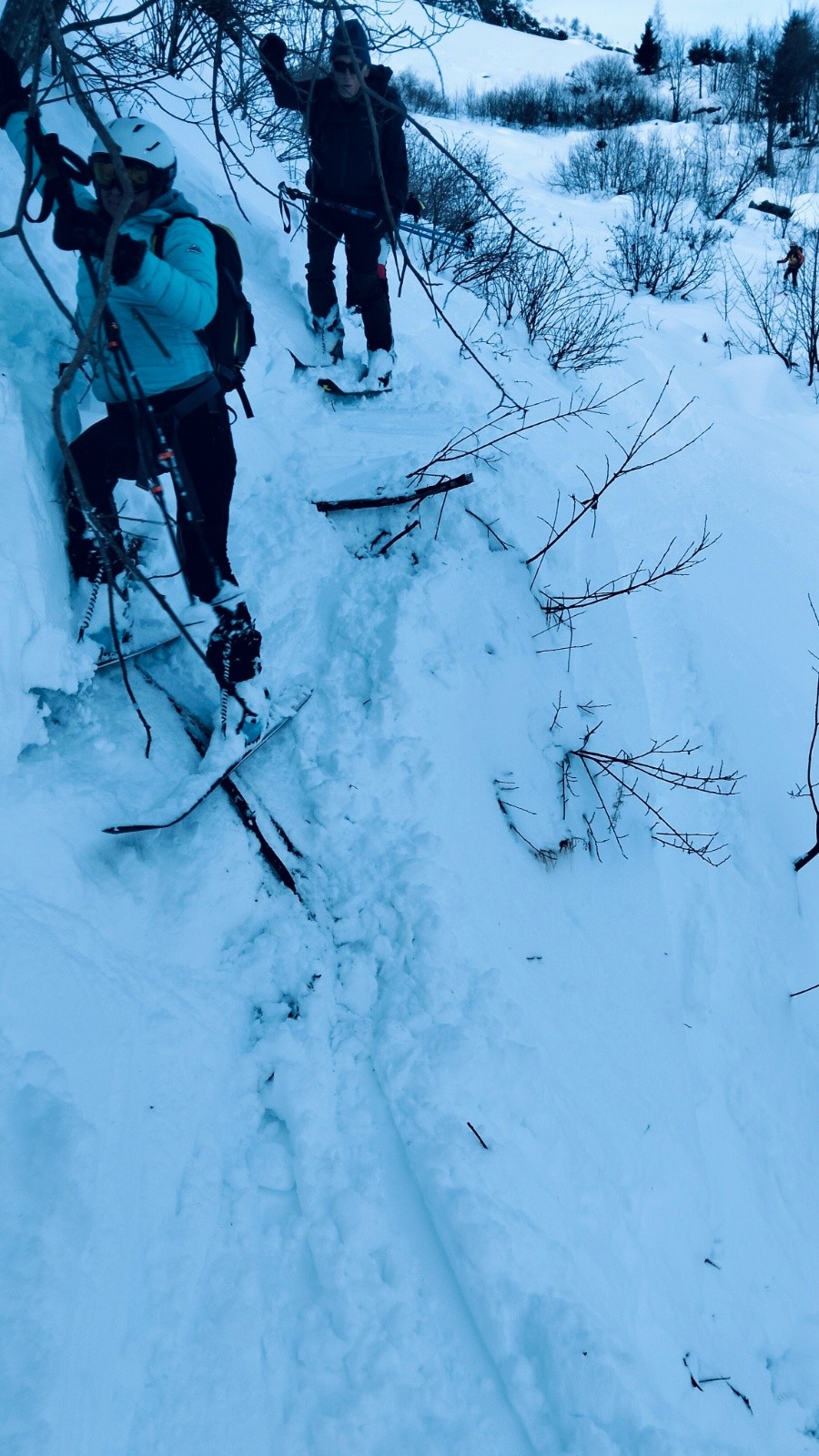 Conditions nivo et activité avalancheuse : à signaler une purge importante derrière nous qui a recouvert la trace de montée.