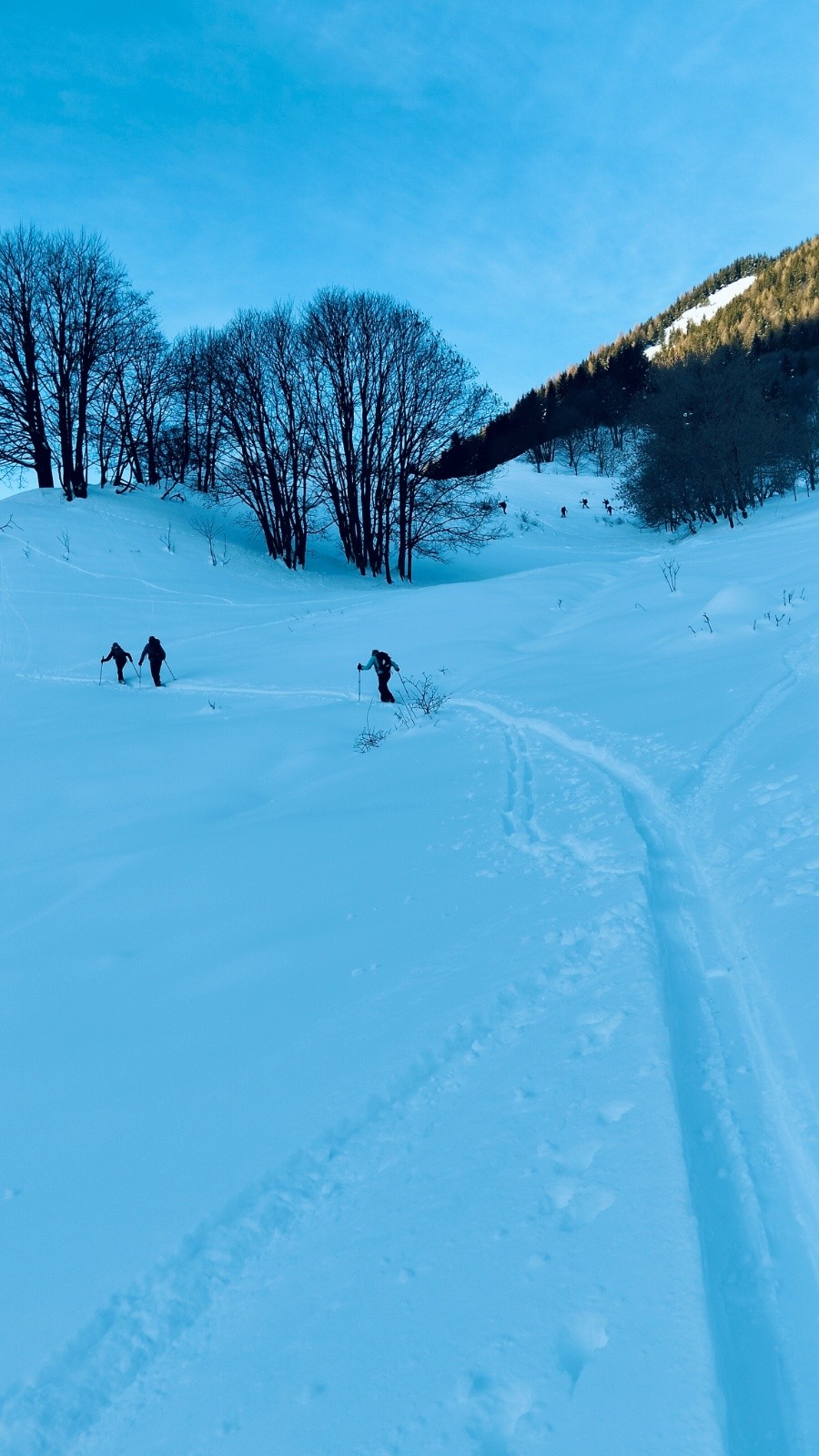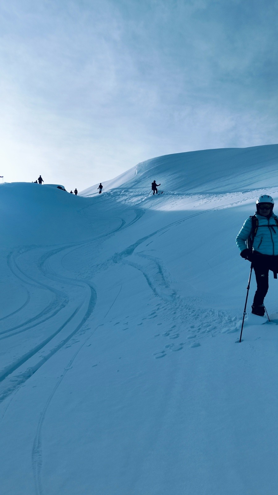 Combe des plans tracée , sans doute de la veille, très peu de traces de descentes.