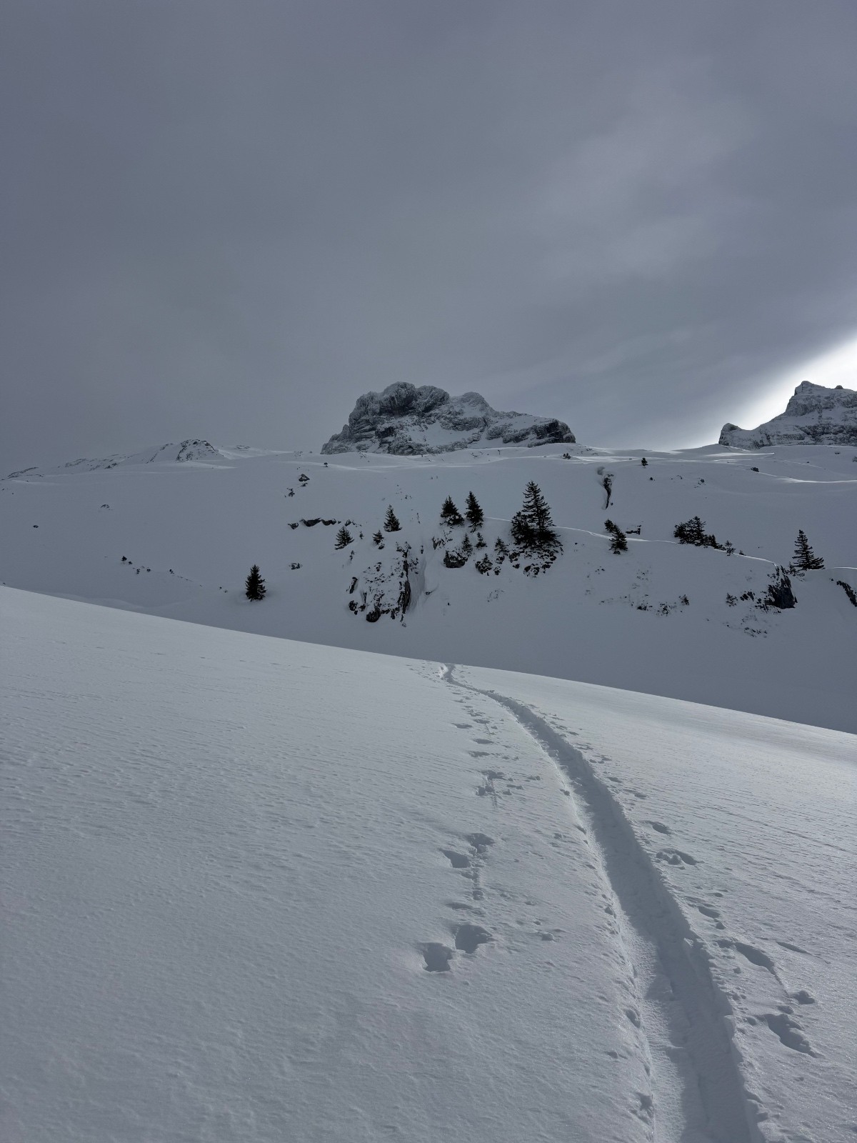 Avec ce vent qui souffle, même si on a pas froid, on traîne pas si longtemps et c’est bien assez tard pour la pente qui chauffe à vue d’œil.