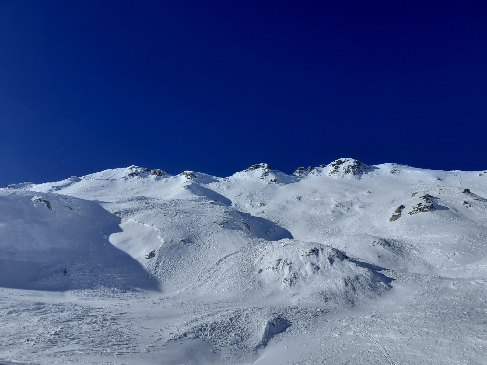 Conditions nivo et activité avalancheuse : Toute la face entre la Belle Etoile et les Ilettes coté lacs des 7-Laux est descendue avec une cassure parfois supérieure à 1m. Comme mentionné hier, le cirque sud de la Belle Etoile - Ilette et col de la Vache sud sont également descendus. Les transports de neige avec le vent semblent limités sous 2200m avec l'humidification de la neige. L'attaque de Belle Etoile Nord semble bien chargé.