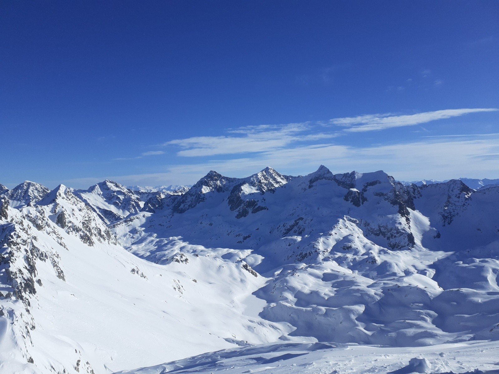 Conditions pour le ski : Bonnes dans l'ensemble. Ski moyen pour la descente vers les Lacs des 7-Laux depuis la Belle Etoile où c'est un gros dépôt de neige travaillé par le vent. La descente de la Belle Etoile sud est plutôt bonne, il faut viser les zones les plus froides sur la seconde partie sinon c'est crouté. En basculant coté Rivier, neige de printemps agréable avec un fond suffisamment dur. Retour par le Pas de la Coche en poudre traffolée et border béton mais avec un bon grip. Border qui déneige vite avec quelques cailloux, mais retour encore ok à ski jusqu'au parking. Crampons utiles selon l'aisance pour atteindre le sommet de la Belle Etoile