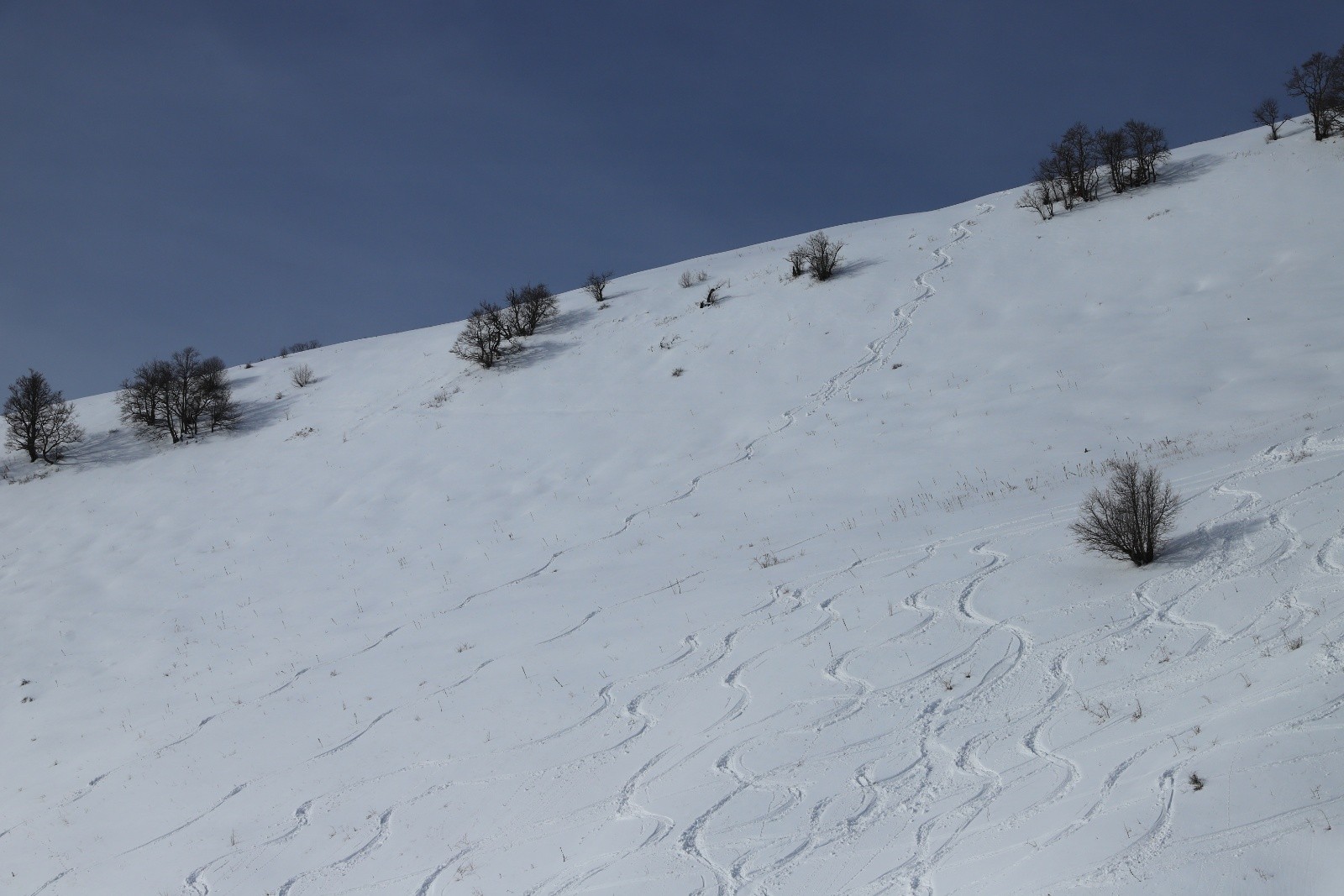 Conditions pour le ski : globalement poudre lourde, avec une hauteur de 50 à 60 cm vers 1500 m