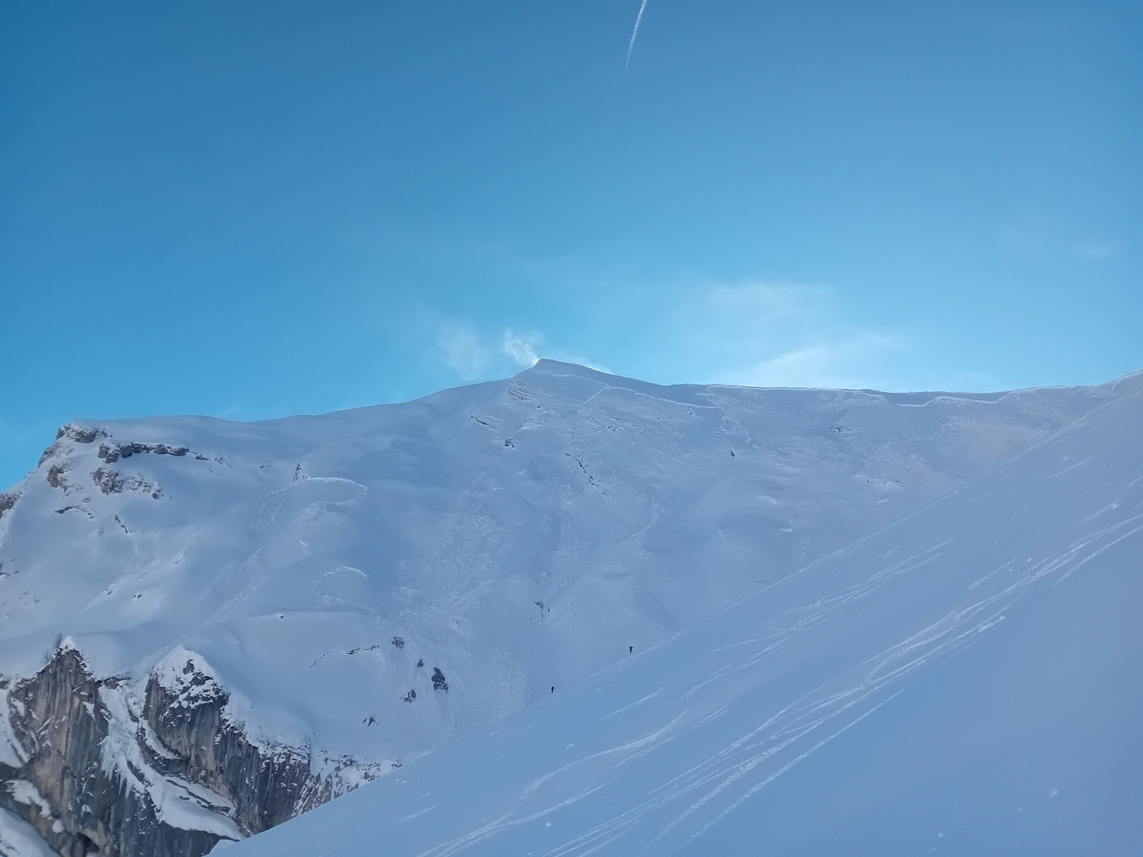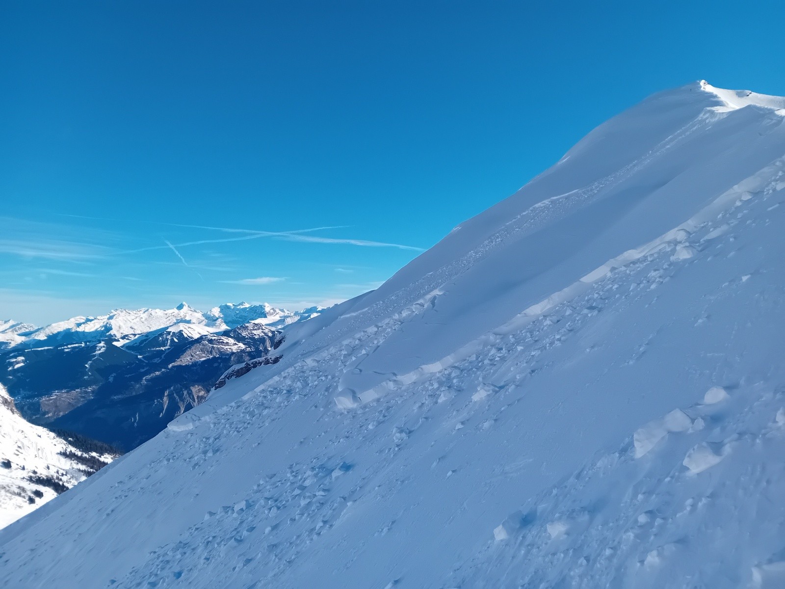 Arête en neige soufflée, croûtée