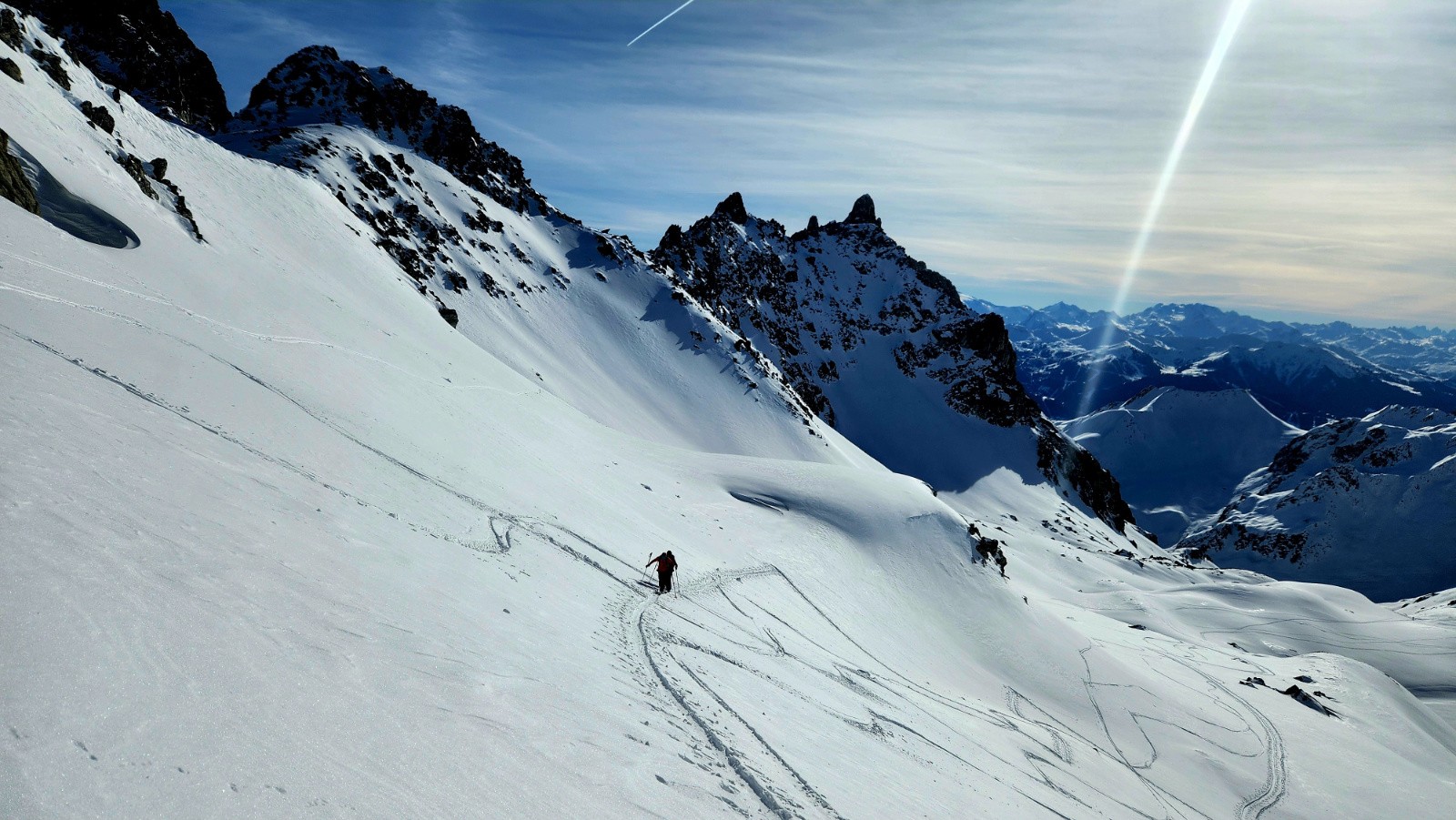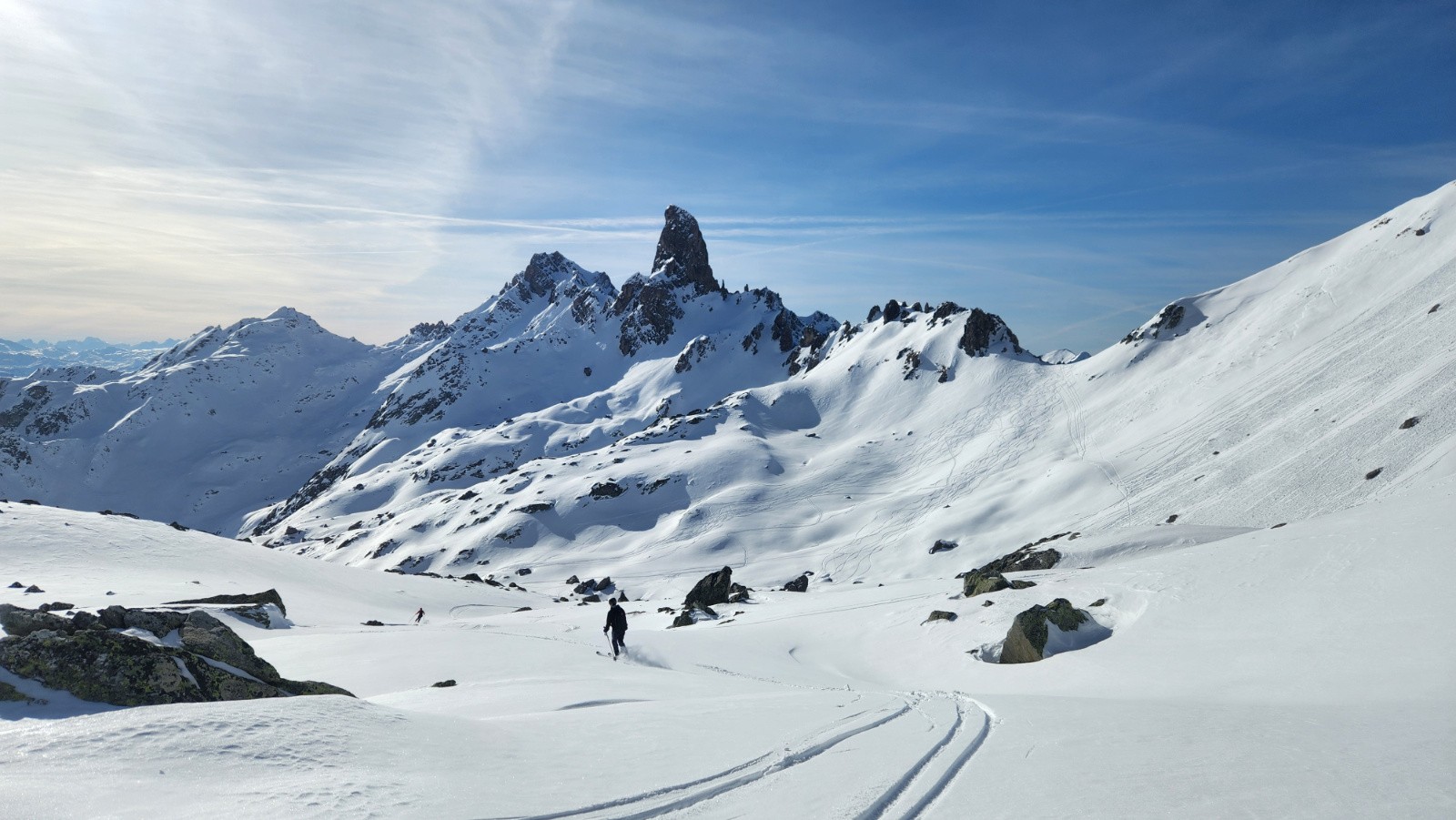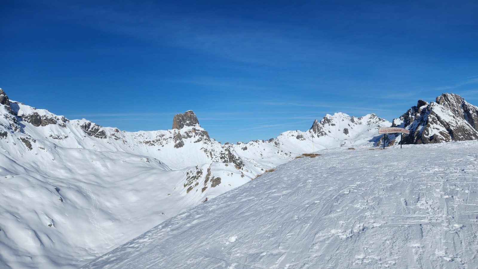 Conditions pour le ski : Neige poudreuse légère à l'ombre, en altitude neige poudreuse au soleil, plus bas, la croute de regel s'était décomposée, du coup du bon ski