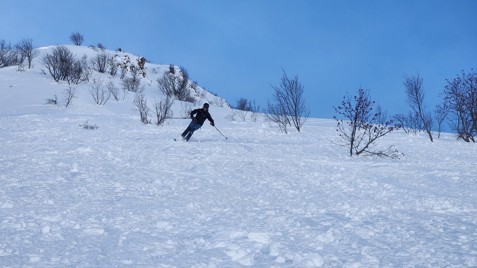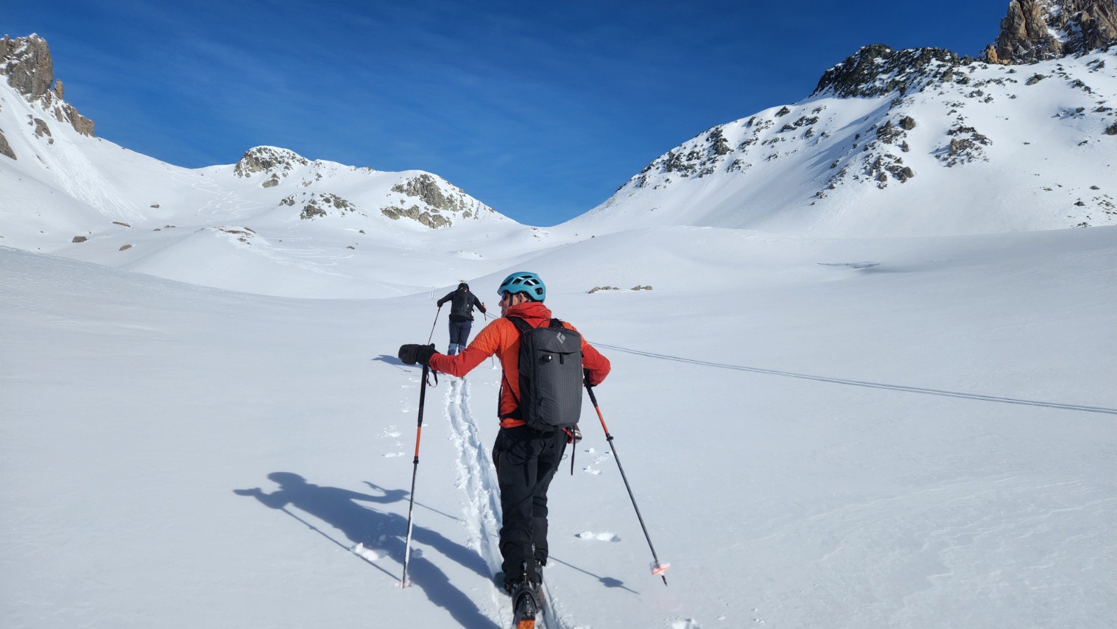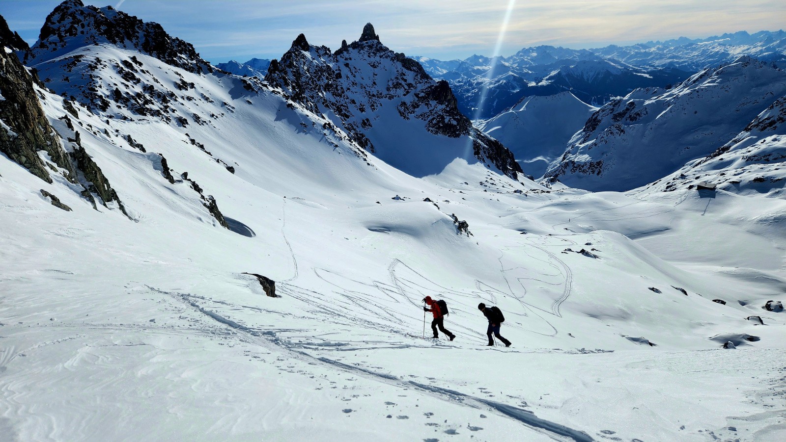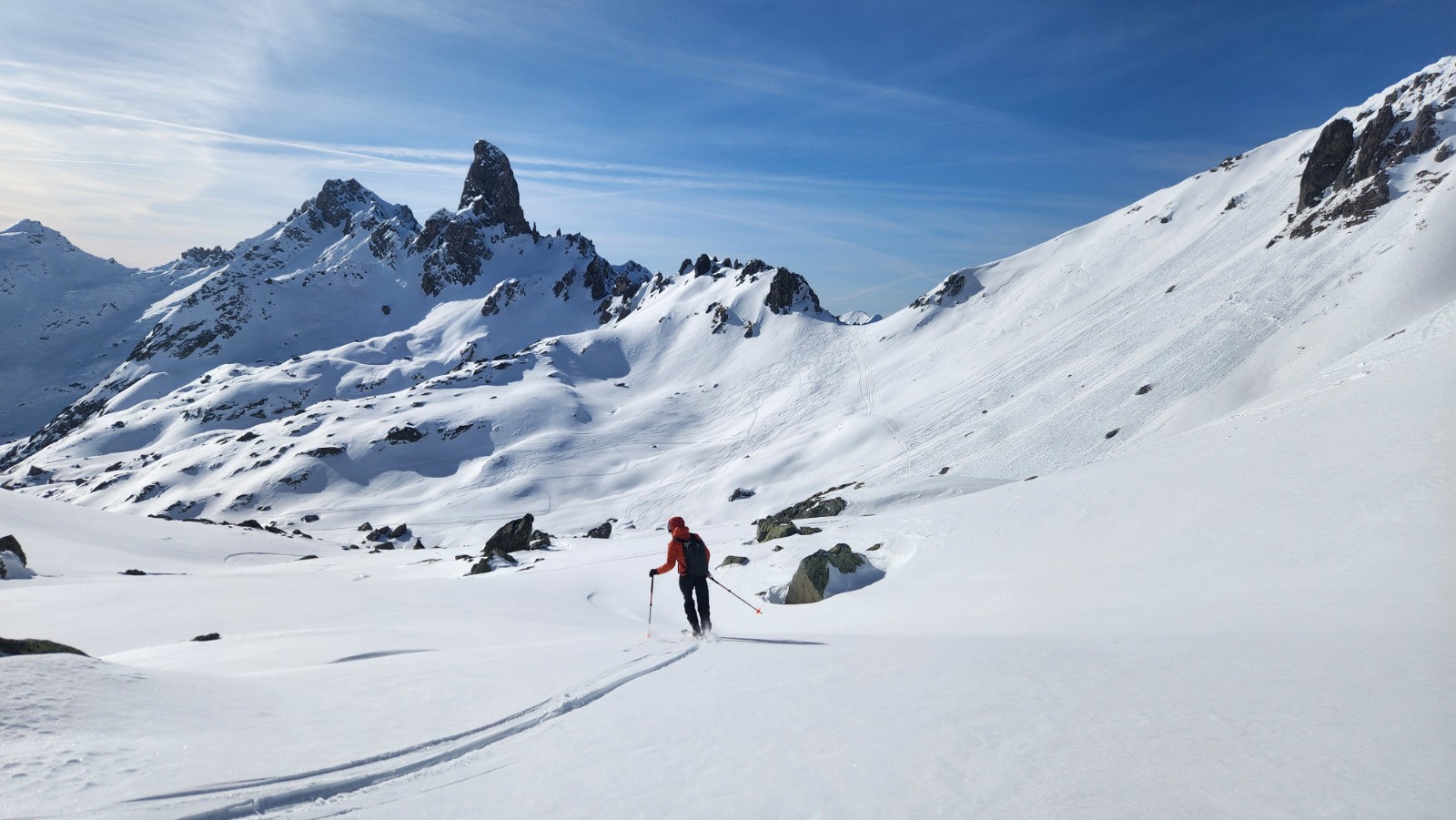 Conditions pour le ski : Neige poudreuse légère à l'ombre, en altitude neige poudreuse au soleil, plus bas, la croute de regel s'était décomposée, du coup du bon ski