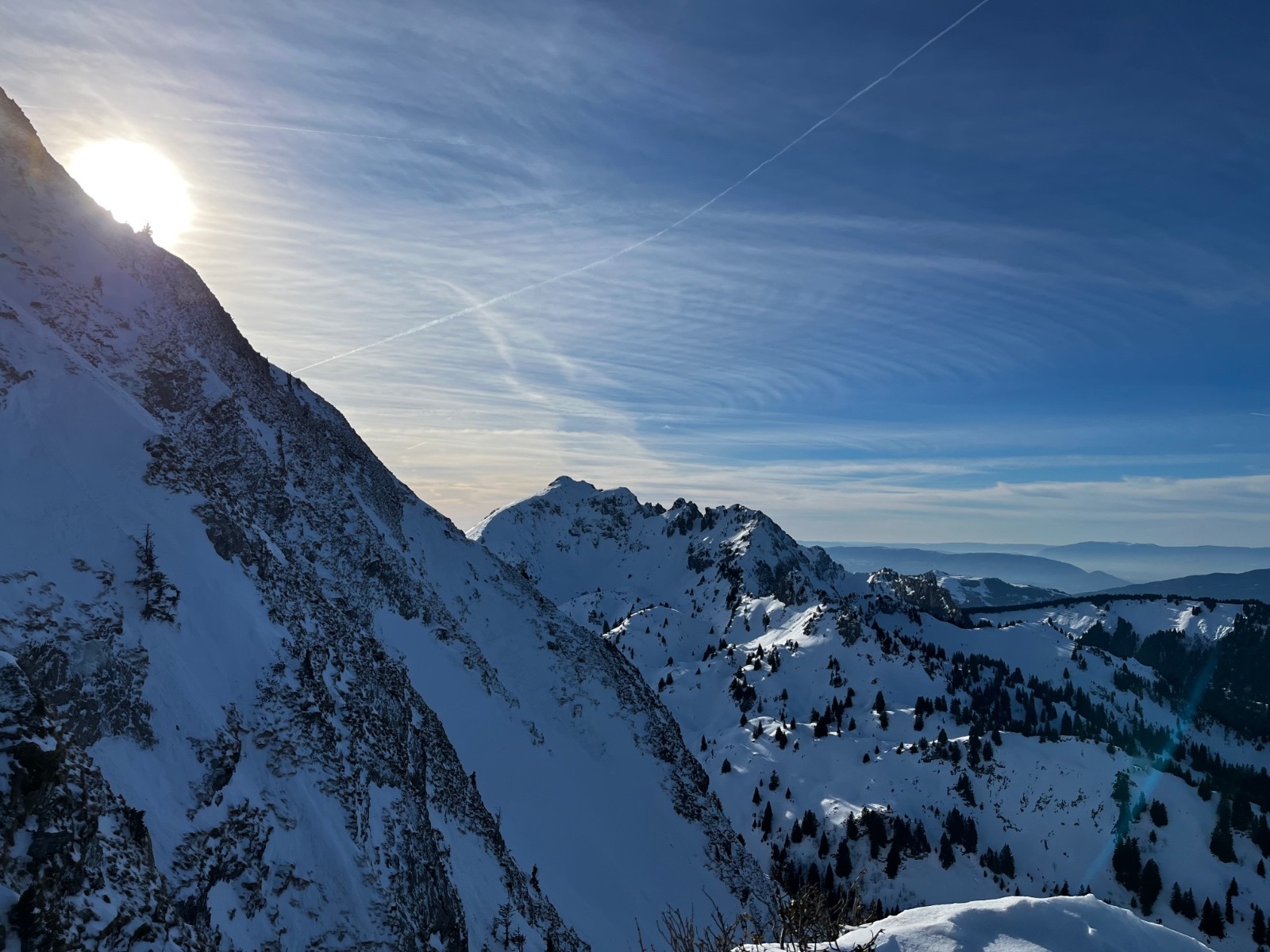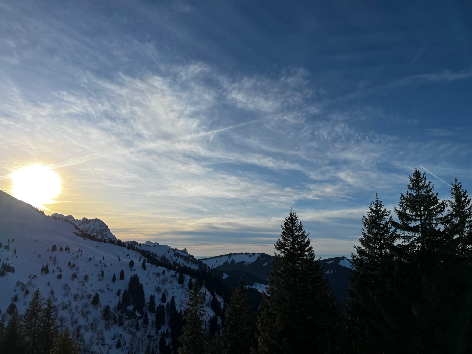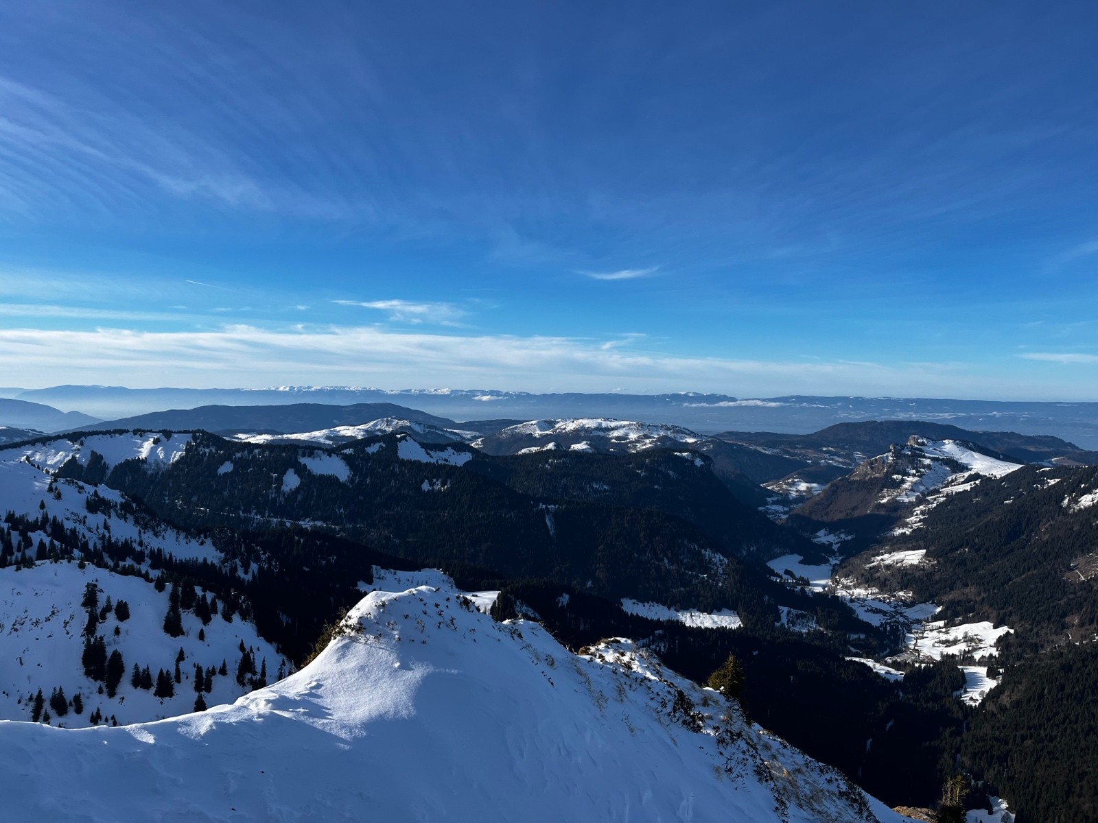 Conditions pour le ski : le chemin forestier du départ présente quelques passages avec un très faible enneigement, mais pas de soucis pour monter.