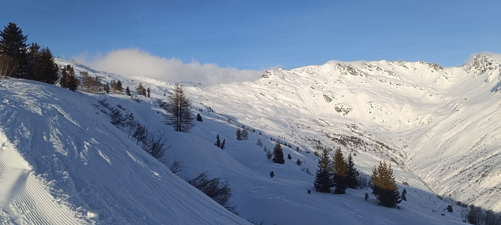 Conditions pour le ski : La quantité de neige s'est nettement améliorée..'. mais la qualité n'est pas au rdv... Je suis descendu par la piste