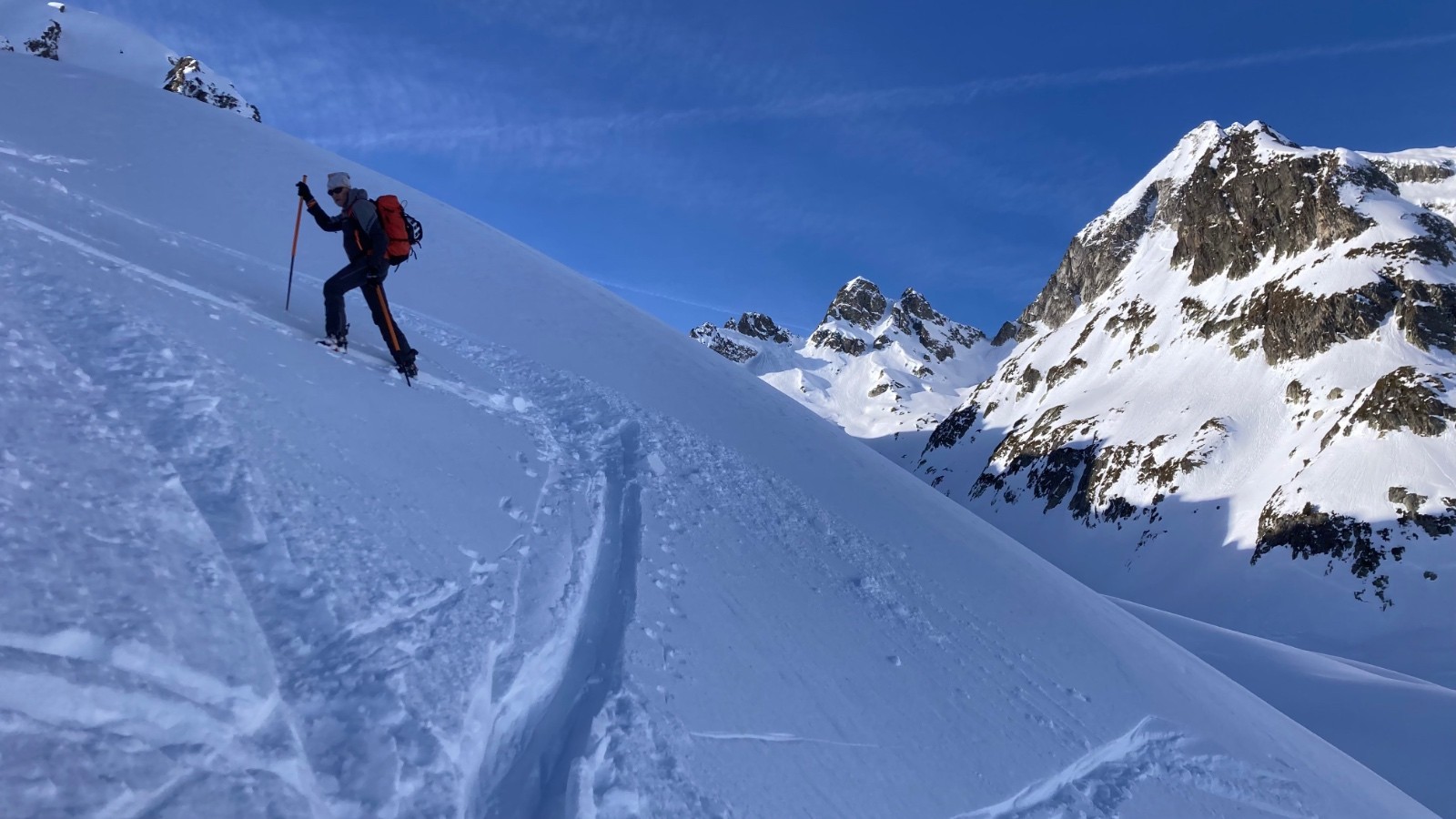 Tout le reste jusqu'au col est en neige froide souvent poudreuse plus ou moins dense (ski facile)