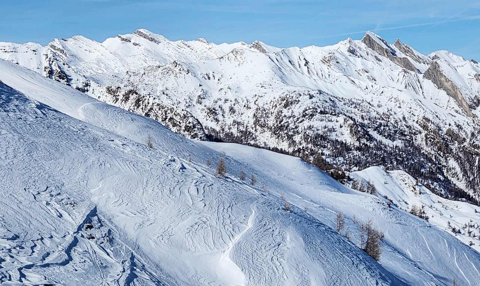Bonne poudre en cours de densification sur la haut jusqu'à la cabane de Valminette > 1900m